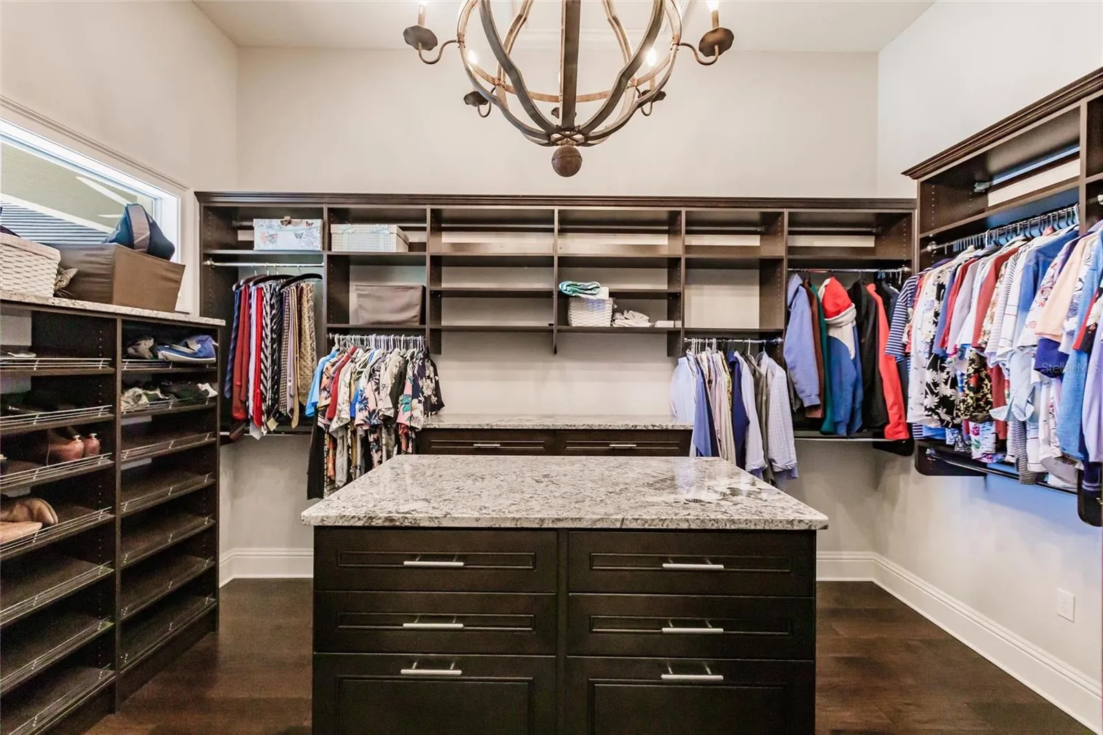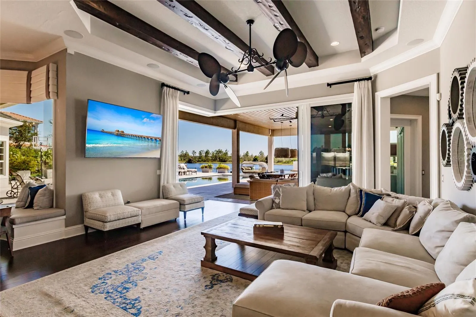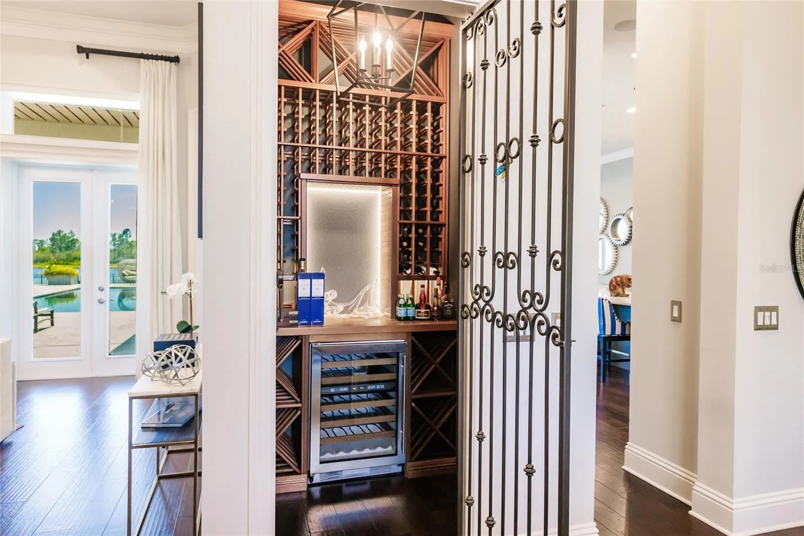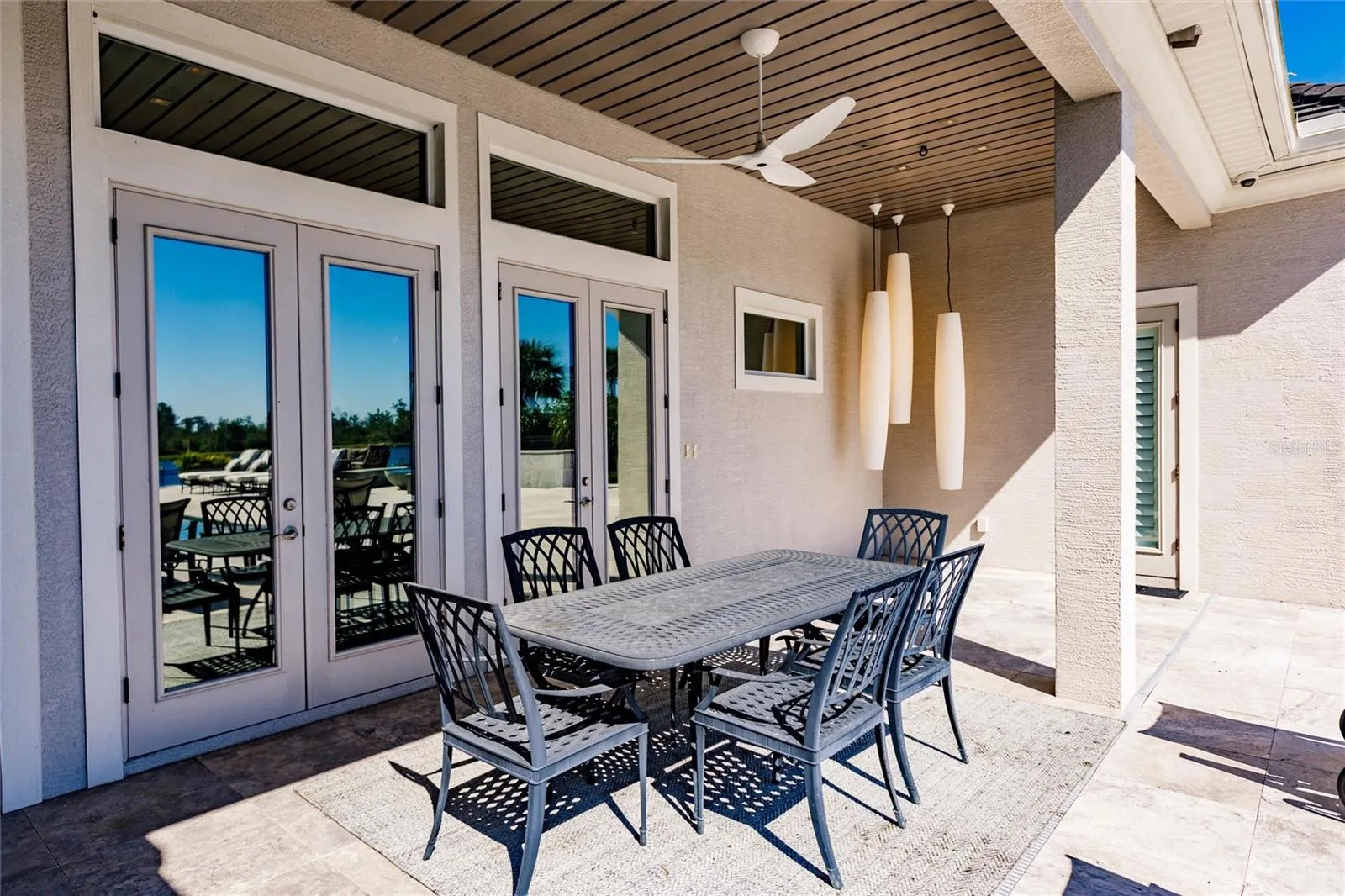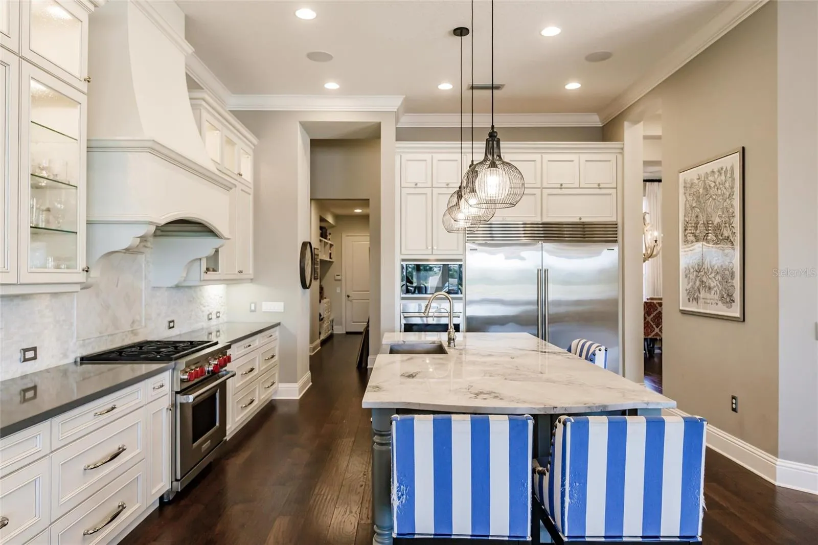 An exceptional estate with unmatched outdoor living. Experience luxury living in this custom-built Lakewood Ranch estate, gracefully situated on 1.19 acres of lush grounds in the exclusive gated community of The Concession. With over 5,000 square feet of thoughtfully designed living space, this home blends elegance, functionality, and serene natural beauty. OUTDOOR LIVING: Step outside and immerse yourself in the ultimate Florida lifestyle. The expansive lanai boasts a heated pool with an infinity spa, a tranquil water feature, and a travertine paver deck, creating an idyllic retreat. Entertain effortlessly in the fully equipped outdoor kitchen or unwind by the fire pit while taking in sweeping views of the serene lake and private preserve. This outdoor haven is perfect for relaxation and entertaining year-round. STORAGE AND PRIVACY: the home showcases a split floor plan with every bedroom featuring walk-in closets with custom built-ins and their own ensuite bathroom. The master suite is a private sanctuary featuring wood floors, a tray ceiling, and a warm sitting area. Dual dressing rooms offer ample storage, while the spa-inspired bathroom dazzles with marble countertops, an oversized walk-in shower, a freestanding tub, and tankless hot water. ELEGANT ENTERTAINING: The gourmet kitchen is a chef’s dream, adorned with stone countertops, a marble backsplash, top-tier appliances, and a walk-in pantry. Custom wood beams and zero-corner hurricane sliding doors in the family room create a seamless transition between indoor and outdoor living spaces. The formal dining and living areas are complemented by a built-out bar and a stunning wine closet with a wrought-iron gate, ideal for showcasing fine wines and spirits. A bonus room with a wet bar provides additional space for gatherings. SAFETY AND HURRICANE PROTECTION: This home is equipped with hurricane-impact windows throughout, a whole-house generator, a smart home equipment closet, and dual garages with space for four vehicles. These features, combined with the secure gated community setting, ensure peace of mind. EXCLUSIVE AMENITIES: The Concession spans over 1,200 acres with just 250 residences immersed in old Florida charm. It is home to the award-winning Concession Golf Club, featuring a Jack Nicklaus Signature Golf Course co-designed with Tony Jacklin. This world-class club has hosted elite tournaments, including the World Golf Championships and NCAA Championships. Minutes from the vibrant shopping, dining, and entertainment of UTC, Benderson Park, Main Street, and Waterside, this estate offers the perfect balance of tranquility and accessibility with none of the CDD fees.