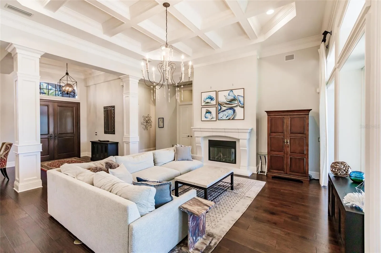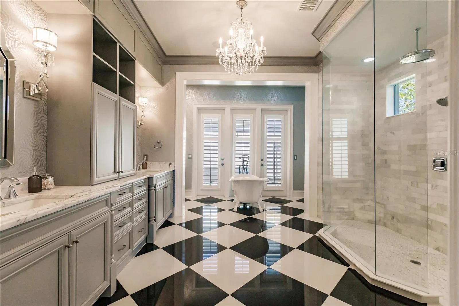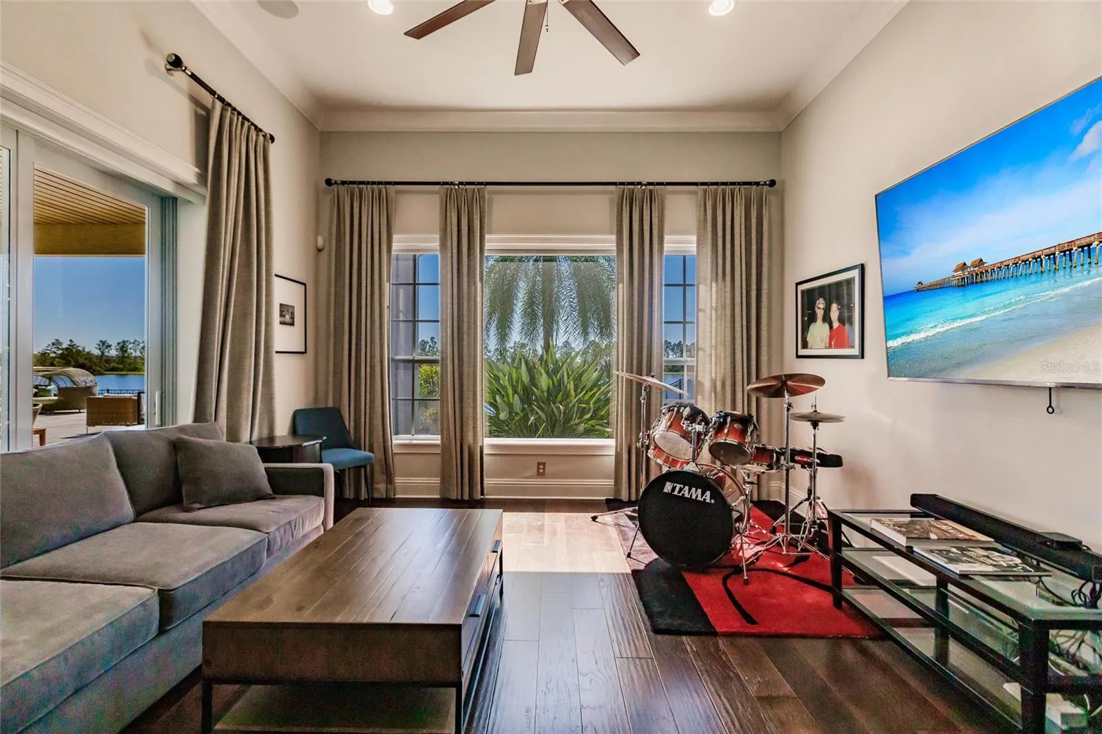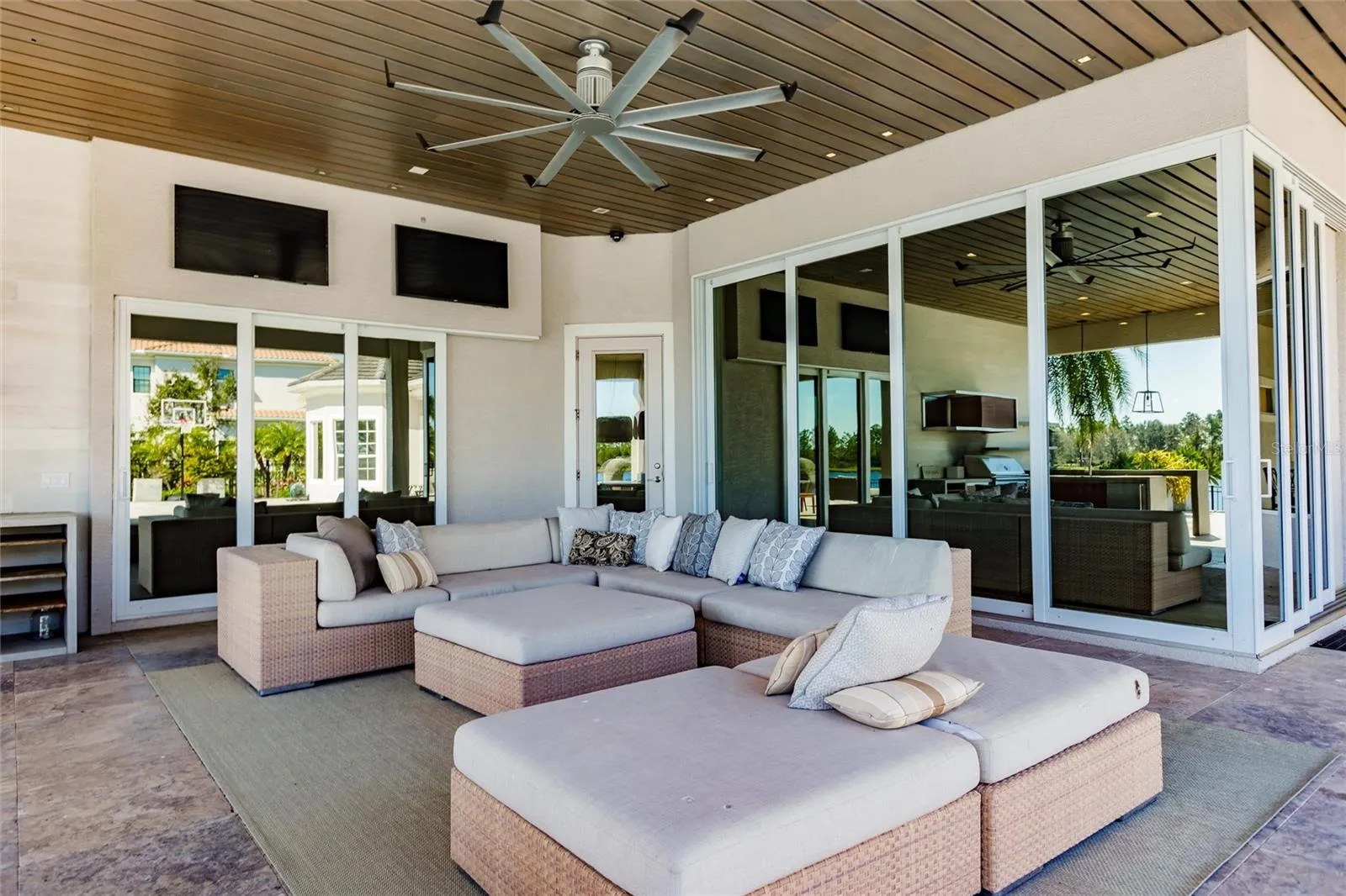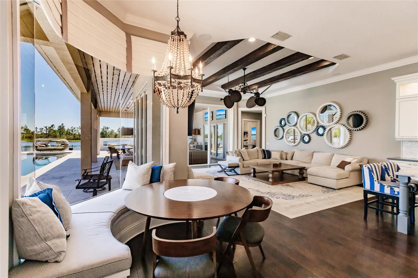An exceptional estate with unmatched outdoor living. Experience luxury living in this custom-built Lakewood Ranch estate, gracefully situated on 1.19 acres of lush grounds in the exclusive gated community of The Concession. With over 5,000 square feet of thoughtfully designed living space, this home blends elegance, functionality, and serene natural beauty. OUTDOOR LIVING: Step outside and immerse yourself in the ultimate Florida lifestyle. The expansive lanai boasts a heated pool with an infinity spa, a tranquil water feature, and a travertine paver deck, creating an idyllic retreat. Entertain effortlessly in the fully equipped outdoor kitchen or unwind by the fire pit while taking in sweeping views of the serene lake and private preserve. This outdoor haven is perfect for relaxation and entertaining year-round. STORAGE AND PRIVACY: the home showcases a split floor plan with every bedroom featuring walk-in closets with custom built-ins and their own ensuite bathroom. The master suite is a private sanctuary featuring wood floors, a tray ceiling, and a warm sitting area. Dual dressing rooms offer ample storage, while the spa-inspired bathroom dazzles with marble countertops, an oversized walk-in shower, a freestanding tub, and tankless hot water. ELEGANT ENTERTAINING: The gourmet kitchen is a chef’s dream, adorned with stone countertops, a marble backsplash, top-tier appliances, and a walk-in pantry. Custom wood beams and zero-corner hurricane sliding doors in the family room create a seamless transition between indoor and outdoor living spaces. The formal dining and living areas are complemented by a built-out bar and a stunning wine closet with a wrought-iron gate, ideal for showcasing fine wines and spirits. A bonus room with a wet bar provides additional space for gatherings. SAFETY AND HURRICANE PROTECTION: This home is equipped with hurricane-impact windows throughout, a whole-house generator, a smart home equipment closet, and dual garages with space for four vehicles. These features, combined with the secure gated community setting, ensure peace of mind. EXCLUSIVE AMENITIES: The Concession spans over 1,200 acres with just 250 residences immersed in old Florida charm. It is home to the award-winning Concession Golf Club, featuring a Jack Nicklaus Signature Golf Course co-designed with Tony Jacklin. This world-class club has hosted elite tournaments, including the World Golf Championships and NCAA Championships. Minutes from the vibrant shopping, dining, and entertainment of UTC, Benderson Park, Main Street, and Waterside, this estate offers the perfect balance of tranquility and accessibility with none of the CDD fees.