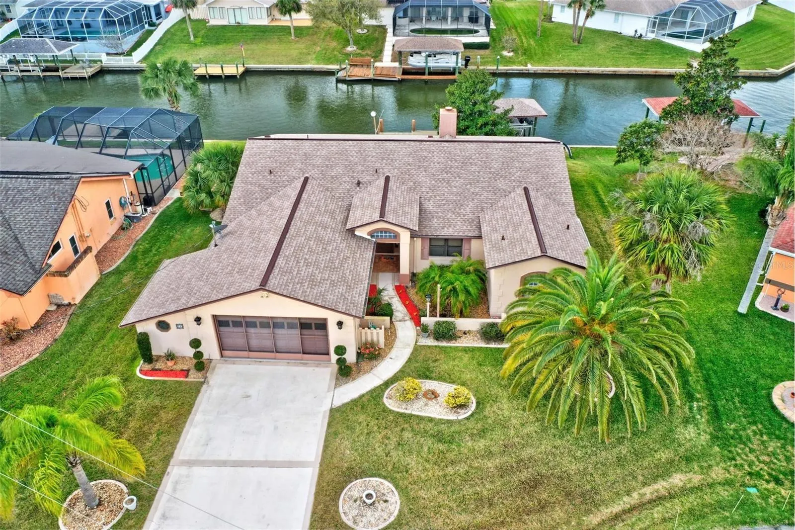 WATERFRONT!! This is the ultimate waterfront home with recently updated floors, interior paint and baths. Situated near the end of a beautiful cul-de-sac street with breathtaking saltwater canal views in the backyard. Just a few hundred yards from the Intracoastal Waterway with no fixed bridges along the way. There is a place for your boat in the 45-foot dock and boathouse with lift. Plenty of room to entertain on back porch overlooking canal. Home features over 2400sqft with a very large master suite with views of the water. The heart of the home is the fireplaced living room where you will host your large family gatherings. New roof 2022. Water heater 2019. HVAC 2011. Garage workshop. Hurricane Shutters. Don’t miss this opportunity to secure your waterfront oasis in Sailboat country. Schedule your private showing today.
