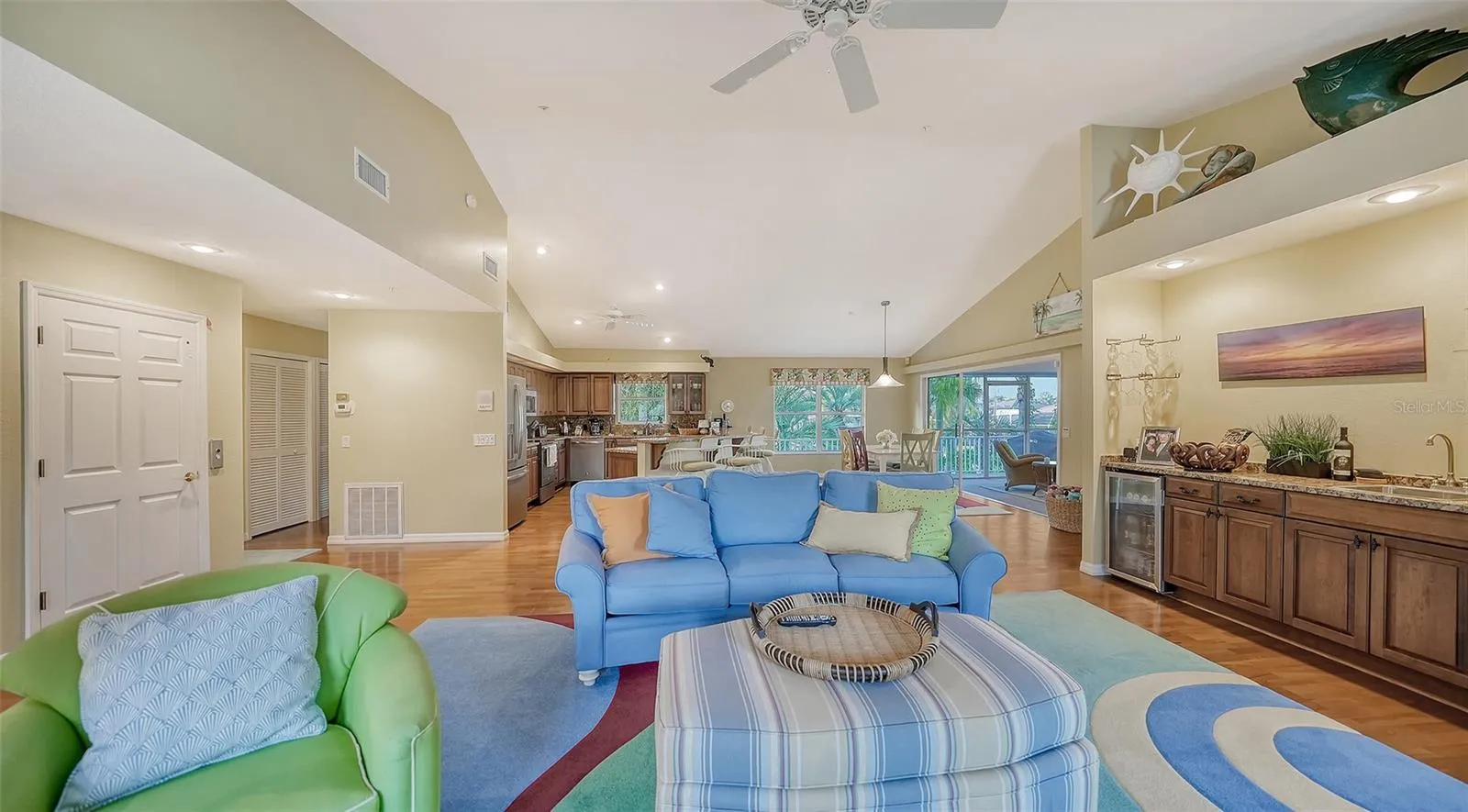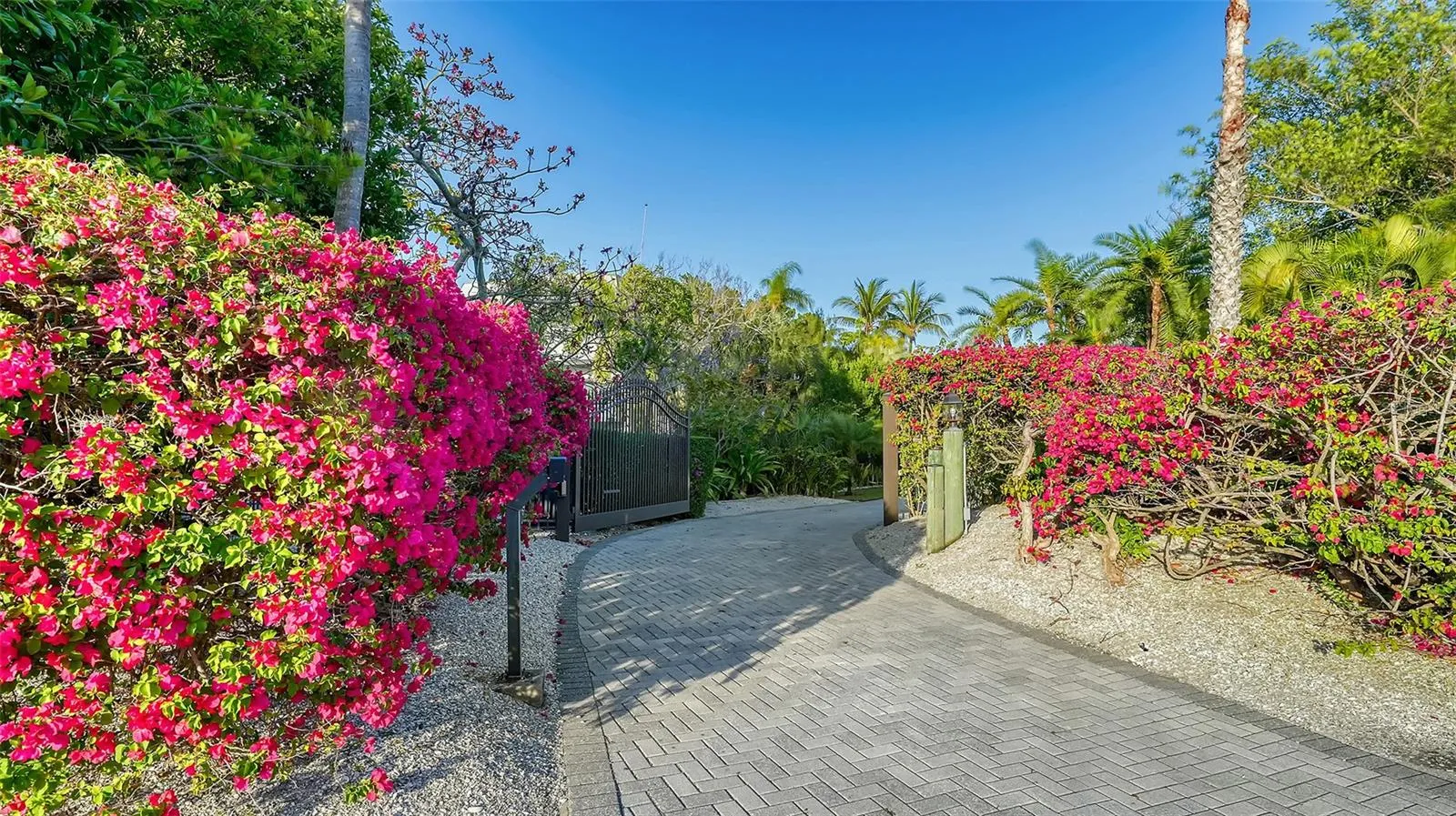 A gated entrance and paver driveway surrounded by lush landscaping leads to this lovely home on a wide canal that is a boater’s dream. The location is a private half plus acre estate across the street from the beautiful Gulf of Mexico and beach. The exquisite double entry etched doors open to the first living level of storage and an elevator plus staircase that goes to the main level. The main living level features gorgeous wood floors, beautifully updated kitchen with granite breakfast bar that is open to the entertaining area with serene views over the wide canal waterway. All of the bedrooms have terraces. There is a caged pool and spa with an additional sunning area. This lovely canal home has been completely updated with the new gate and fence around property, major landscape work and premium sound system. The boater has direct intra coastal access. New seawall and dock installed in 2022.