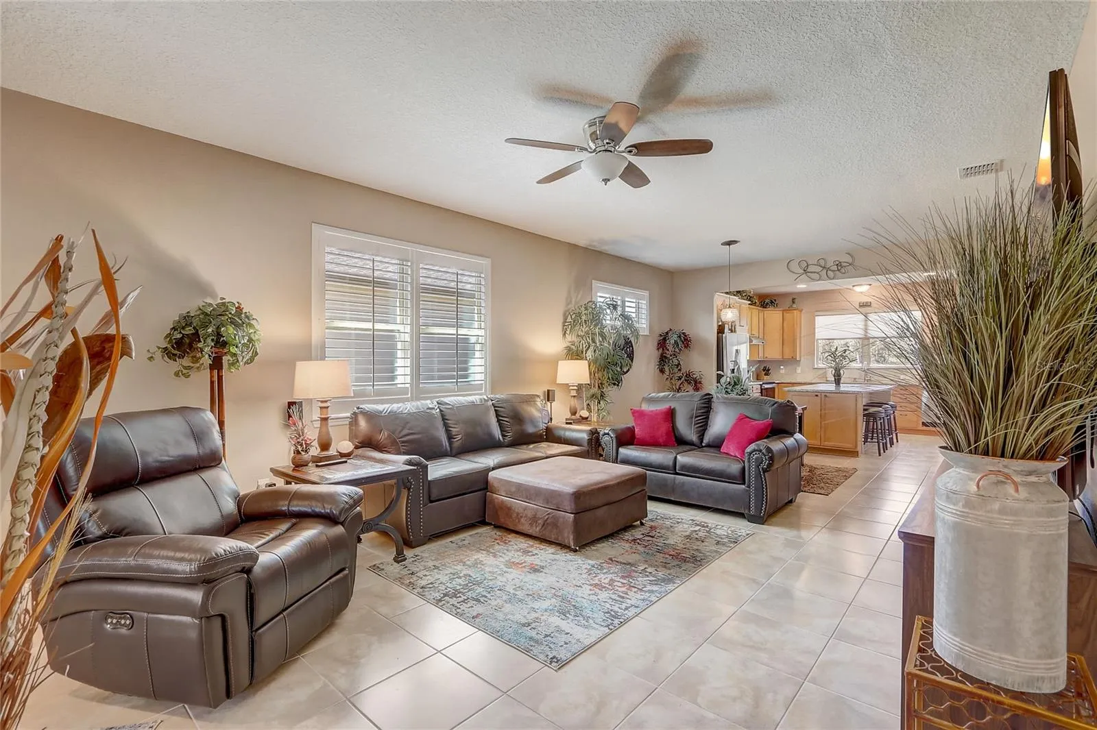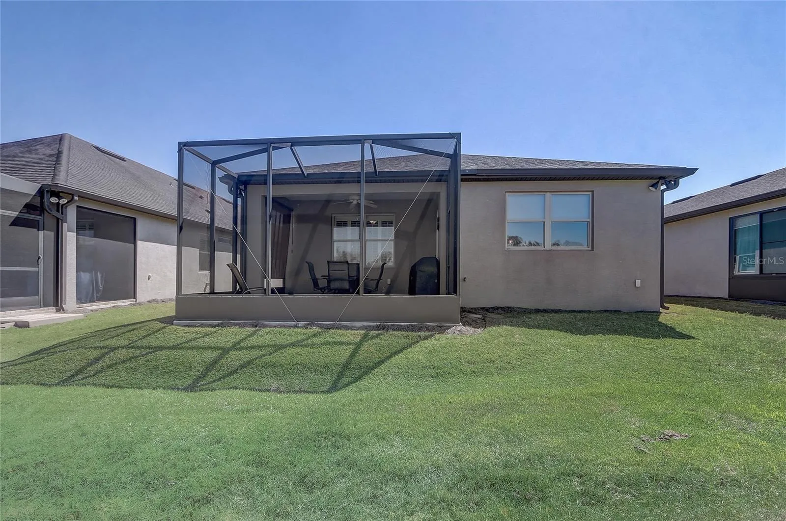 Furniture is negotiable, offering added flexibility for buyers looking for a move-in-ready option. Mortgage savings may be available for buyers of this listing. Welcome to this charming 2-bedroom, 2-bathroom home with a versatile den, perfect for use as an office, extra bedroom, or whatever suits your needs. As you enter, you’ll be captivated by the open-concept design that seamlessly connects the living room, dining room, and kitchen, creating a spacious and inviting atmosphere. The kitchen is a chef’s dream, featuring a large center island, a generous pantry, and stainless steel appliances, including a brand-new stove (2024) and a 2-year-old GE refrigerator. The primary suite offers a relaxing retreat with an en-suite bathroom that includes dual sinks, a walk-in shower, and a walk-in closet. Step outside to your private lanai, where you can unwind while overlooking a large backyard, providing plenty of space for outdoor activities. Located in the desirable 55+ community of Stone Creek, you’ll enjoy a wealth of amenities, including a dog park, pickleball and tennis courts, a basketball court, and even a baseball field. This home offers the perfect blend of comfort, convenience, and community living.