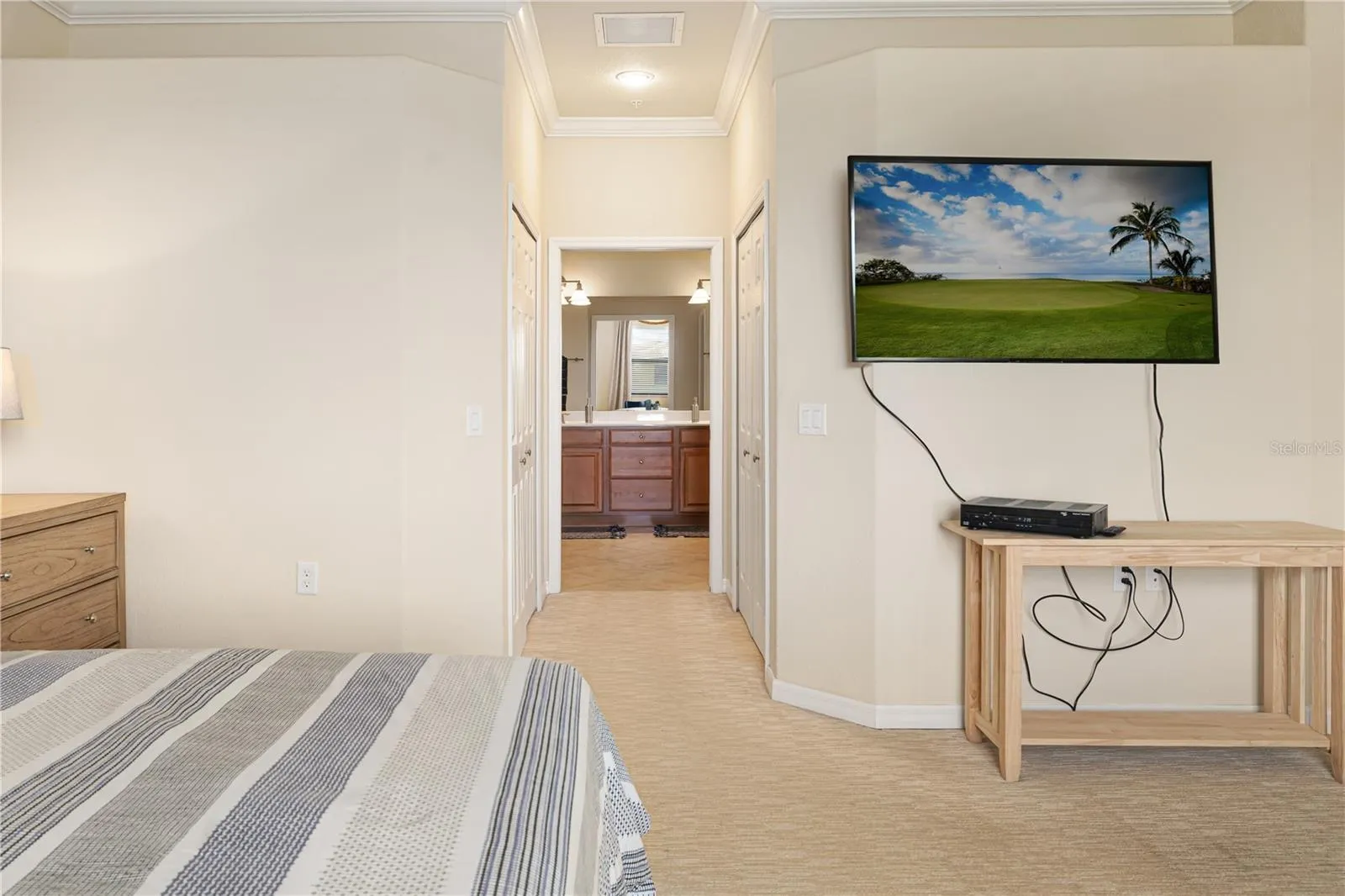 All Furniture Negotiable! YOUR FLORIDA DREAM IS HERE WITH INCREDIBLE GOLF & LAKE views in this GOLF-DEEDED Luxury Coach Home in River Strand Golf & Country Club. Don’t miss this incredible opportunity to own a piece of paradise at a newly reduced price! This upgraded home is an absolutely stunning golfers paradise with a NEW AC in 2024! With over 2100 square feet of space, it offers the feel of a single-family home with its elevated style floorplan. The numerous updates, including hardwood flooring, Brazilian Jatoba, high-end ceiling fans/lighting, and upgraded window treatments, contribute to its luxurious feel. The owner’s suite is a retreat with its spacious layout, upgraded carpet, customized walk-in closets, and a luxurious ensuite featuring a soaking tub, shower with a seamless glass door, and separate water closet. The two large guest rooms offer versatility, accommodating either double beds or additional office space. Safety is paramount with hurricane glass windows and sliders providing peace of mind during storm seasons. The oversized lanai offers breathtaking sunset views overlooking beautiful hole #2 of the Sanctuary course, perfect for relaxation and entertaining. The large two-car attached garage includes tandem space for a golf cart or extra storage, along with upgraded epoxy flooring and an electric vehicle charging station. Plus, being golf deeded grants access to 27 holes of the Arthur Hills designed golf course and all the resort amenities of River Strand Golf & Country Club. This is a dream home for golf enthusiasts and those seeking luxury resort-style living in a sought-after community close to it all.
