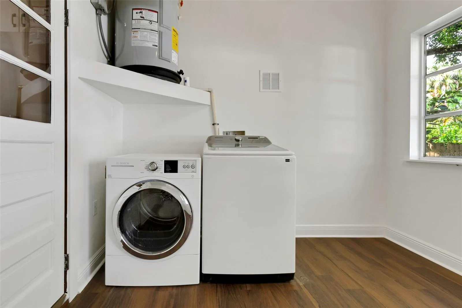 And with a mud room/laundry room that leads out to a time honored brick path and huge backyard, there’s room for pets, parties, or even that dream garden under the mature Camphor Tree.