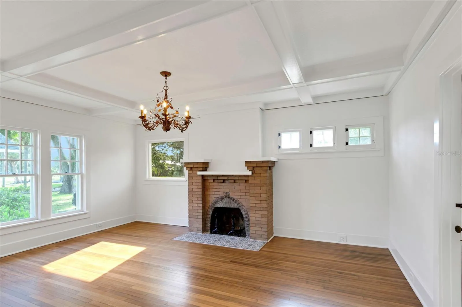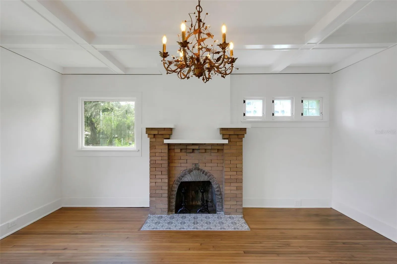 The living and dining rooms flow together effortlessly, complete with coffered ceilings, and anchored by a cozy fireplace, now decorative, that still brings all the ambiance without the upkeep. The kitchen has been updated with newer cabinetry and appliances, and walk-in pantry so you can move in and start living.