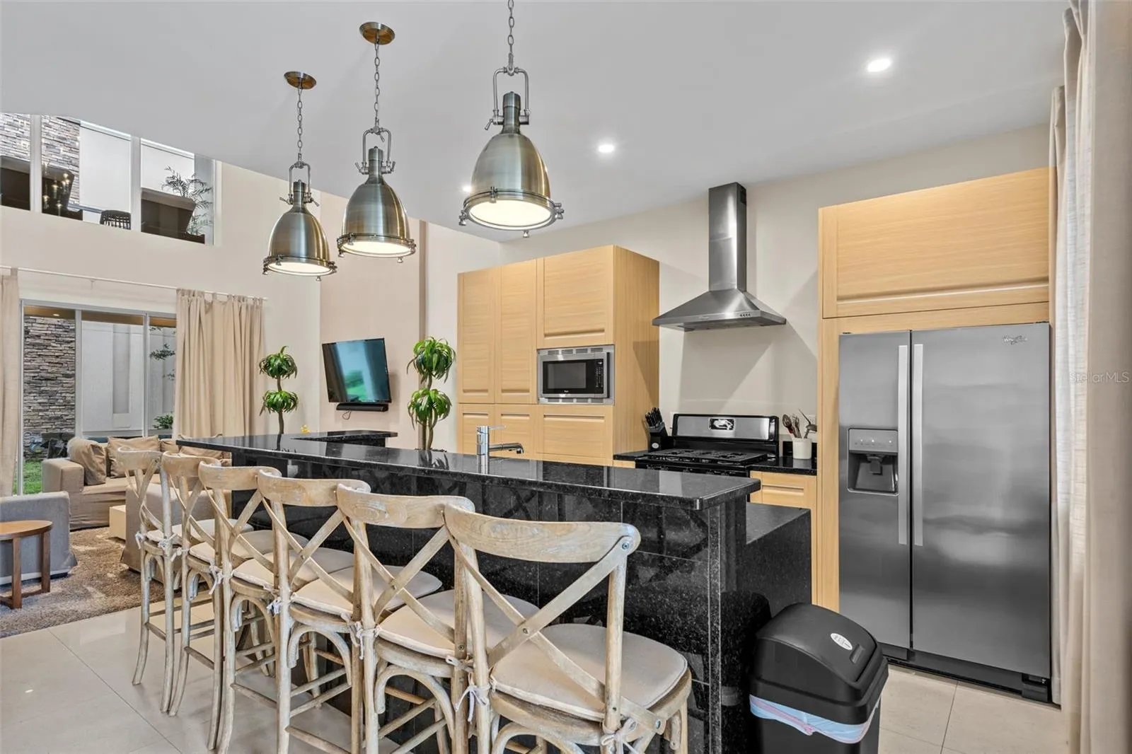 Step into the gourmet kitchen, featuring stainless steel appliances, granite countertops, and a spa-like ambiance. The open floor plan and high ceilings create a spacious environment, perfect for both entertaining guests and enjoying time with family. The back patio offers a private spa and grill, ideal for unwinding outdoor living.