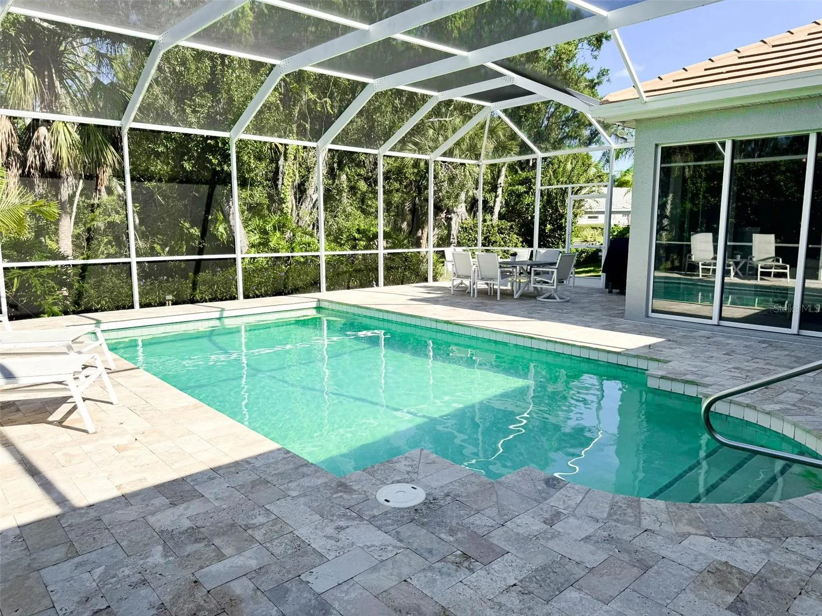 One or more photo(s) has been virtually staged. TILE ROOF REPLACED (2017) | NEW HVAC (2023) | PRIVATE POOL | GENERATOR | BEAUTIFUL GATED COMMUNITY: Fabulous award-winning custom floor plan by Anchor Builders in the desirable Edgewater community. This 3 bedroom, 3 bath residence with additional den and oversized 2-car garage features timeless design and quality craftsmanship throughout. The home offers an expansive heated pool and screened lanai with generous deck space, surrounded by lush landscaping for plenty of back yard privacy. It’s a beautiful and private wooded preserve view! There are no houses in rear yard, plus lots of side yard privacy landscaping. A serene park is located directly across the street. Highlights include 18″ diagonal tile flooring, tray ceilings, extensive crown molding, a large kitchen with island. The primary suite features a spa-inspired bath with jetted tub, dual vanities, and walk-in shower. Energy-conscious features include a radiant barrier, in-wall pest control. Since purchase, the owners have made extensive improvements. These include: a ROOF REPLACED in (2017), KOHLER WHOLE-HOUSE GENERATOR (2023), new A/C in (2023), pool heater and water heater replaced during ownership. The pool bath and guest bath were fully renovated with new cabinetry, fixtures, glass block windows, tile walls and flooring. Kitchen enhancements include granite countertops, backsplash, sink, faucet, CULLIGAN WATER PURIFICATION SYSTEM, and UPDATED APPLIANCES (GE washer, dryer, microwave, Miele dishwasher). The lanai was updated with travertine pavers and new screens, and landscaping upgrades include a tall hedge row for privacy. Additional features: Hunter Douglas window treatments, interior and exterior paint, custom closet shelving, new fans and chandeliers, added ceiling lighting, grab bars in all baths, and garage storage shelving. A natural gas community too! Located in the heart of Lakewood Ranch near University Parkway, this residence offers easy access to Main Street, Waterside Place, UTC Mall, the Polo Club, medical facilities, top dining, and Sarasota’s cultural amenities. Residents also enjoy access to Lake Uihlein with convenient kayak storage. This is a meticulously maintained home in one of the area’s most desirable neighborhoods—your HOME IN PARADISE awaits!