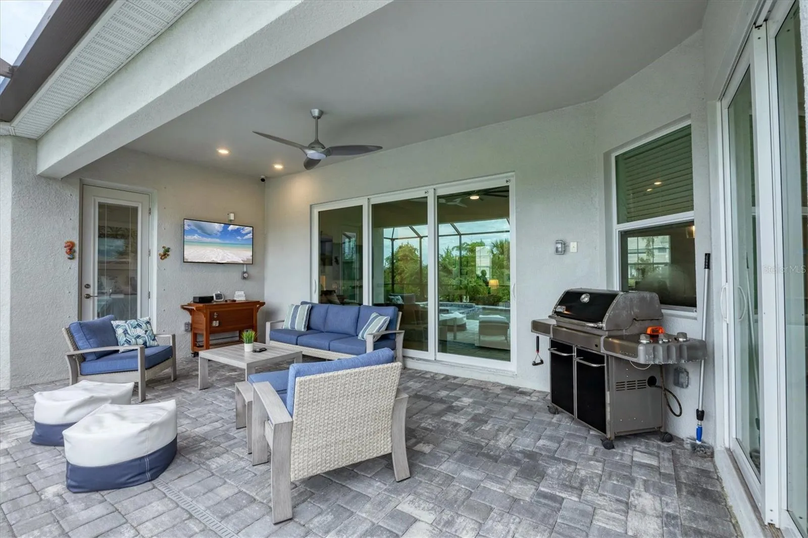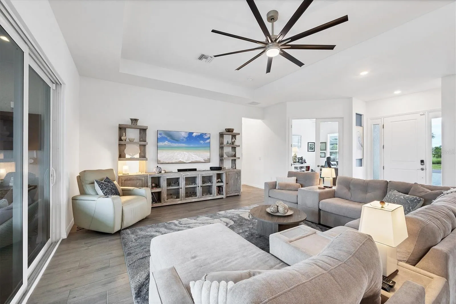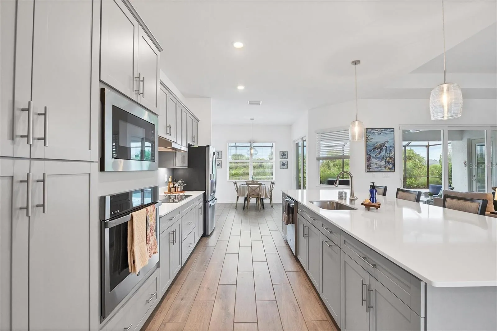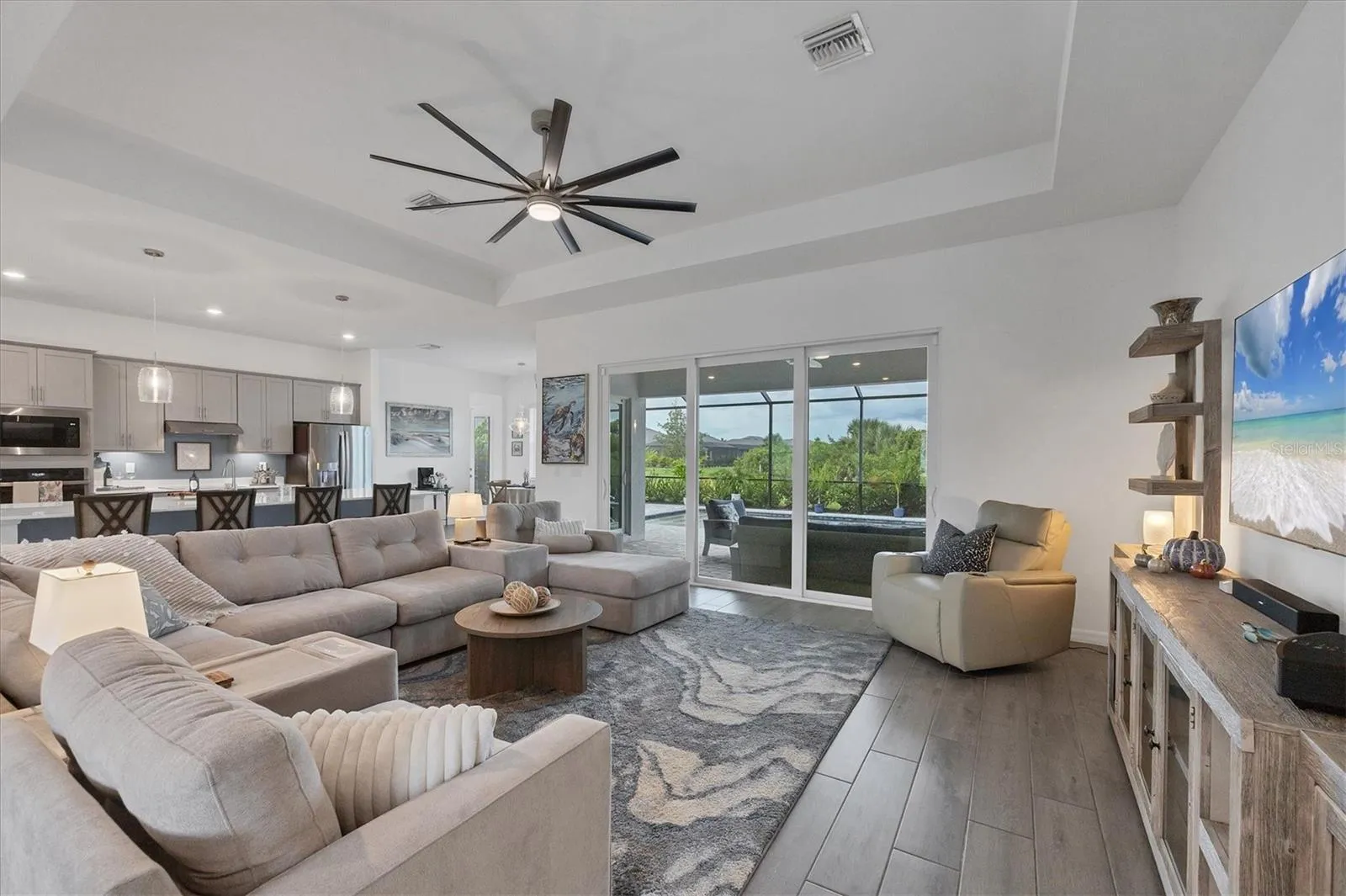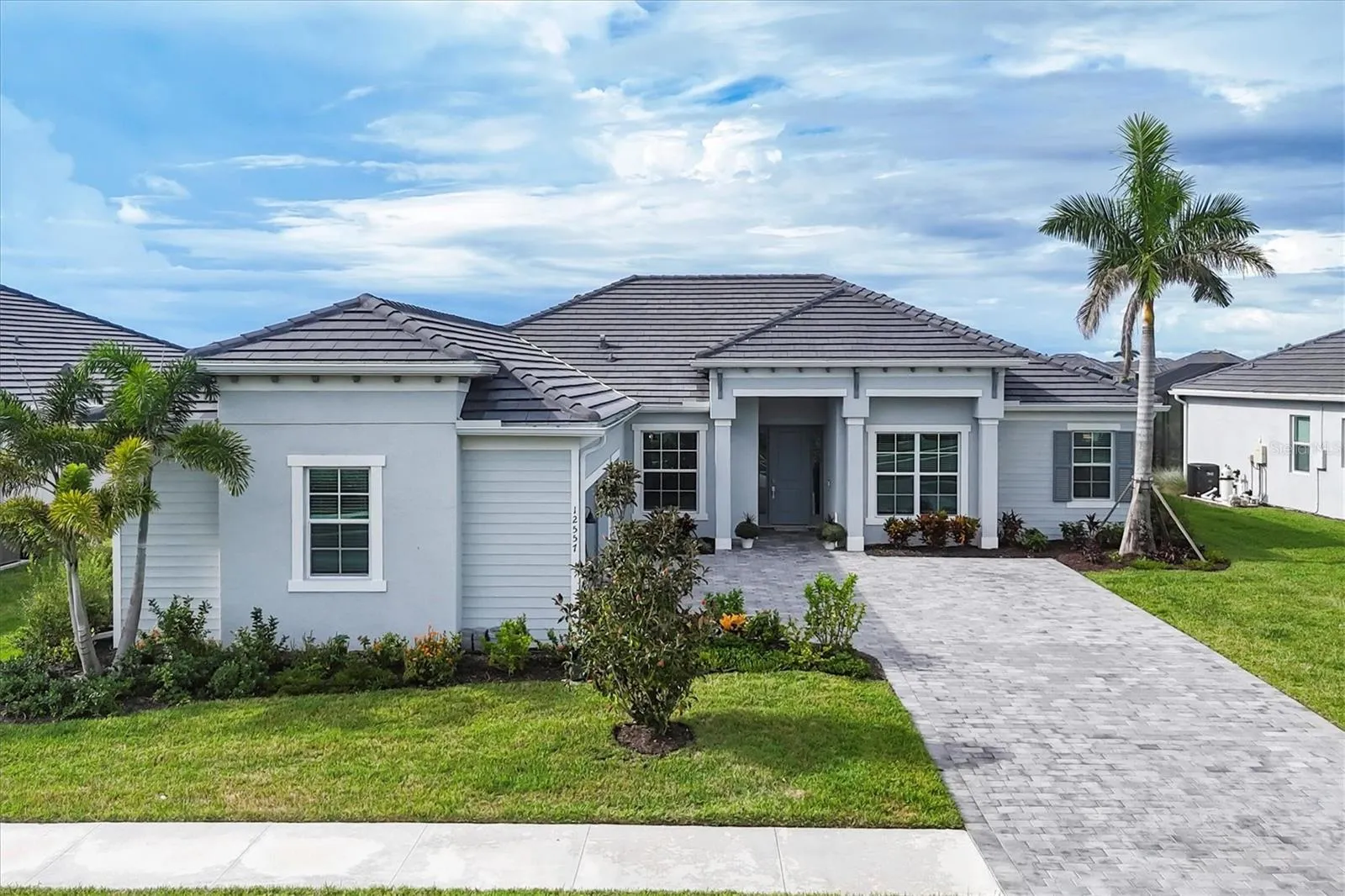 Stately and stunning, this Napoli II model, estate home is located in the premier, resort-style community of Wellen Park Golf & Country Club, with a deeded golf membership—just pay a cart fee to play! Situated on a premium private lot with serene nature preserve views and nestled on a quiet street, this 4BR/2.5BA residence offers the ideal blend of elegance, comfort, and low-maintenance living. Enjoy impact-rated windows and sliding glass doors for your peace of mind, wood-look ceramic tile flooring, soaring ceilings, and a spacious 3-car side-load garage. The open-concept layout flows seamlessly from the chef’s kitchen—featuring quartz countertops, custom cabinetry, and high-end appliances—into generous living and dining areas. Pocket sliders lead to a beautiful outdoor oasis with a heated pool and spa, perfect for entertaining or relaxing in private. The serene and relaxing primary suite is a true retreat with an abundance of space with a reading nook, and a clear view French door leading to your luxurious pool and have blinds between the glass for privacy, and an ensuite bathroom just steps away. The spa-like bathroom includes a soaking tub, large shower, and dual vanities. The 4th bedroom is an added bonus with double French doors which can also be used as den or home office. Two additional guest bedrooms are thoughtfully separated for privacy, ideal for when friends and family come to visit! Living in Wellen Park Golf & Country Club means enjoying resort amenities, including an 18-hole Gordon Lewis-designed golf course, heated community pool, tennis, pickleball, bocce, tiki bar, salon, spa, state-of-the-art fitness center, dog park, social events, and miles of walking/biking trails. Low HOA dues include your golf membership, gated access, lawn maintenance, irrigation water, cable, and internet. Wellen Park Golf & Country Club offers a vibrant lifestyle with world-class amenities, Located just minutes from downtown Wellen Park include dining, shopping, concerts, yoga on the great lawn, and CoolToday Park, home of the Atlanta Braves spring training. Venice’s pristine beaches and historic downtown are just 20 minutes away. Enjoy the ultimate Florida lifestyle with peace, tranquility, and world class amenities all in a maintenance-free, gated community. Just bring your bathing suit—this executive home is ready for you! NOTE: CDD fee is included in the taxes, and your golf membership is included in your HOA dues. HOA fee also includes basic cable and internet. Welcome Home to Wellen Park Golf & Country Club—where every day feels like a vacation!