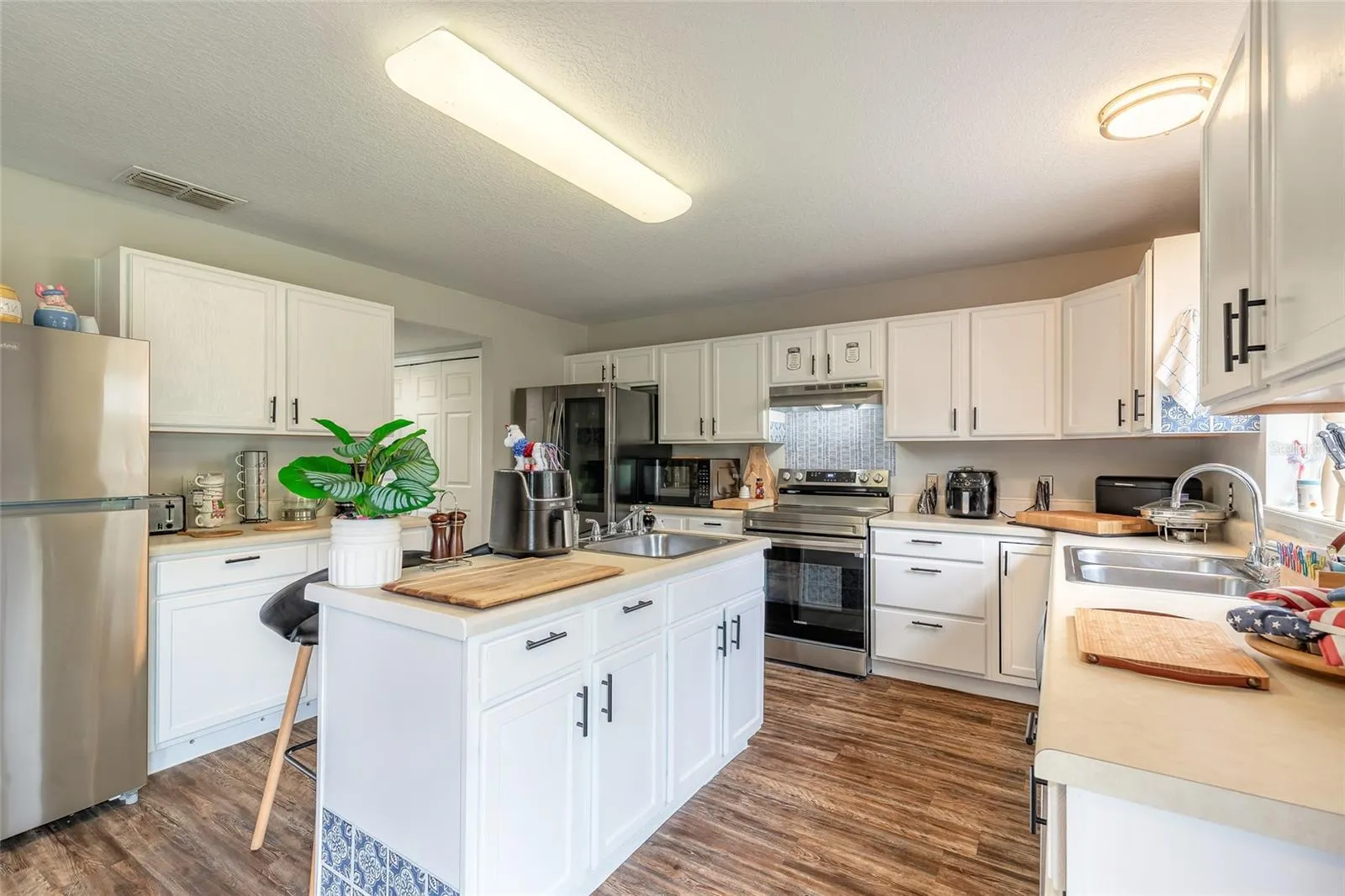 Discover your perfect home in the heart of Kissimmee, offering over 3,800 sq. ft. of beautifully designed living space with six bedrooms, four and a half bathrooms, and a three-car garage. This residence is ideal for families seeking both comfort and flexibility, featuring a private in-law suite with its own full bath and garage, plus a detached guest house with a one-car garage that’s perfect for rental income or visitors. Recent upgrades, including a newer roof, AC, and water heater, provide added peace of mind. Inside, a grand staircase opens to bright formal living areas that flow seamlessly into a chef’s kitchen with plenty of cabinetry and counter space, connecting directly to the family room for easy entertaining. Upstairs, a versatile loft can serve as a home office, playroom, or additional living area, while the owner’s suite offers a true retreat with a walk-in closet and spa-inspired bathroom complete with dual vanities, a soaking tub, walk-in shower, and private water closet. The additional bedrooms are generously sized with ample closet space. Outside, an oversized lot and spacious backyard create endless opportunities for outdoor fun and relaxation. Located just minutes from Orlando’s world-famous attractions, shopping, and dining, this home combines luxury, convenience, and lifestyle—all with HOA fees that include cable and internet.