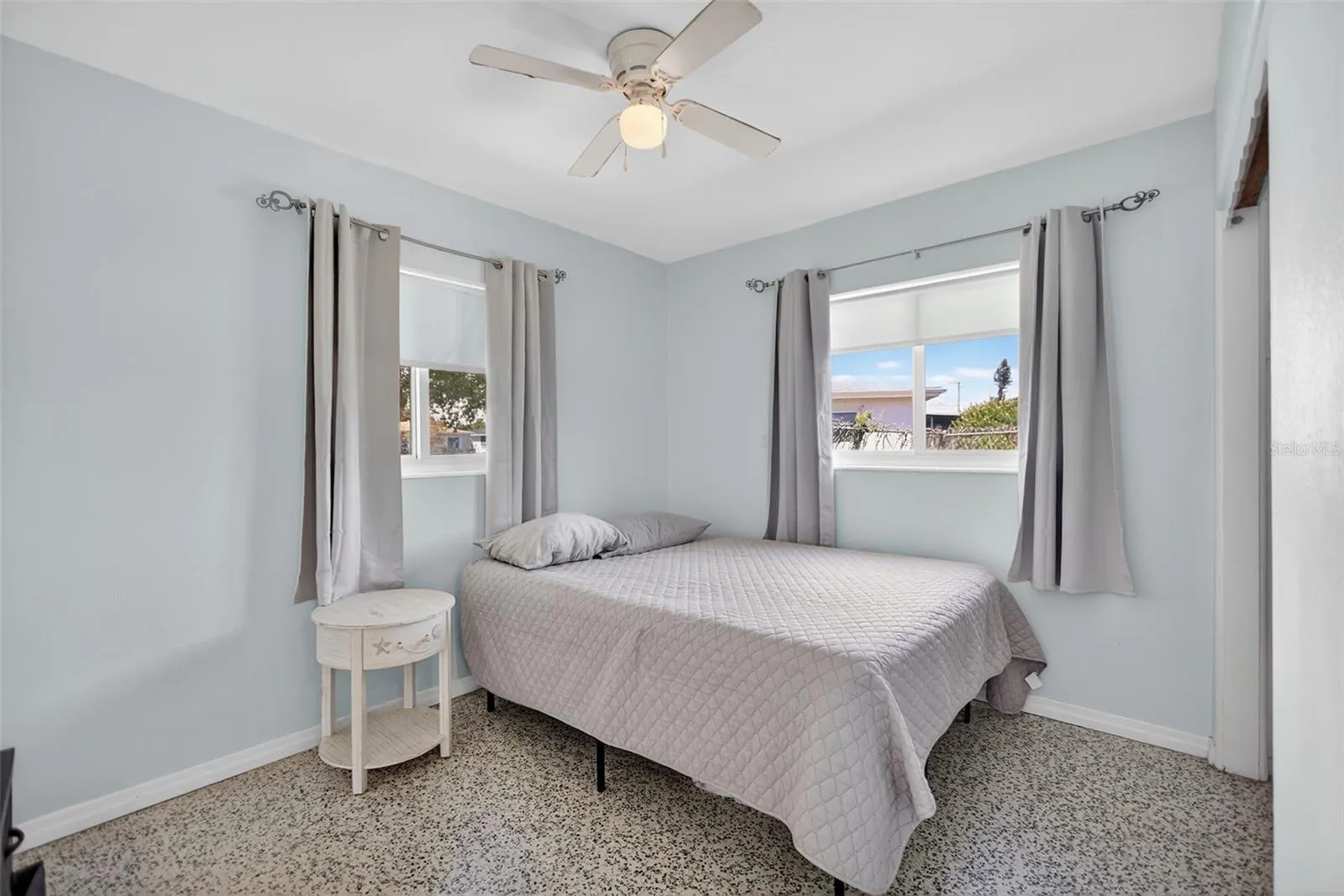 Great first time home or investment rental. Very cute 2 bedroom/1 bath home with BRAND NEW HURRICANE IMPACT WINDOWS throughout the home 2024. BLOCK CONSTRUCTION home, located on a corner lot close to beaches but still in the heart of the city. This home comes with a one car garage which has laundry area and a built-in shower, for those days when you have finished gardening and don’t want to dirty the main bathroom. This area could be turned into an extra bedroom with bathroom for a growing family. The property has a large Florida room, along with a private fenced back yard – perfect for entertaining, and a must have for both young families and pets. Home has Terrazzo floors in living, dining and bedrooms, with ceramic tile in the bathroom, kitchen and Florida room. Brand new hot water heater installed 2024. New roof in 2019. New motor installed in AC unit in January 2023. Close to shopping, restaurants, grocery stores and a gym.