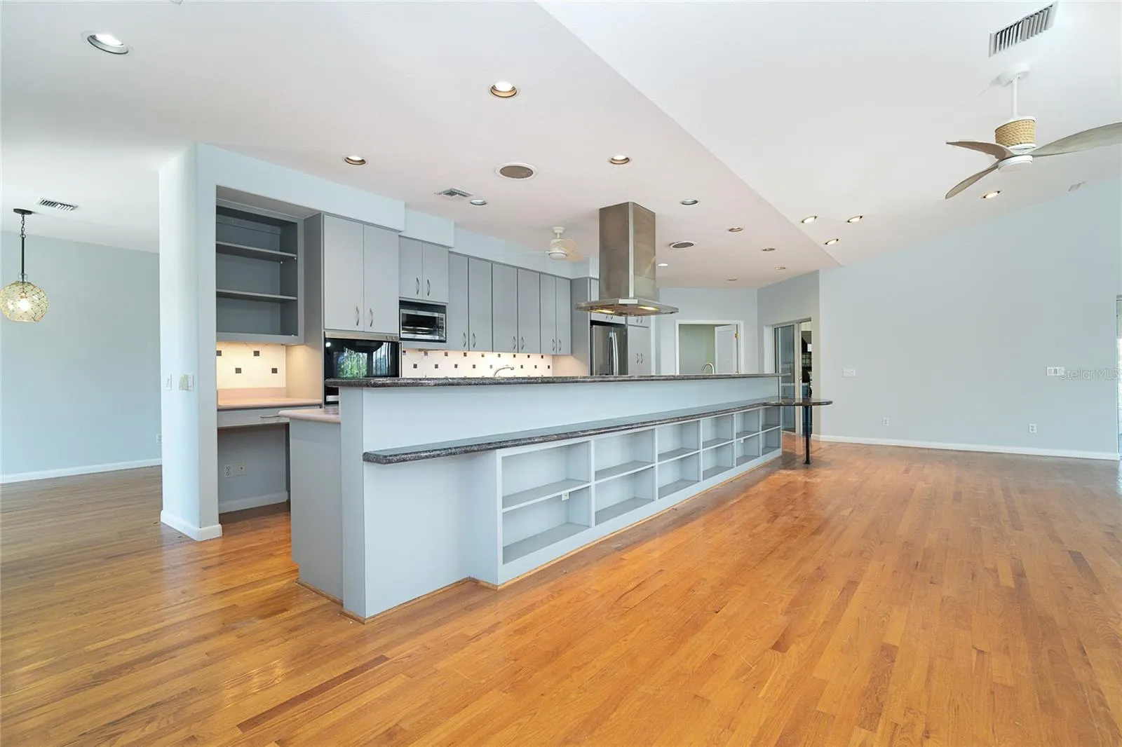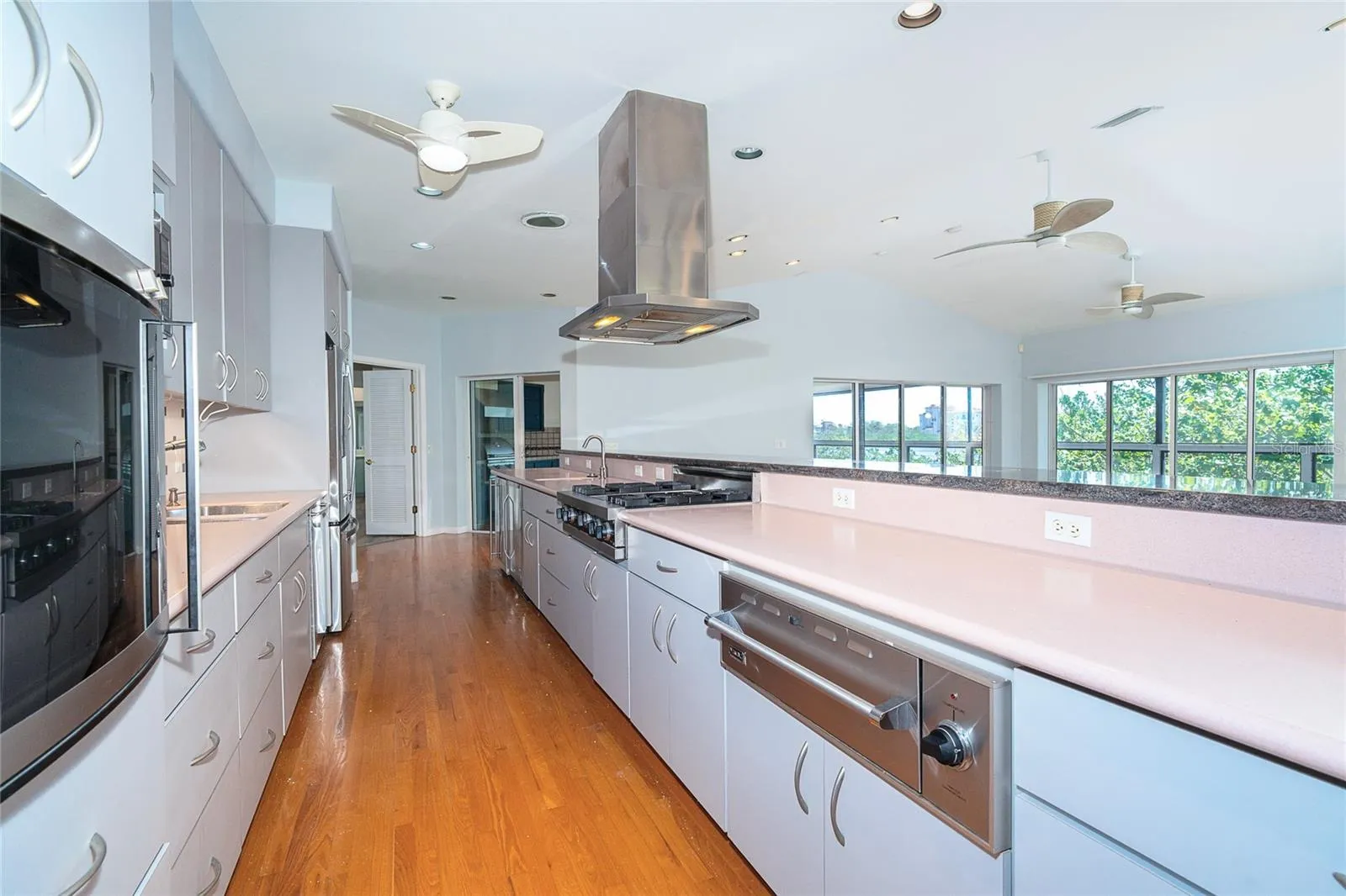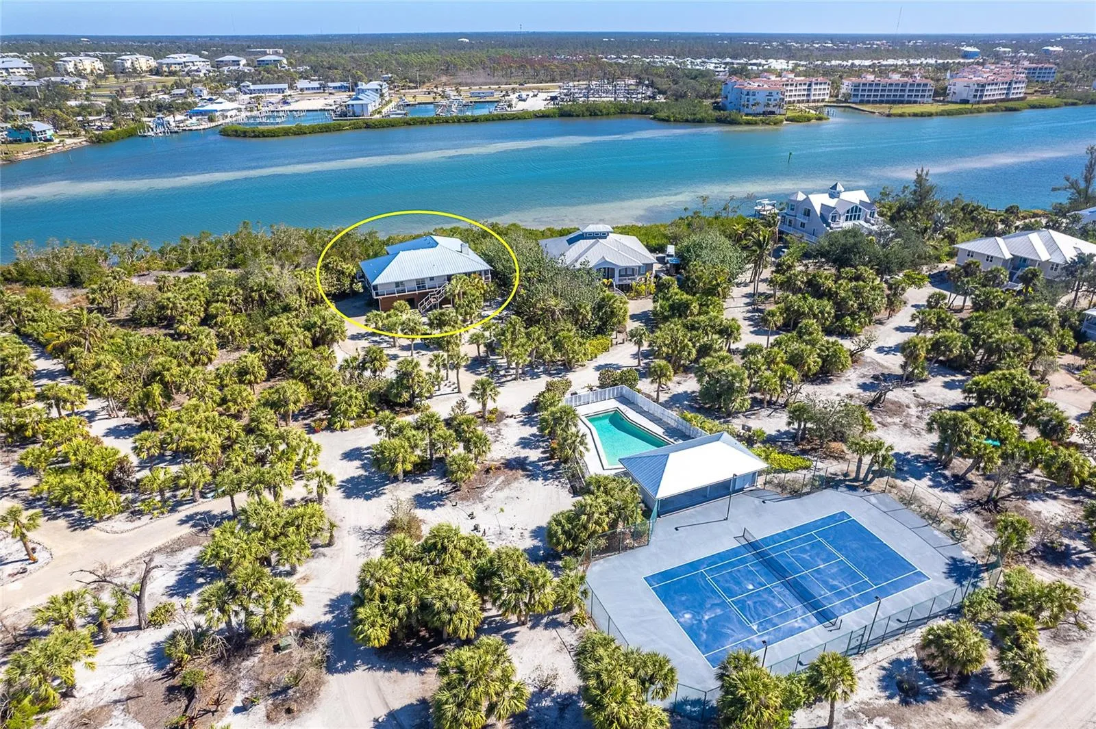 Sleek and sophisticated home in the private and secluded development of Pointe Bocilla. Custom designed and modern, yet laid back enough for island living. With the open living room and gourmet kitchen, it is perfect for entertaining or just relaxing with the island breezes wafting through. Sliders in the living area and primary bedroom retract into the walls so you feel as if you are sitting outdoors in the lush tropical setting. Native low maintenance landscaping abounds! The red oak floors in the living area ooze warmth, the fireplace between the dining and living area make cozy the word that comes to mind. The gourmet kitchen is a delight for the one who cooks, with stainless steel appliances, gas Viking cooktop, convection oven with pizza stone, warming drawer and two wine coolers. The primary suite is separate from the two guest bedrooms making this home ideal for hosting friends and family. There are views of the Intracoastal Waterway from the living area, primary bedroom and rear deck, which also includes a mini outdoor kitchen with large gas grill. This home has a new roof and gutters, screens, crab trap, AC, hot water heater, refrigerator, elevator, interior and exterior paint, lighting, fans, tile and carpeting. There are hurricane shutters for all windows. Pointe Bocilla has only 12 homesites. It’s amenities include a heated pool, tennis court and deeded deep water dock. Don Pedro-Knight-Palm Island is a bridgeless, barrier island situated between Sarasota/Tampa to the north and Ft. Myers/Naples to the south. It is accessible only via private boat or a 4 minute car passenger ferry. Your island dream home awaits!!!