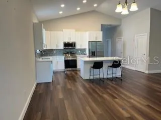 Open floor plan, vaulted ceilings, modern kitchen with 42-inch shaker cabinets all wood, double stainless-steel sink, goose neck faucet, quartz counter tops, functional cooking island, huge Lanai Master bedroom is oversized with trey ceilings, double walk-in closets. pull down-stairs to attic access. Garage is extra deep to accommodate extra-long vehicle. Short walk to community mailboxes. This is a must see.