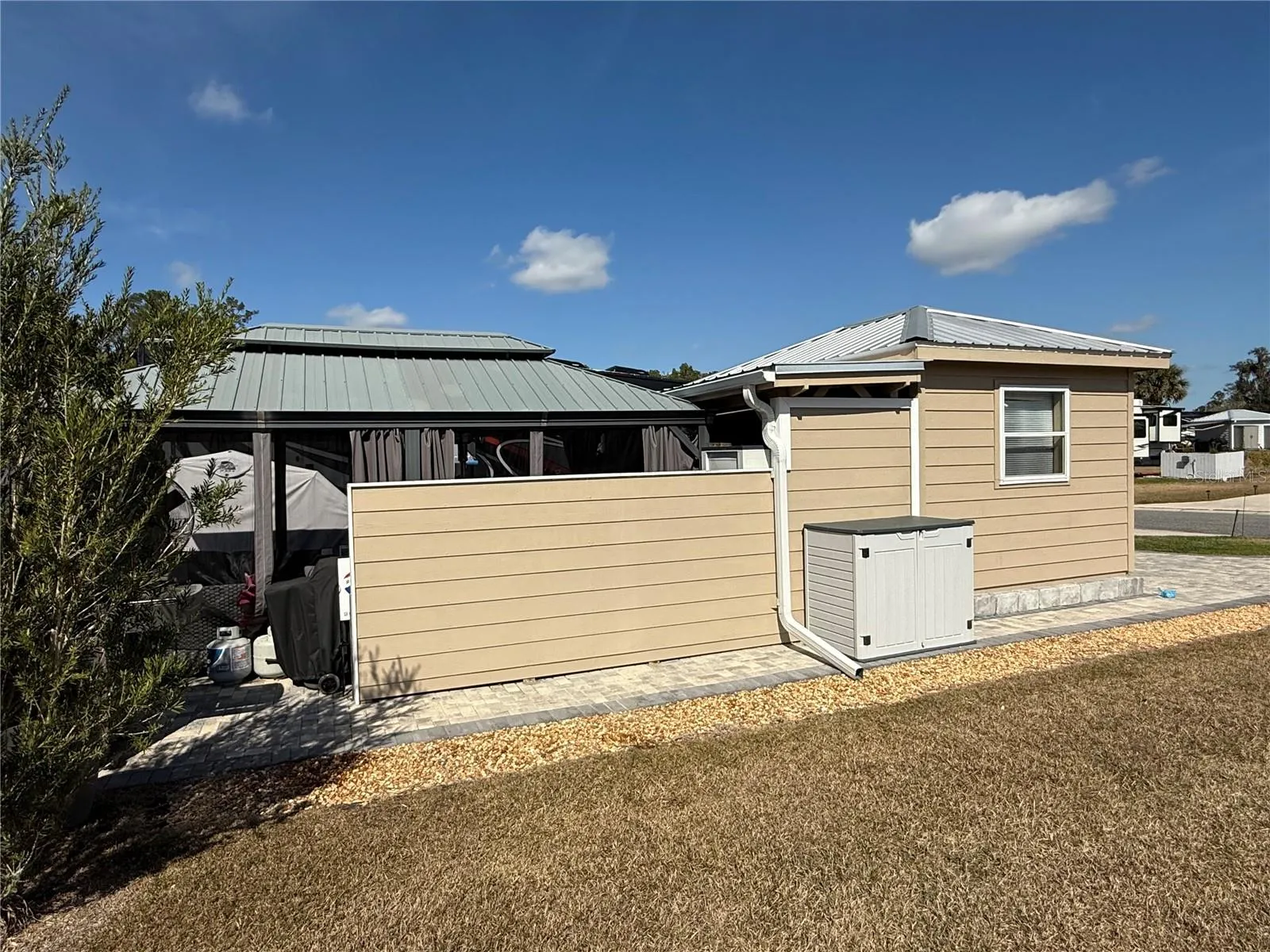 Discover the perfect getaway at this unique reverse pie-shaped deeded RV lot in the highly sought-after Wilderness RV Resort! This exceptional lot is wider at the road and features an easement buffer on the left for added privacy. Mature bottlebrush hedges on both sides enhance the seclusion, creating an intimate oasis for relaxing nights around the huge paver fire pit. Additional paver parking ensures convenience for you and your guests.