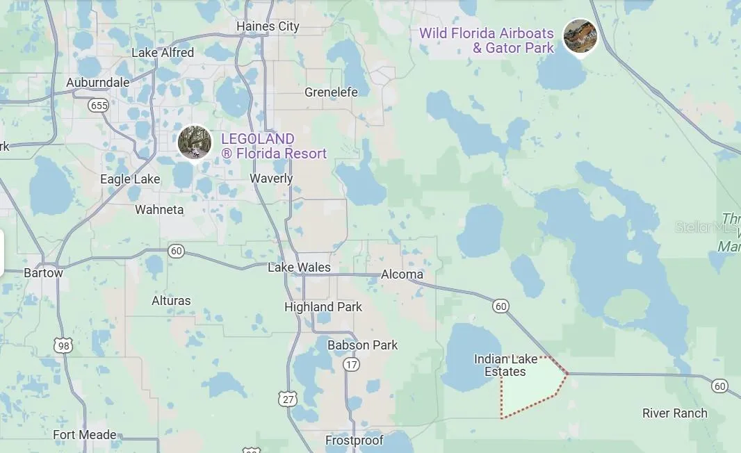 Around 7 miles from Lake Wales from State Road 60. Indian Lake Estates