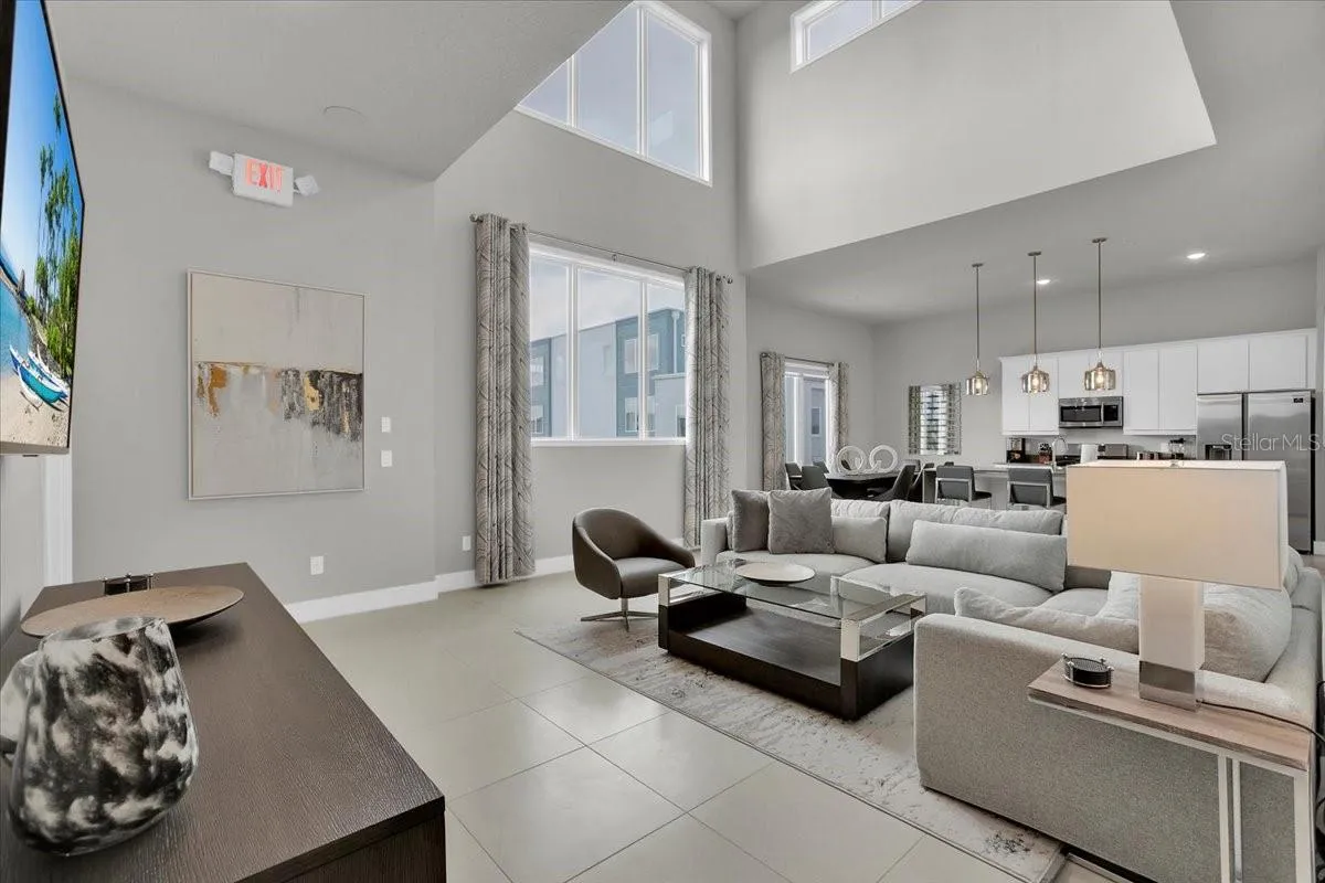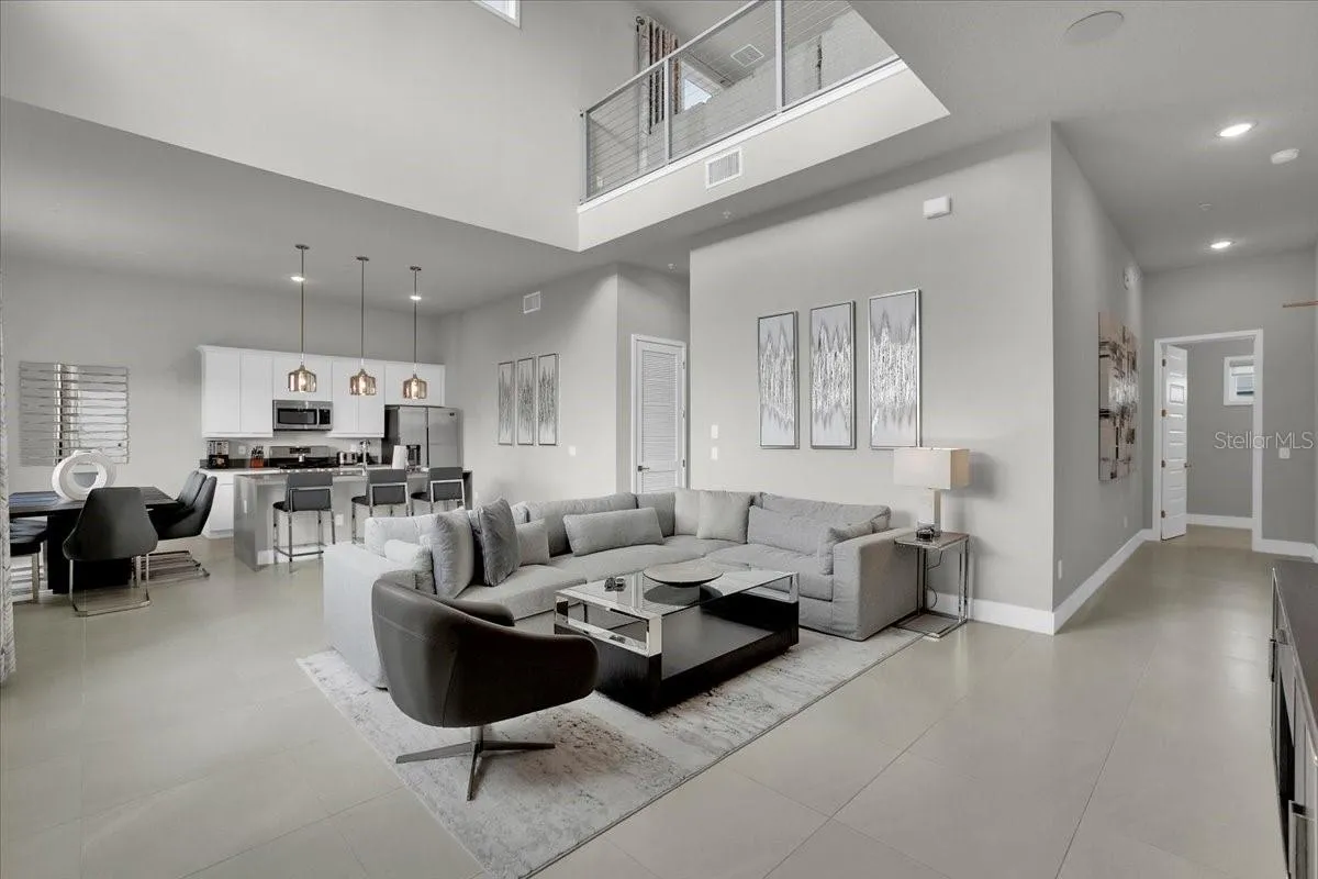 SELLER MOTOVIATED / HUGE PRICE IMPROVEMENT / PRIME PARKING WITH ACTIVE MEMBERSHIP / POOL VIEW / ELEVATOR / ROOF TOP PATIO JUST FULLY UPDATED AND FRESH PAINT INSIDE!! Welcome to Spectrum+ at Reunion!! Experience luxury and modern elegance in this fully furnished 4-bedroom, 3.5-bath condo, featuring breathtaking community pool views, the convenience of a building elevator and located in a prime location for parking. The kitchen stands as the heart of the home, showcasing upgraded cabinetry, quartz counters and a spacious pantry making it a culinary haven. The bright and airy living area, seamlessly flows into the kitchen, creating an ideal space for entertaining and daily living. Ascend to the upper level to find a versatile game room, an additional room with a full bathroom, and a family room that opens to an expansive balcony perfect for soaking in the serene views. Every inch of this home exudes sophistication, from the porcelain tile flooring to the upgraded recessed lighting and elegant window treatments throughout. The master suite offers a private retreat with a luxurious shower, double sinks with quartz countertops, and a spacious walk-in closet. Ceiling fans in every room ensure comfort and style. The highlight of this gem is undoubtedly the picturesque views of the community pool, complemented by resort-style amenities. Residents of Spectrum at Reunion have access to an exclusive clubhouse with a luxurious pool, fireplace, pool cabanas, a gathering room, activity room, gym and access to three PGA Championship golf courses. Enjoy the convenience of being just 40 minutes from Downtown Orlando, 30 minutes from Orlando International Airport, and 20 minutes from Disney and other major attractions. You can enjoy this luxurious townhome as your full-time residence, second home, or short-term rental. Schedule your showing today and see what resort living is about!