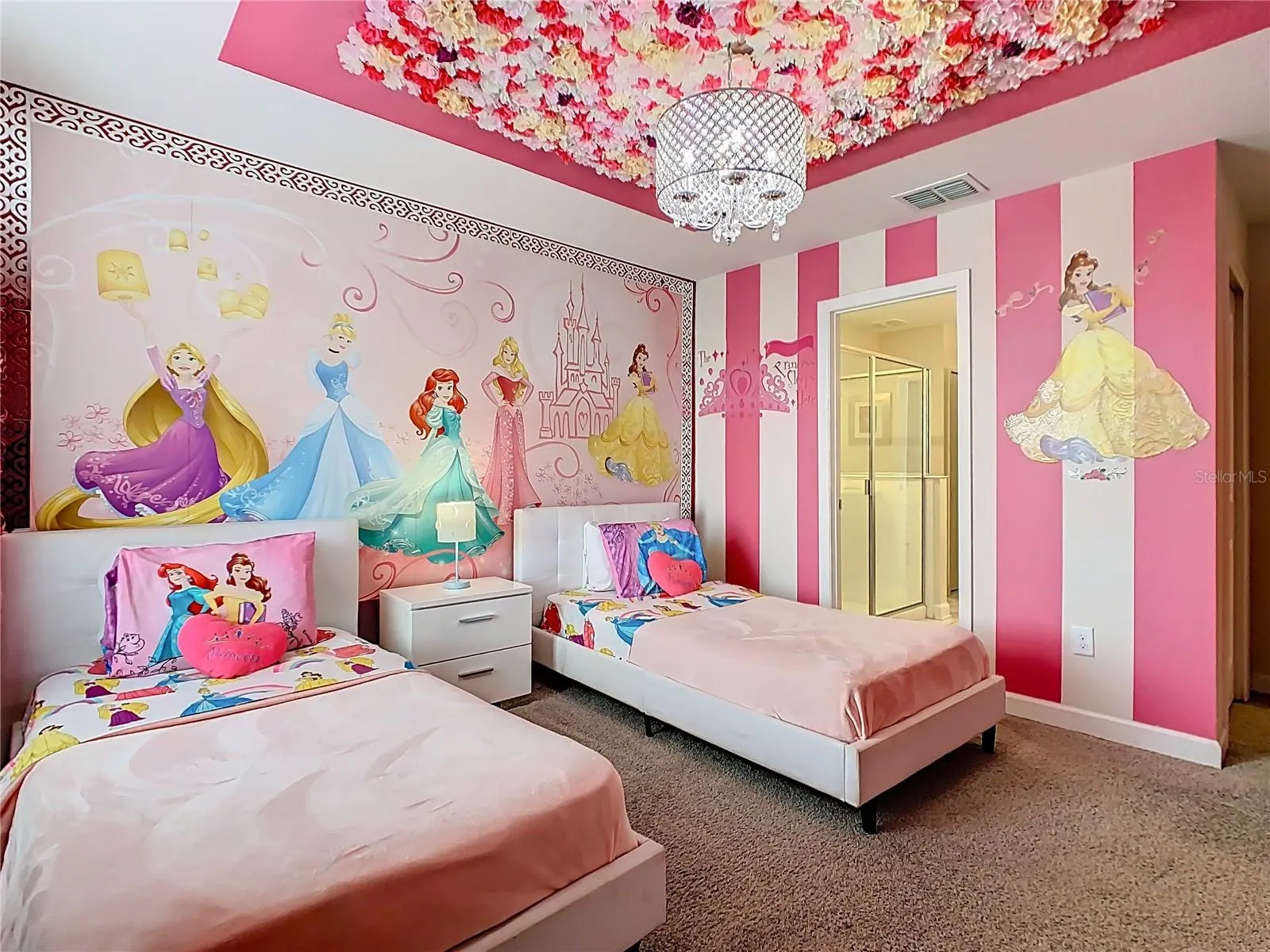 Stunning 8-bedroom, 5-bath vacation home in Storey Lake Resort, located in Storey Cove with serene lake views and a rare 6-seat VR roller-coaster. This Santiago-model is the largest and most popular floor plan, professionally furnished to maximize revenue and occupancy. The open, airy layout features a bright great room, a chef-ready kitchen with quartz countertops, and ample storage, all flowing to tranquil backyard views. With eight bedrooms and five baths, the home offers flexible layouts for families and large groups, including themed rooms for kid-friendly appeal. Entertainment options abound: an enclosed pool with resort lighting, a game room, a movie theater, and the standout VR roller-coaster. Storey Lake’s resort amenities—water park, lazy river, full gym, tiki bar, basketball, volleyball, and tennis courts—are at your doorstep, along with serene lagoons and social spaces. Just 4 miles from Disney and other top Orlando attractions, this property combines strong rental potential with enduring appeal. Professionally furnished and fully equipped for top reviews, easy check-ins, and repeat bookings, making it a turnkey investment with low maintenance.