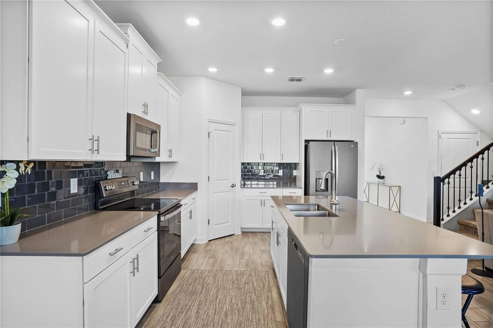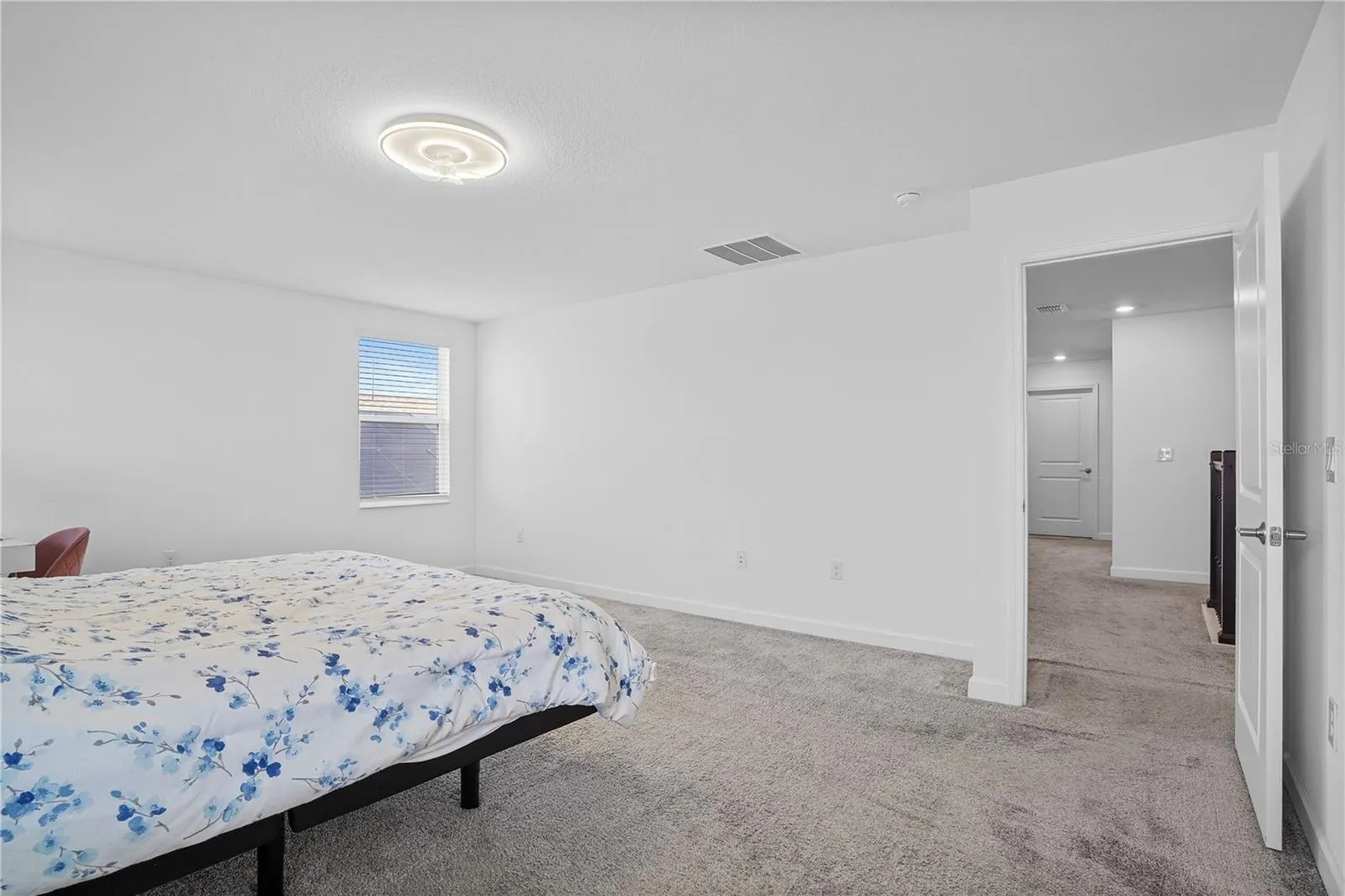 Upstairs, enjoy a spacious game room ideal for movie nights or a family retreat. Elegant iron stair railings add a designer touch. The expansive primary suite includes two large walk-in closets and a luxurious en-suite bathroom featuring dual vanities, a walk-in shower, and a soaking tub. Conveniently located just off the primary suite is the upstairs laundry room. Bedrooms 2-4 each have large walk-in closets and share a well-appointed secondary bathroom. This is a green-friendly home with solar panels and energy-efficient features, making it both eco-conscious and cost-effective.