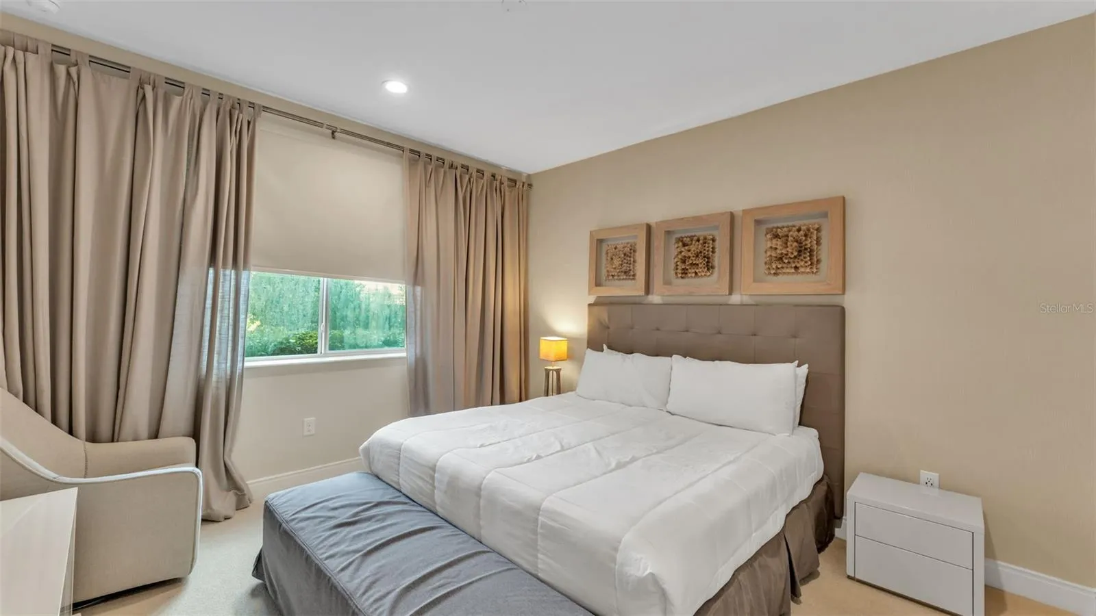 This is THE ONE you have been waiting for, an END UNIT next to the clubhouse with the community pool in your backyard! This 4-bedroom 4.5-bathroom luxury vacation townhome is being offered turnkey, complete with bookings. Located within the gated Magic Village Yards, residents and guests enjoy access to five-star amenities, including a pool, spa, clubhouse, fitness center, restaurant, concierge services, and 24-hour security, all designed for the ultimate vacation experience. Just minutes from Disney and Orlando’s top attractions, this is one of the best investment opportunities in the area. The primary bedroom and bathroom is located on the first floor with 3 spacious bedrooms, each with its own private bath, upstairs. Open floor plan with high ceilings. The kitchen features an oversized island, an eat-in breakfast nook, and ample cabinet space. Short-term rentals allowed with a maximum length of stay 6 months, cannot be used as a primary residence. Measurements are approximate.