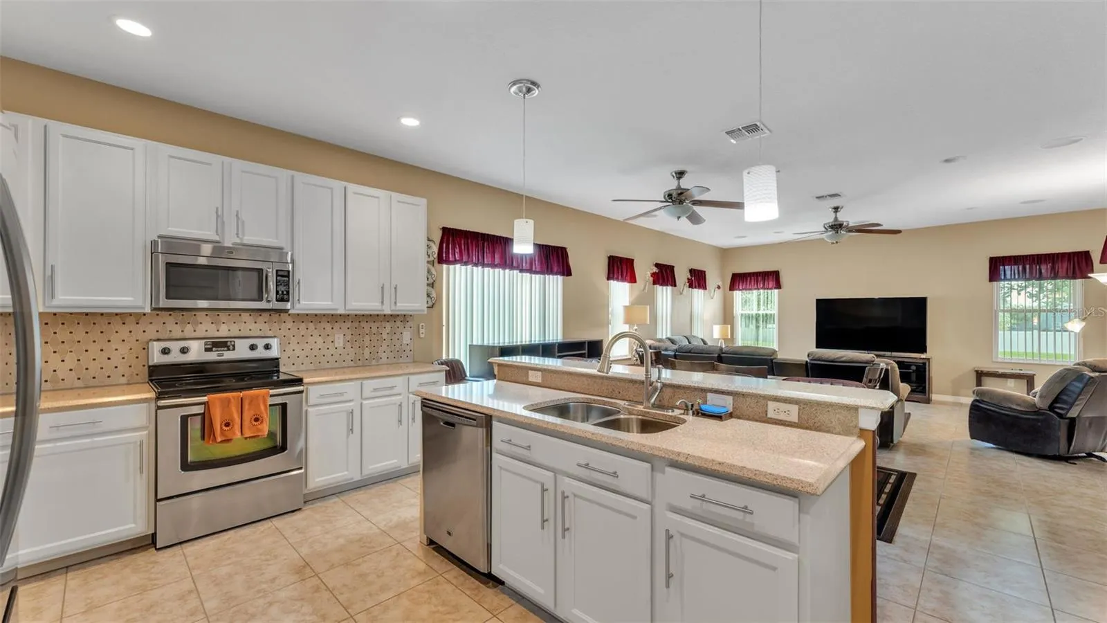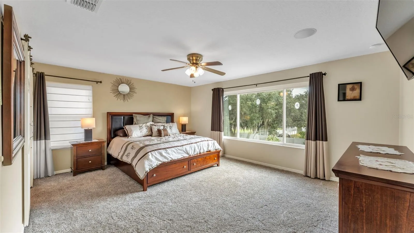 Welcome to this modern and fully furnished five-bedroom, three-and-a-half-bathroom luxury residence, offering the perfect blend of comfort, style, and functionality. From the moment you arrive, the pavered driveway, split three-car garage, gorgeous, landscaped yard, and stately two-story façade set the tone for the sophistication that awaits inside. Step through the front door to find a beautifully designed interior with large-format tile flooring, soaring ceilings, and a thoughtful layout ideal for both entertaining and everyday living. The home features separate formal living and dining rooms, providing refined spaces for hosting, while the open-concept kitchen and family room create a warm and inviting atmosphere for casual gatherings. The gourmet kitchen is a true centerpiece, showcasing granite countertops, a two-tiered breakfast bar, stainless steel appliances, pendant lighting, and a spacious walk-in pantry—perfect for the culinary enthusiast. With a double-primary suite design, the home offers exceptional flexibility. The downstairs suite is ideal for guests or multigenerational living, while the upstairs primary retreat provides a private haven alongside three additional bedrooms, all large in size, and a versatile loft/bonus area—perfect for a media room, playroom, or home office. The laundry room is spacious and fully loaded with cabinetry, a utility sink, and a fantastic tile wall behind the appliances. Enjoy Florida living at its finest on the screened-in lanai with ceiling fans, where you can relax and unwind in comfort and privacy. Immaculately maintained, the roof was replaced in 2023, recently replaced carpeting, the upstairs A/C unit was replaced in 2023, and new windows. Every detail of this home has been thoughtfully curated to provide a move-in-ready experience with timeless appeal. Luxurious, spacious, and impeccably maintained—this home is truly ready to welcome you.