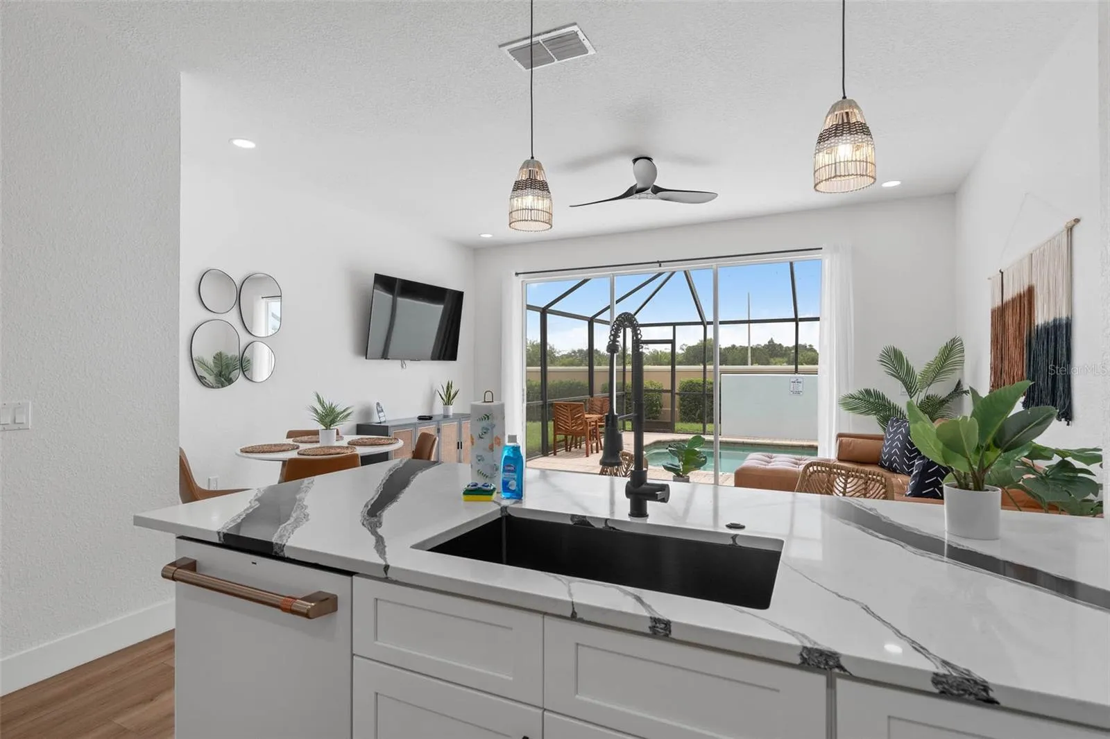 Beautifully Renovated End-Unit in Windsor Hills! Welcome to this stunning townhouse in a premier 24-hour guard-gated community! Perfect for year-round living, a vacation retreat, or a profitable short-term rental, this residence has been completely renovated from top to bottom. Step inside to a bright, open-concept main floor featuring luxury vinyl plank flooring, a brand-new designer kitchen with stunning countertops, breakfast bar, and premium appliances. The open living and dining area opens through sliding glass doors to your private screened-in pool, ideal for relaxing or entertaining. A main-level bedroom and full bath offer comfort and convenience for guests. Upstairs, the primary suite provides a walk-in closet and a beautifully updated en-suite bath. An additional bedroom, full hall bath, and in-unit laundry complete the second floor. Every detail has been updated, including new flooring, bathrooms, appliances, hot water heater, and mechanicals, creating a truly move-in-ready home. Enjoy resort-style living with Windsor Hills’ unmatched amenities: a community pool and hot tub, water park, fitness center, tennis, basketball, and volleyball courts, game room, movie theatre, tot lot & recreation park, plus an on-site marketplace and grill. Just minutes from Disney World and area attractions – this is the lifestyle you’ve been dreaming of. Schedule your private showing today!