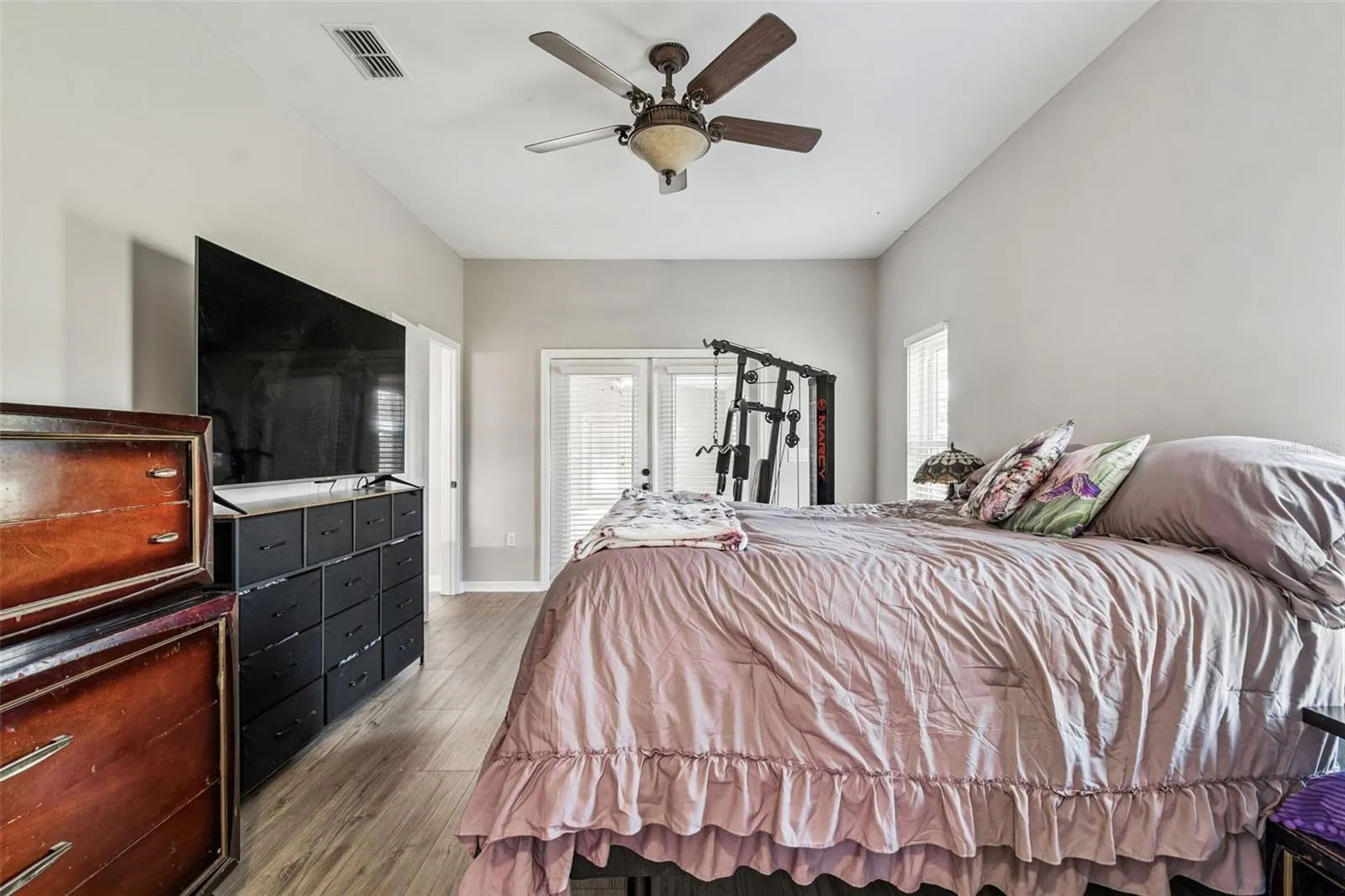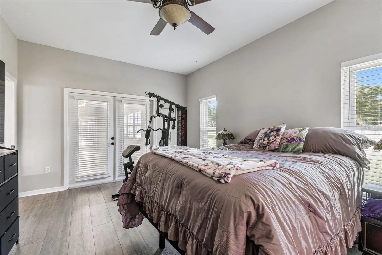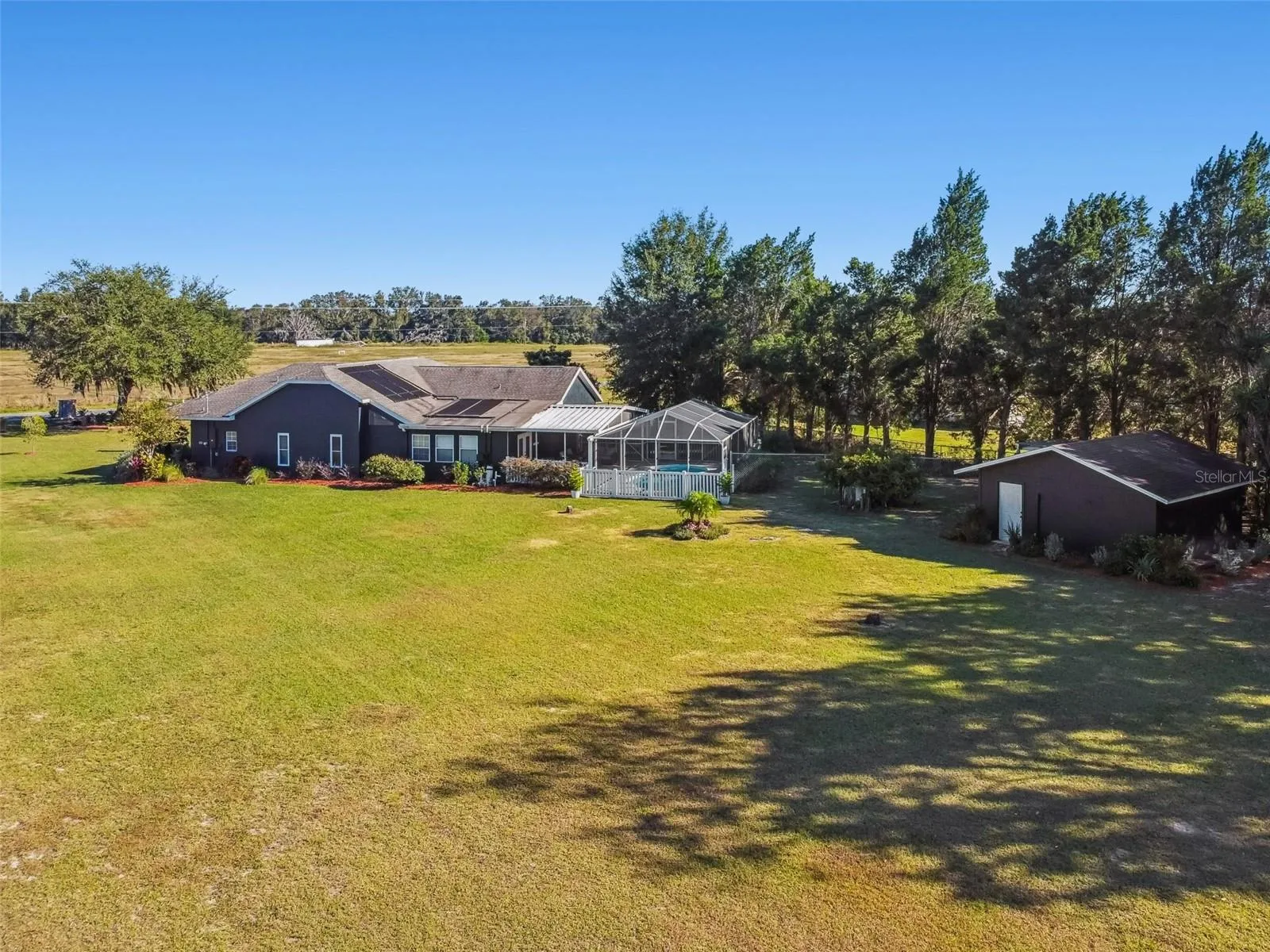 Move in ready! Situated on 1.25 gorgeous, landscaped acres, with AG zoning, a sparkling pool, is a beautifully updated 3/2 home with a 2018 roof, 2023 AC and water heater, fresh paint, and a fantastic split floor plan! From the charming front porch to the bright, airy living spaces with durable vinyl flooring and tons of natural light, this home feels warm and welcoming the moment you walk in. The kitchen is a total win—granite counters, shiplap breakfast bar, stainless appliances, and great views of the living area and dinette. The spacious primary suite features **dual walk-in closets** and a stunning updated bathroom, while the guest bedrooms are tucked away for privacy. Need extra space? You’ll love the huge 14×24 bonus room with a wet bar and French doors leading to the covered pool deck—perfect for game nights, movies, or hosting friends! Step outside for sunny pool days, enjoy the two-car carport with storage, or dream big with the 18×17 detached garage—ideal for a workshop or equipment. Opportunities like this on Scharber Road don’t pop up often…call today and come see this charming property before it’s gone!