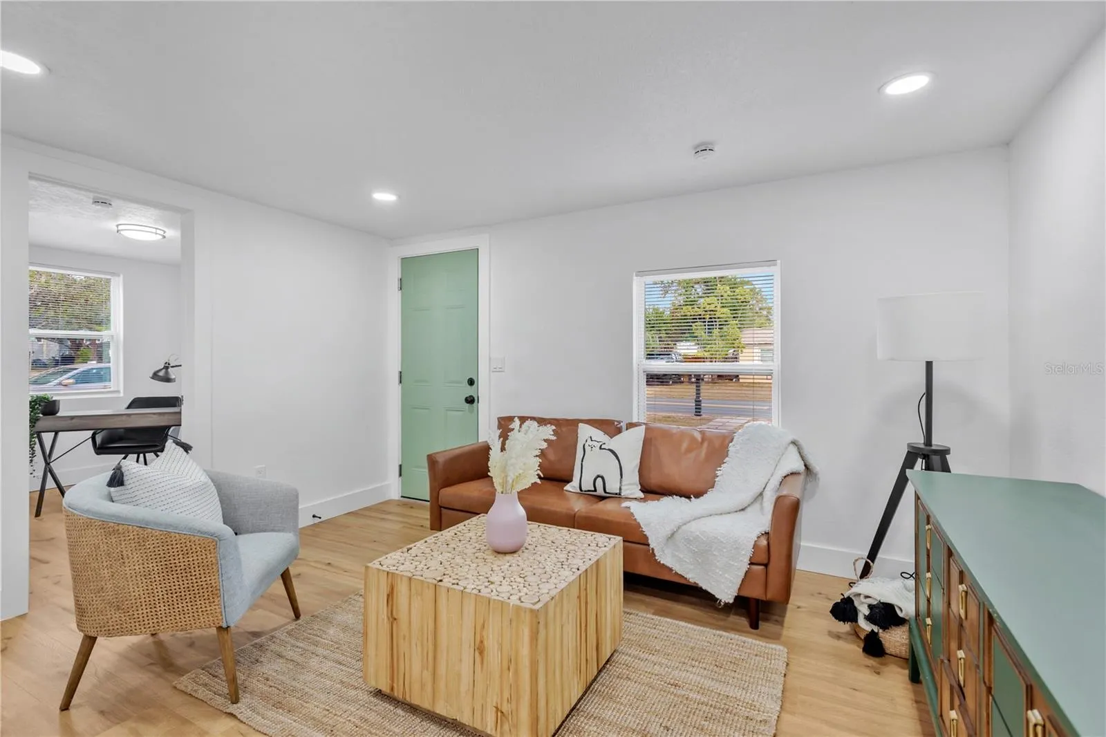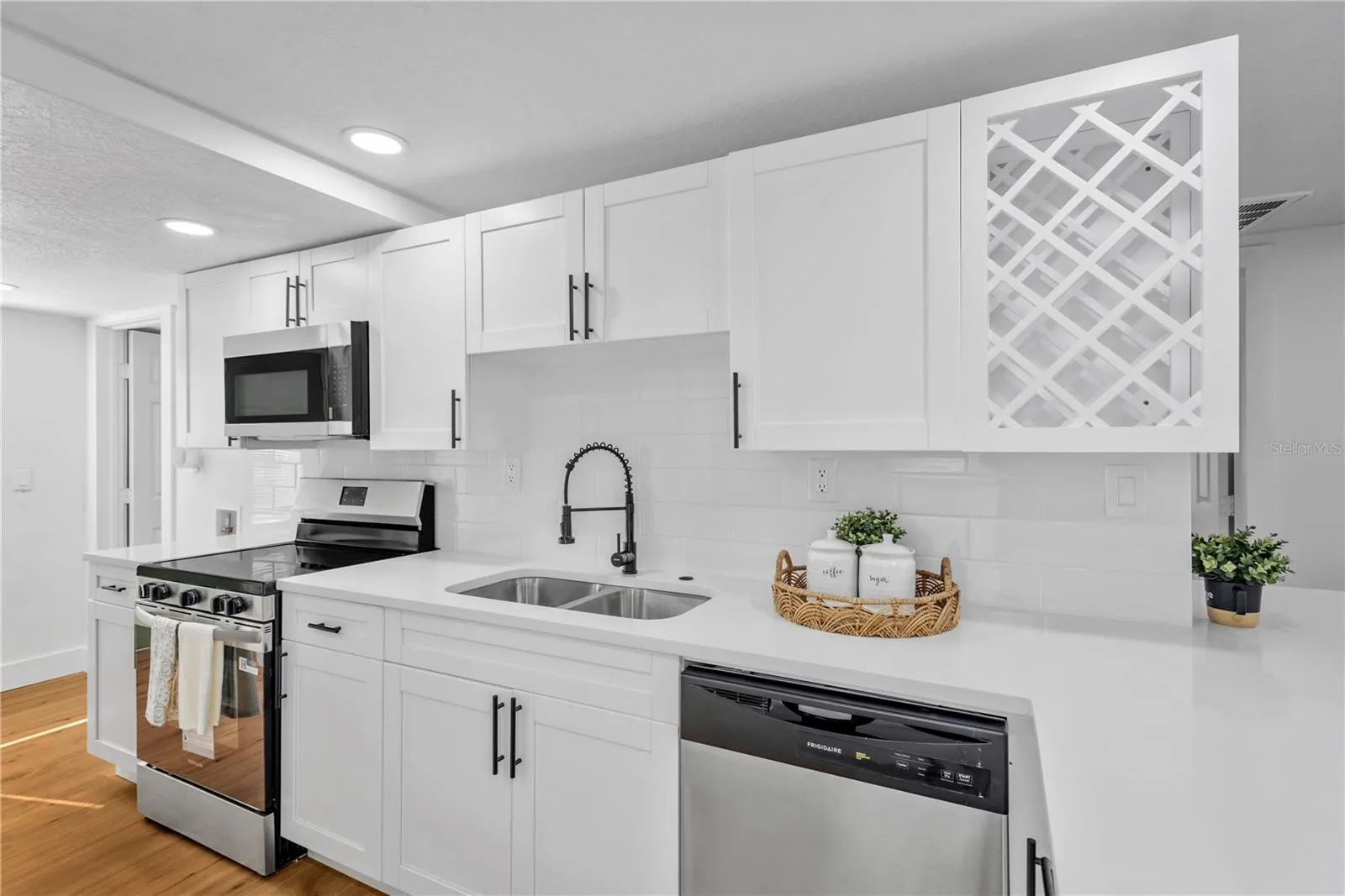 One or more photo(s) has been virtually staged. Beautifully renovated home under 300k in a quiet and established area of North St Pete. This three bedroom, one bath home offers peace of mind with a new roof and new HVAC from 2024. The kitchen features new appliances and a built in wine rack.