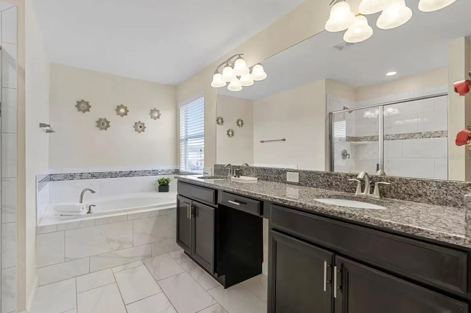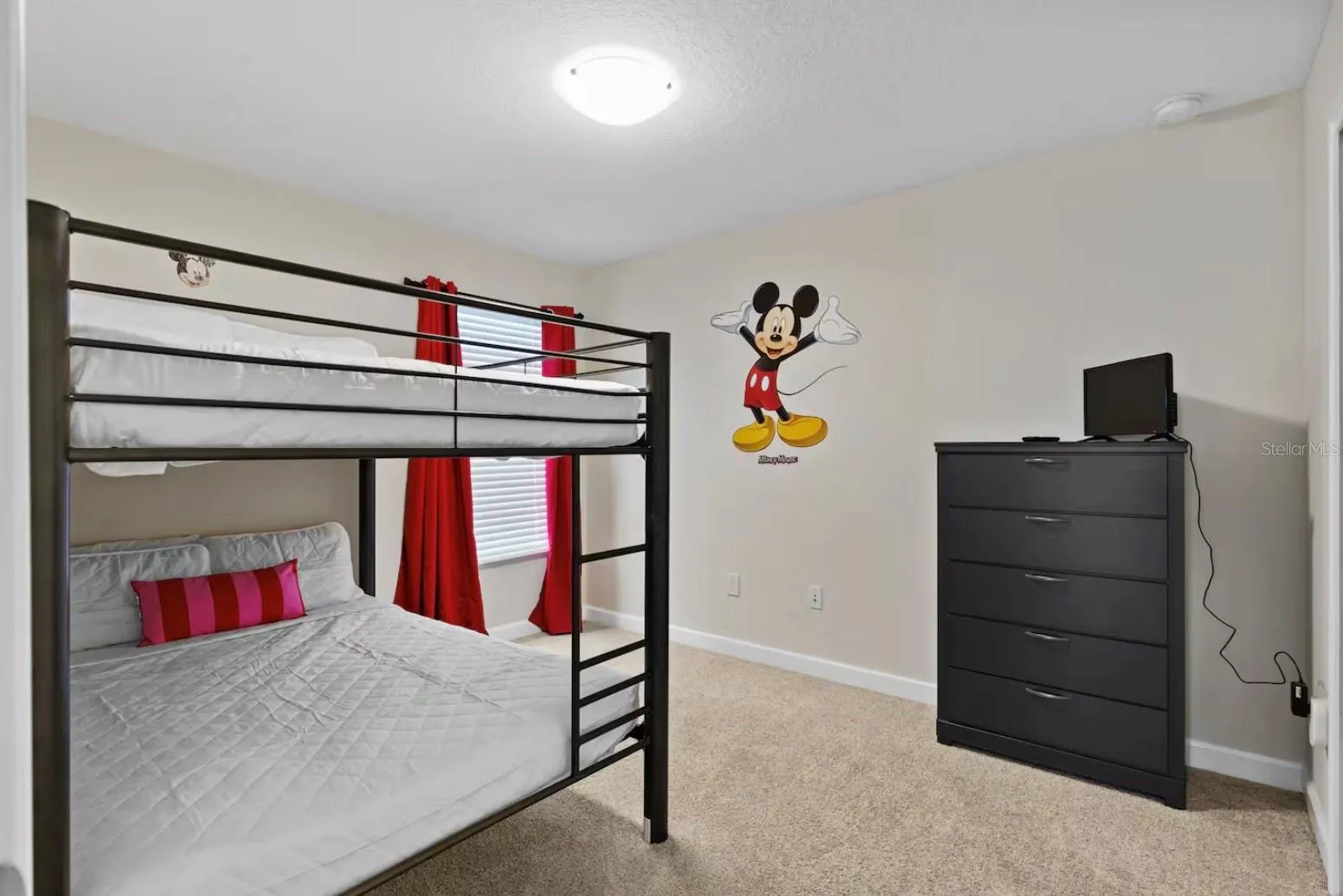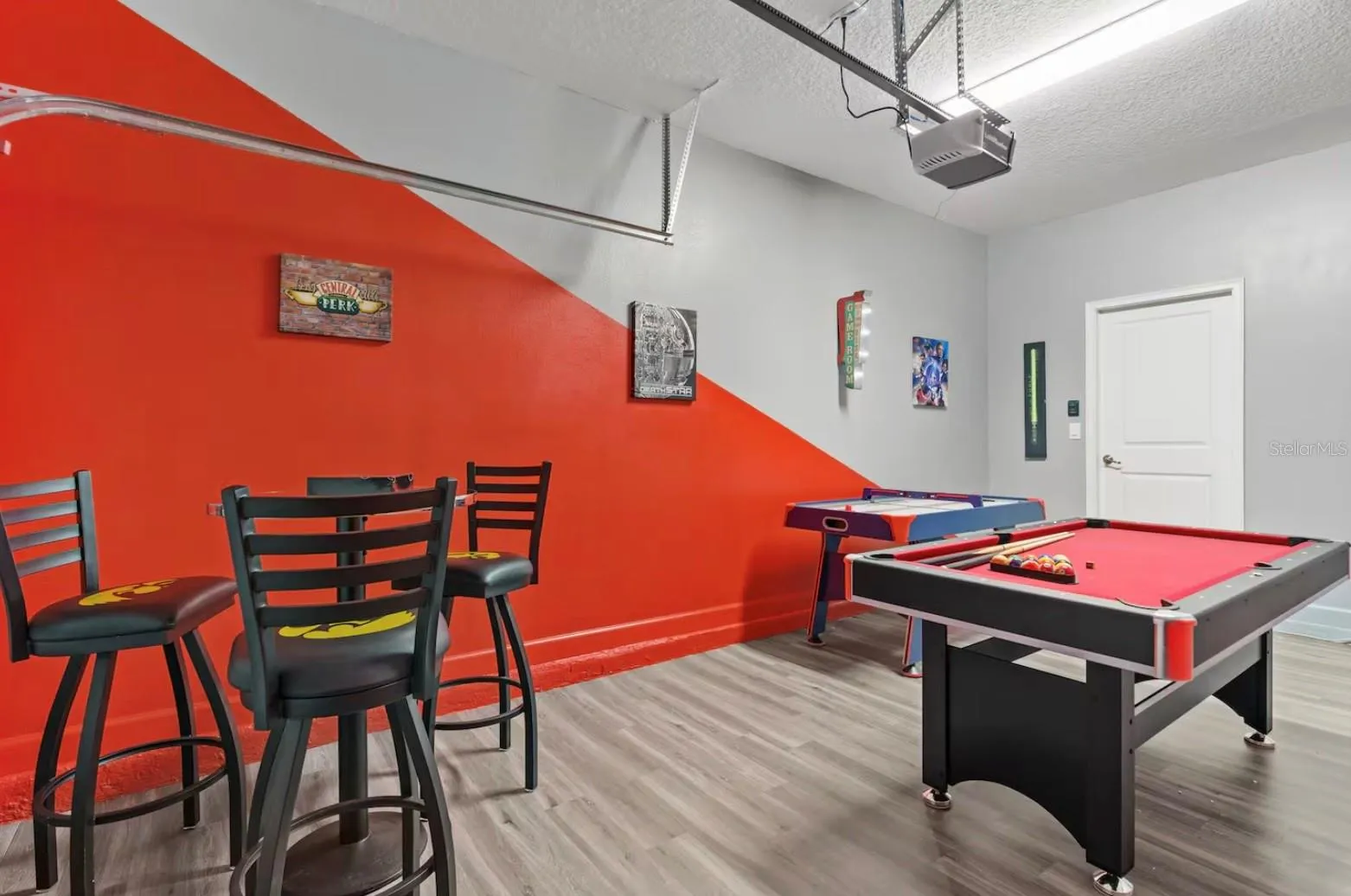 **GREAT INVESTMENT OPPORTUNITY!** This Single family, CORNER LOT, located in the gated resort community of Storey Lake, offers a luxurious lifestyle with a FULLY FURNISHED interior and peaceful surroundings. This NORTH FACING home allows TONS of natural light to pour through all day long! The exceptional turnkey residence boasts several contemporary UPGRADES, including a new washing machine installed in 2024, a new AC unit and pool pump both installed in 2023, and a newly designed entertainment area in the garage. Inside, the living room features a new sofa and fresh window coverings throughout. The open-concept kitchen includes granite countertops and stainless steel appliances, and it overlooks the family room with sliding glass doors, high ceilings, and a designated eating space. This residence has a primary bedroom conveniently located both downstairs and upstairs. Two of the bedrooms are equipped with double beds and en suite bathrooms, while the upstairs gathering space is perfect for playing games and entertaining. The one-car garage has been efficiently converted into a gameroom, featuring an air hockey table, a pool table, and ample seating. This property offers fantastic potential for generating substantial income through short-term rentals; it is currently an active rental generating THOUSANDS of dollars in revenue each year. With six bedrooms, five bathrooms, a spacious bonus room upstairs, and the corner-lot location, this home is designed for comfort and convenience. The private pool and jacuzzi, along with a large patio, create an ideal setting for relaxation or entertaining guests. Within the Storey Lake community, residents can enjoy a variety of amenities, including a lazy river, community pool, recreational facility, water slides, volleyball courts, and a clubhouse. The location is conveniently close to popular theme parks like Disney, Universal, and Animal Kingdom, which are just a 20-minute drive away. Whether you prefer to take advantage of the luxurious amenities within the community or explore nearby attractions, this property is the perfect second home or short-term rental. Come check out this gorgeous home today!