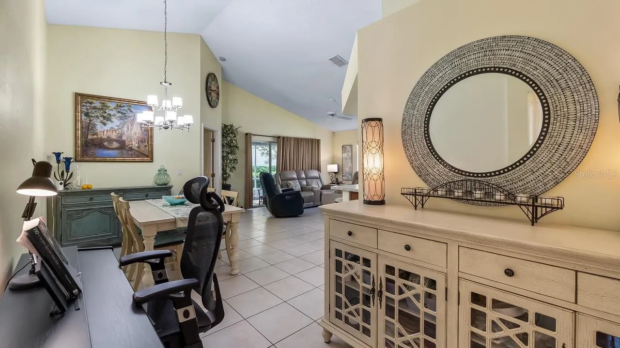 WOW…….Welcome to 3773 Eversholt in the beautiful guard gated resort style community of Kings Ridge a 55+ community. You will be greeted as you walk through the front door with an open airy floor plan that is designed for entertaining family and friends. This Canterbury Model has been redesigned so that the dining room is larger and is made for large family/friends gathering together. The eat in Kitchen is large with plenty of cabinets, pantry, and counter space for the upcoming gourmet chef to store and prepare delicious meals. The large bright and airy primary bedroom boast a walk-in closet with plenty of shelving. The 2nd bedroom is spacious and is strategically placed in the front of the home next to the 2nd bathroom. The office/den or study also next to the 2nd bathroom is currently being used as a 3rd bedroom. Relax on the covered screened in lanai while enjoying the cool breeze and conversations. If you are looking for A HOME THAT IS TILED THROUGHOUT, LIGHT INTERIOR PAINT, OPEN FLOOR PLAN, EAT IN KITCHEN AND SEPARATE DINING ROOM, A SCREENED ROOM, NEWER HOT WATER HEATER 2025, DISPOSAL REPLACED 2 YEARS AGO, PARTIAL UPDATED BATHROOM AND KITCHEN, ROOF 2017, AND A GREAT PRICE 3773 EVERSHOLT is the home for you! You can also purchase the furniture separately. Also there is a red car that can be purchased separately. Kings Ridge enhances easy shopping by driving your golf cart to Publix, Restaurants, Salons, Pet Supply, Groomer, Liquor Store, Ice Cream, McDonalds, Banking, UPS, Gas Station, etc. Discover the epitome of comfortable active lifestyle living in Kings Ridge. Kings Ridge boasts 2 Golf Courses, 3 Pools, Hot/Cold Tubs, Dry Saunas, Steam Rooms, 2 Gyms, Tennis Courts, Pickleball Courts, Bocca Ball & Shuffleboard, and Basketball Courts. The Multi-Million Dollar Club House, is the heart of activities with Entertainment, Dances, Social Events, Games, Travel Clubs, etc. The monthly maintenance fees include lawn care, home phone, maintenance and trimming of shrubs, irrigation and replacement of sprinkler heads, basic cable TV and internet, and road maintenance, and exterior painting every seven years. WELCOME TO A WELCOMING HAVEN CALLED HOME!