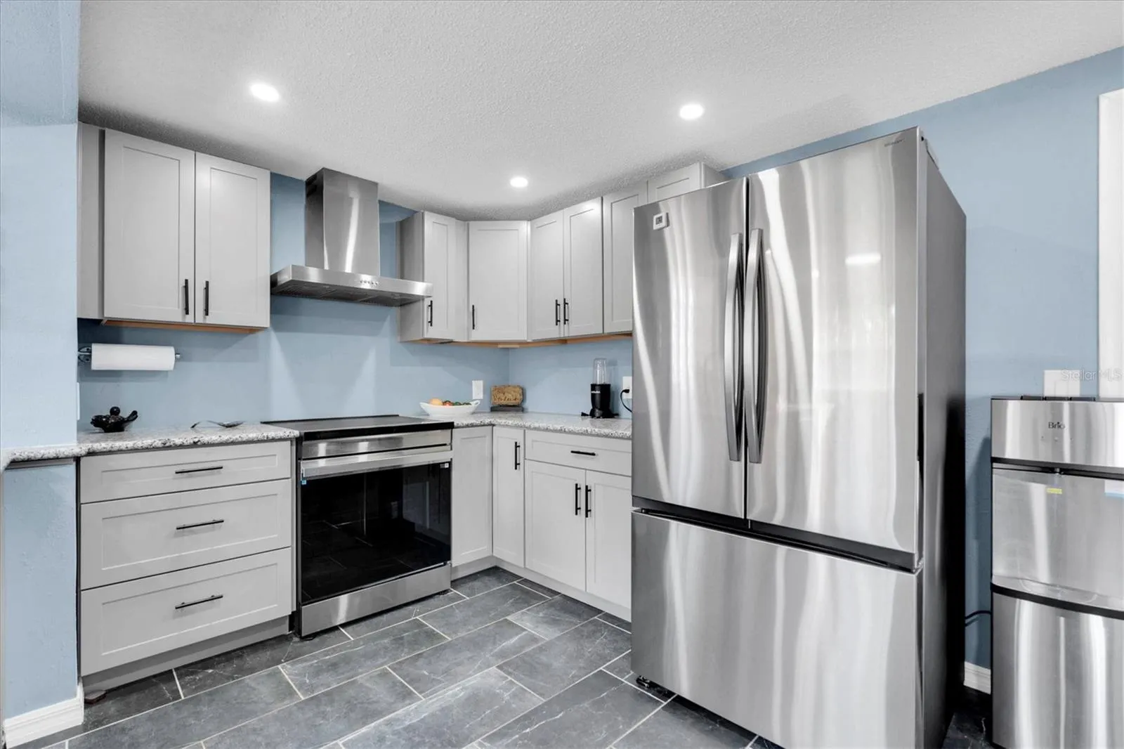Welcome to this beautifully updated 3-bedroom, 2-bath home in the waterfront community of Sea Pines in Hudson, FL. Everything has been recently refreshed—new tile floors throughout, new drywall and interior paint, new doors, updated electrical switches, and a fully renovated kitchen featuring shaker cabinets, granite countertops, stainless steel appliances, and a sleek stainless range hood. The home offers a comfortable, flowing layout with a bright living area that connects to the dining space, highlighted by a charming brick wood-burning fireplace. The dining room opens directly to the modernized kitchen, and a separate family room provides additional space to relax. Enjoy outdoor living on the back patio with a built-in grill and a spacious, fully fenced yard—complete with an electric gate, ideal for storing a boat or camper. The community boat ramp is just steps away, offering direct access to the Gulf for endless boating and fishing adventures. The nicely sized bedrooms include a unique setup: the attached garage is partially converted, with one side used for storage and the other transformed into a third bedroom featuring its own bathroom, sink, and refrigerator, plus a private side entrance—a great option for guests or potential rental income. Major systems are in excellent condition with a (2020)roof, (2017) A/C, and (2022) water heater. A large extended driveway provides ample parking. Move-in ready, modern, and full of charm—this Sea Pines home is the perfect blend of comfort and coastal convenience.