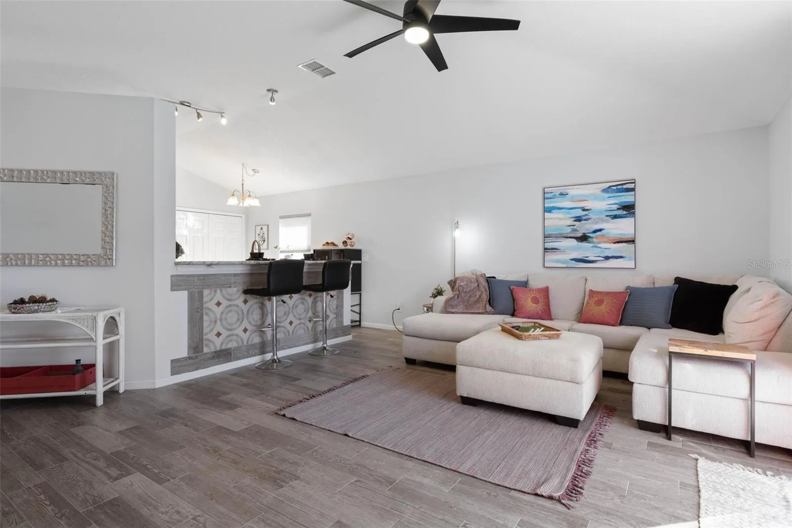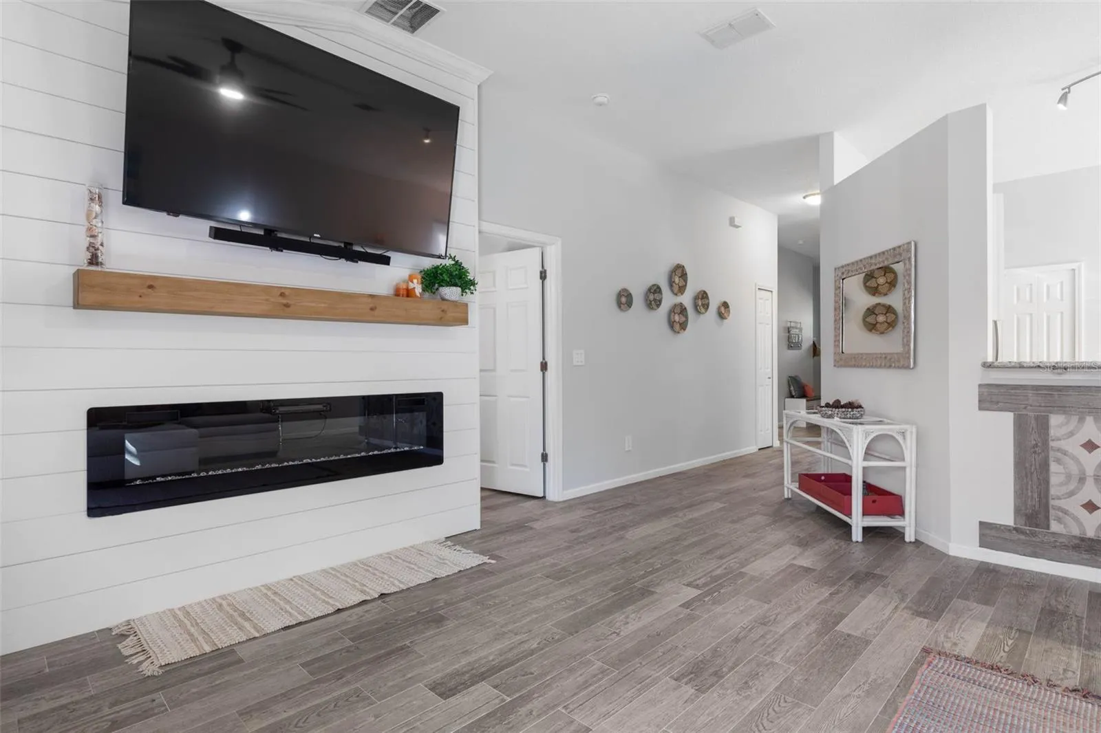 Step inside 18 Zebulon Place, and you’ll immediately feel a sense of serenity and warmth. This beautifully designed 3-bedroom, 2-bathroom home offers a perfect blend of style and comfort. The open-concept living area is bathed in natural light, creating a peaceful ambiance throughout. The kitchen is a standout feature, with sleek stainless steel appliances, including a new refrigerator, a unique movable island on wheels that allows you to reposition it wherever you need, and a large pantry offering ample storage. The family room and bedrooms are generously sized, giving the home a spacious feel that exceeds its actual footprint. The elegant primary suite features an en-suite bath with a new vanity and faucet, along with a walk-in closet. Both bathrooms have been updated with new toilets, adding to the home’s refreshed appeal. Volume ceilings add to the sense of openness, and porcelain wood-look tile runs throughout the home, enhancing the warm, cohesive feel. A new custom shiplap accent wall with an electric LED fireplace adds an extra touch of charm and comfort. New ceiling fans and light fixtures throughout the home further elevate its modern appeal, and the entire home has been freshly painted, providing a clean and updated look.