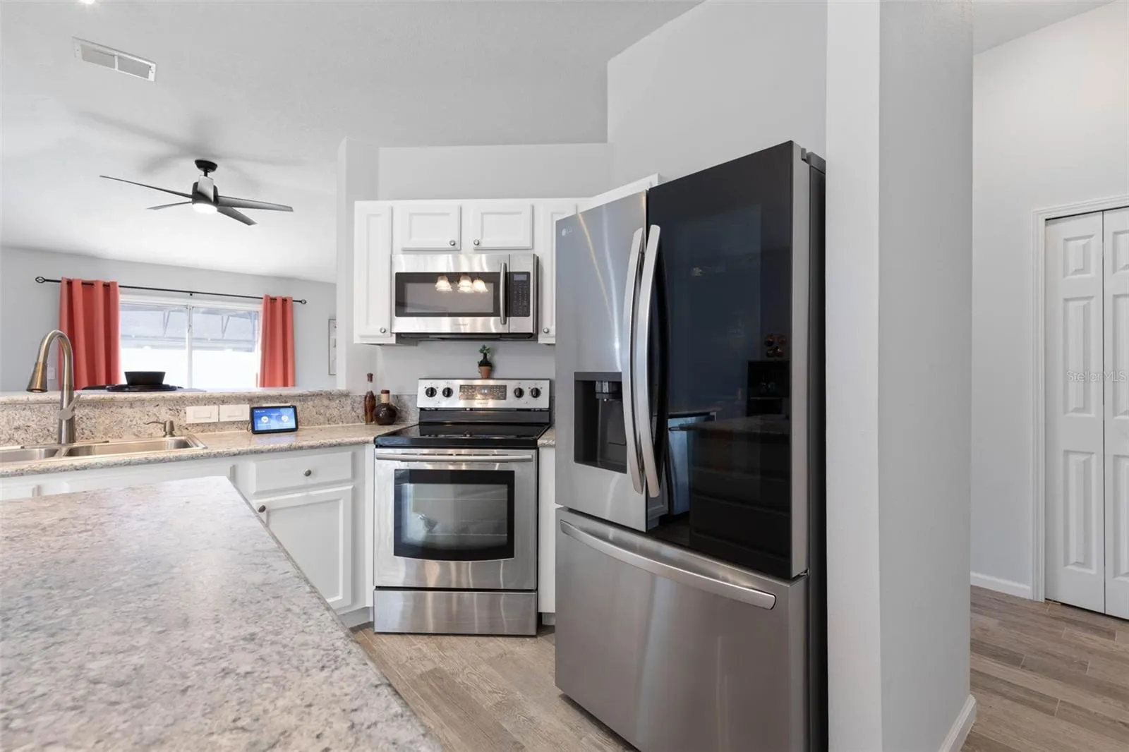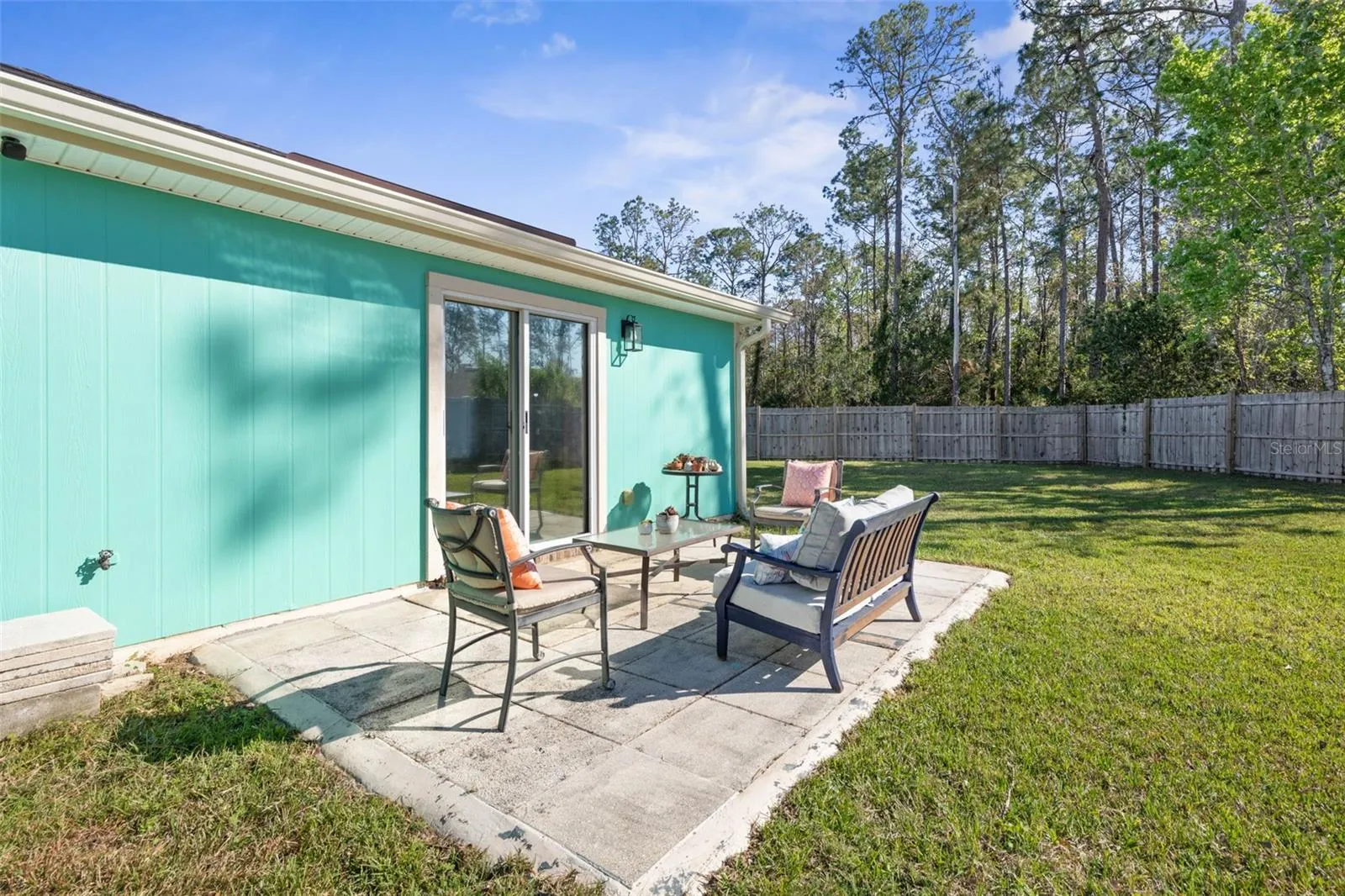 Outside, the spacious, fully fenced backyard provides a peaceful retreat with ample room for pets, gardening, or enjoying the outdoors. The oversized pie-shaped lot, located at the end of a quiet cul-de-sac, offers plenty of privacy and space for outdoor living. This home also features a new front door with a stylish glass insert, installed attic stairs for easy access to extra storage, a water softener hookup, and a garage screen door that allows fresh air to flow while keeping bugs out. The home’s brand-new A/C is equipped with an infrared light, which helps improve indoor air quality by reducing bacteria, mold, and allergens , brand new water heater, a newer roof from 2019, and a 2-car garage. With its proximity to local parks, shopping, dining, and Flagler Beach, plus a quiet street with minimal traffic, it offers the perfect balance of peace and convenience.
