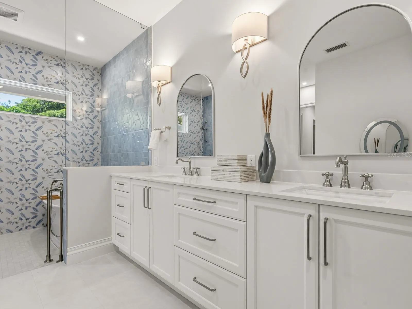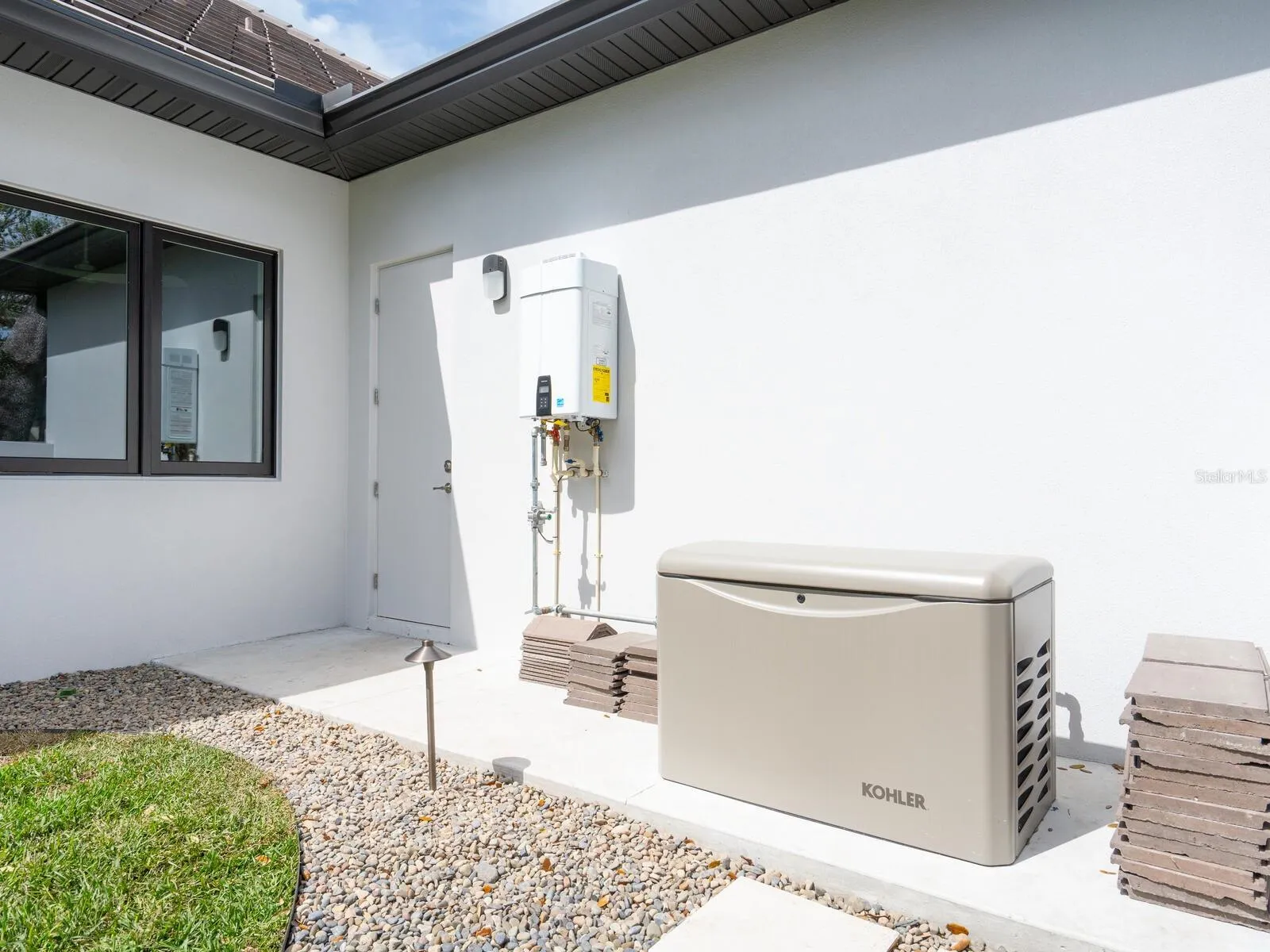 Advanced technology includes a whole-house alarm system with seven-camera surveillance, a Sonos multiple-zone audio system, and motorized shades. Dual Navien tankless water heaters, equipped with a circulation loop and open-cell foam insulation, ensure optimal energy efficiency. Two Trane variable-speed HVAC systems provide zoned climate control for enhanced comfort. Built for resilience and convenience, the home includes Anderson windows and doors, a 26-kilowatt Kohler generator, and a 1,000-gallon propane tank to support the entire house. The 400-amp electrical system, featuring two 200-amp panels, ensures reliable performance. Additional upgrades include custom-built-ins, wireless internet access points, and energy-efficient features such as advanced insulation and zoned HVAC. The split three-plus-car garages and a circular paver driveway provide ample space for vehicles and storage. Ideally located in the private community of Kentwood Estates, this home offers privacy and tranquility while being minutes from Siesta Key’s renowned beaches and downtown Sarasota’s vibrant entertainment, cultural attractions, shopping, and fine dining. This exceptional property presents a rare opportunity to experience unparalleled luxury and thoughtful design in one of Sarasota’s sought-after neighborhoods. Schedule your private showing today to envision your future in this extraordinary residence.