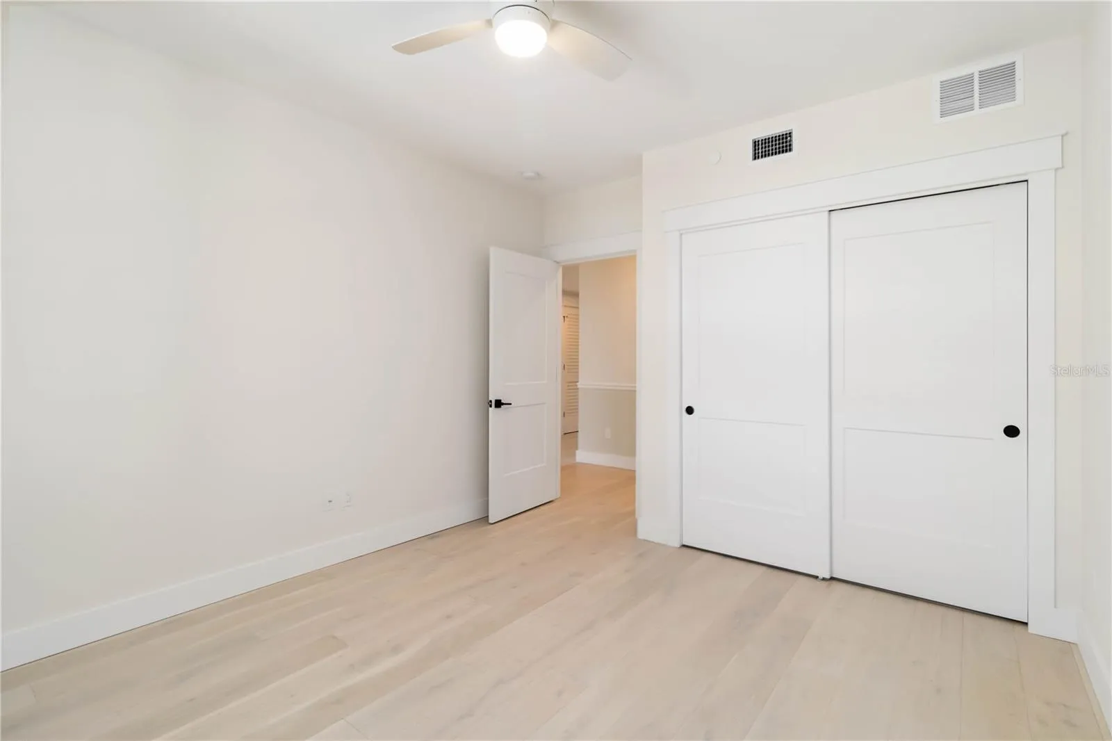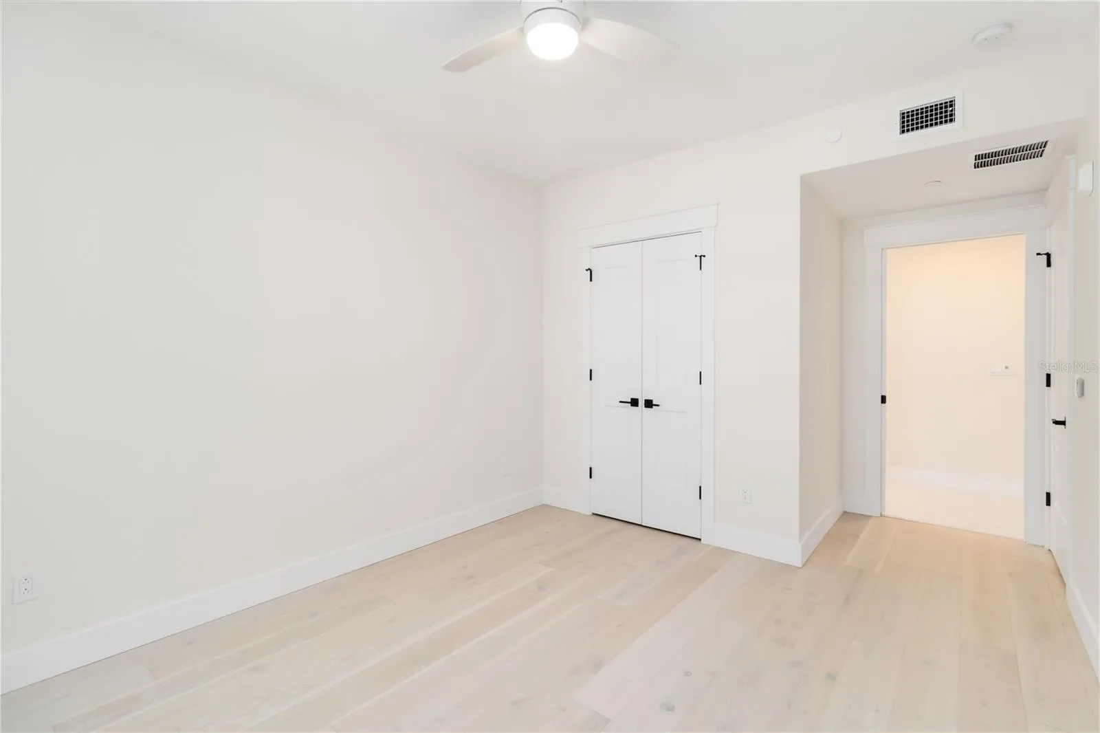 The allure begins in the heart of the home – a sleek kitchen adorned with top-of-the-line LG appliances, complemented by solid wood cabinetry and exquisite quartz countertops that beckon culinary adventures. As natural light dances through expansive windows, partial views of tranquil Little Sarasota Bay create a serene backdrop to everyday living.