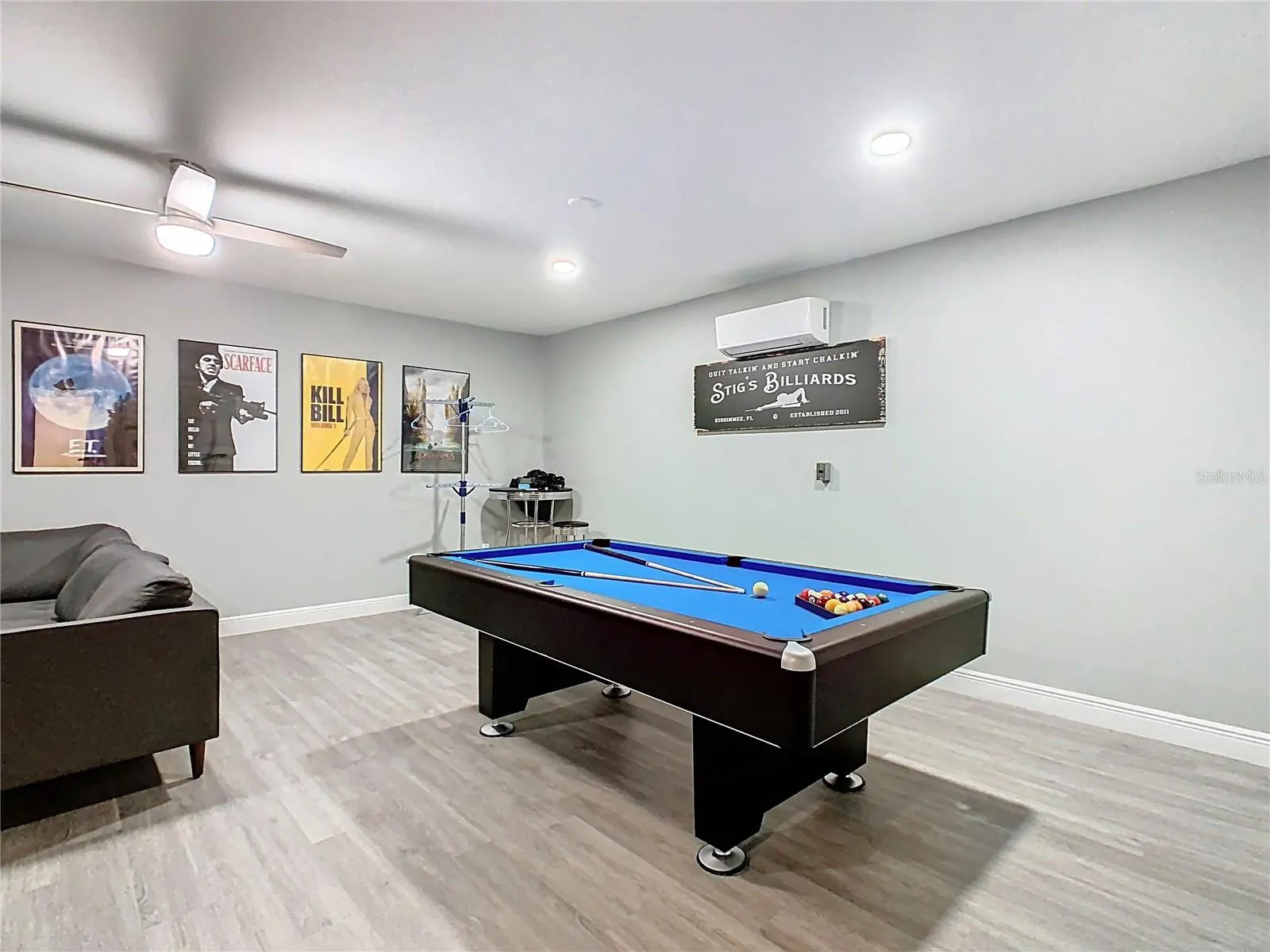 LAKEFRONT HOME! New Roof 2023. Welcome to your ultimate vacation retreat just 5 miles from world-famous Walt Disney World. This stunning 5-bedroom, 5-bath pool and spa home offers exceptional privacy and breathtaking views overlooking Reedy Lake. Featuring a renovated garage converted into a fully equipped game room, this home is thoughtfully designed for both relaxation and unforgettable guest experiences. Inside, the home offers two spacious primary suites, each with its own private bathroom—ideal for large families or groups traveling together. With tasteful upgrades throughout and no work needed, this property is truly move-in ready and perfectly suited for immediate personal use or short-term rental operations. Recent updates include an updated bathroom, a full garage conversion, refreshed interior design, new paint, and mostly new furniture throughout the home, along with new patio and pool furniture completed in 2022. In 2023, additional improvements included the creation of a new room, exterior repainting, a garage entertainment upgrade featuring a TV, couches, a pool table, and a dedicated garage AC system. The pool was also fully resurfaced in 2023. Newer pool heater and one AC is replaced recently. Located in the highly desirable, guard-gated community of Windsor Hills, you’ll enjoy world-class resort amenities just minutes from Central Florida’s top attractions. Windsor Hills offers a lagoon-style pool, a full water park with slides, fitness center, movie theater, arcade, bar, convenience store, playgrounds, sports courts, and more.