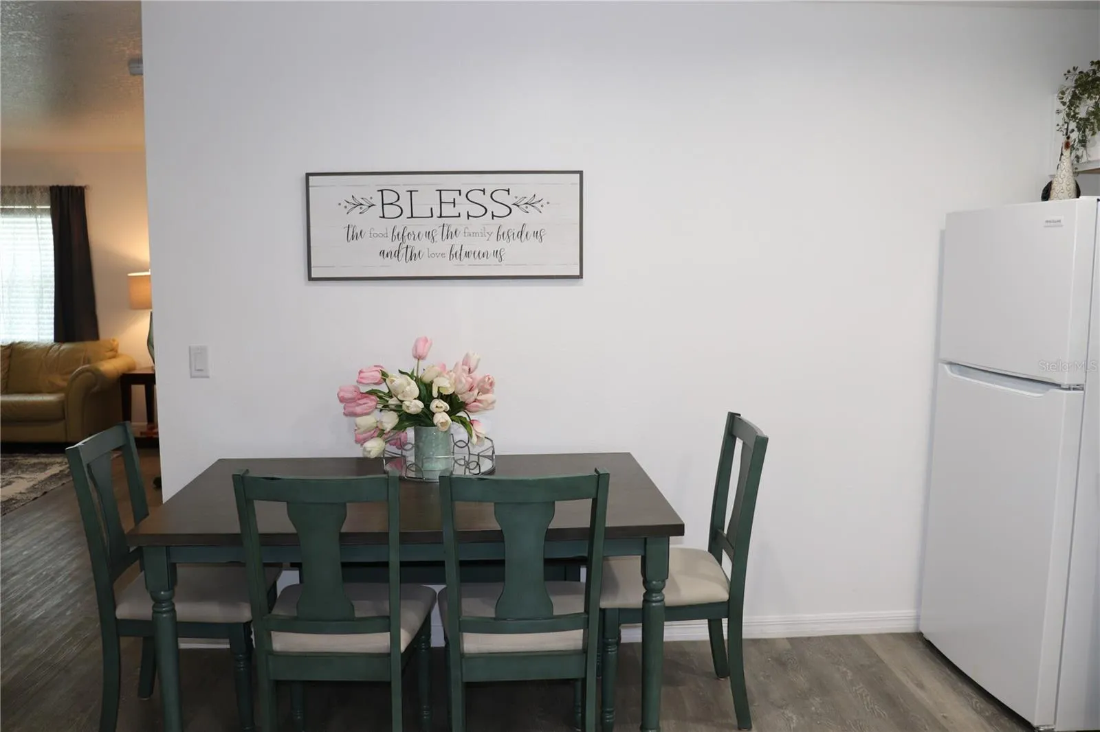 This 4 bedroom home offers a lovely family-friendly floorplan, and is one of the lowest priced new home construction homes in Citrus Springs. Plus the seller is offering up to $7,500. in closing costs! Don’t miss out on this affordable home, fully equipped with all appliances and also window treatments. This well built home showcases four nice-sized bedrooms, two full baths, and a warm, cozy floor plan. The kitchen offers wood cabinetry, hard surface countertops, Frigidaire appliances, including the refrigerator. Throughout the home, you will love the ease of maintenance and the beautiful look of the luxury vinyl plank flooring. No carpet!! The inside laundry room is bright and cheerful, with a large window to bring in natural light and includes an Amana washer and dryer. It is truly move-in ready. For further peace of mind, the heat pump is a Trane, and the roof has 25-year shingles. You’ll love the ease of maintenance, as well as the exterior siding. No painting! This home is situated on a large and spacious corner homesite, adding to the fantastic ambiance of this home and the fabulous price. There are no HOA fees, and Citrus Springs has a community center, tennis courts, and recreational activities for the outdoor enthusiasts. Citrus Springs is also located near freshwater fishing, biking trails, and a short distance away to Crystal River for saltwater fishing or swimming with the manatees. Don’t miss out on this very affordable home, all appliances, and no HOA fees! Some photos are included of the furnished model of the same floor plan, so you can see how well this home lives. This home showcases Florida lifestyle living at a truly affordable price.