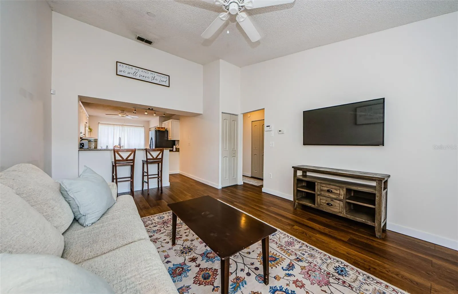 Move -In Ready Condo in Millpond Trace Community! This beautifully updated 2-bedroom, 1-bath condo features soaring ceilings and luxury vinyl flooring throughout, offering both style and durability—perfect for everyday living and pets. The open-concept kitchen overlooks the living space and showcases granite countertops, bar seating, a farmhouse sink, extended pantry, and generous cabinet storage. The home also offers large closets, an inside laundry area, and an updated interior with neutral paint tones and crisp new baseboards throughout.