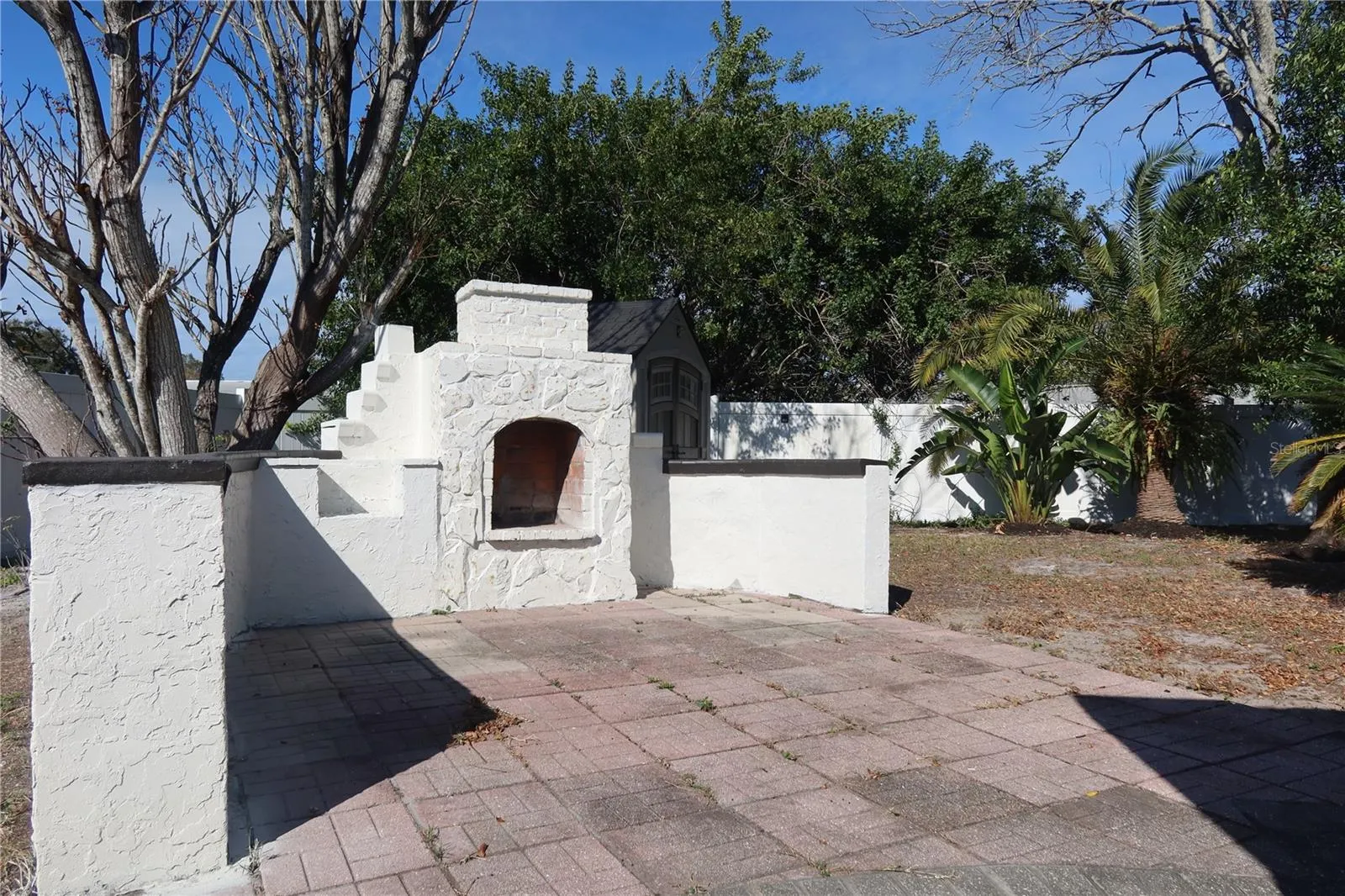 Step outside to an exceptionally large backyard, perfect for gatherings and outdoor enjoyment, complete with a fixed outdoor fireplace and a large storage shed.