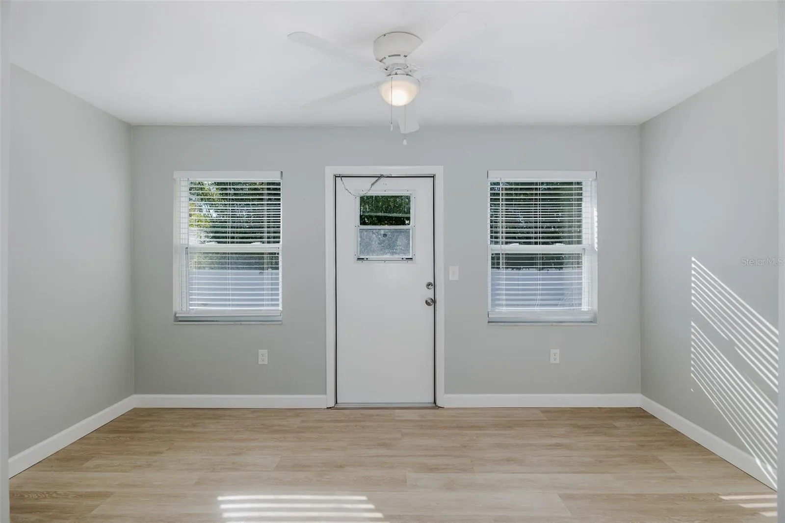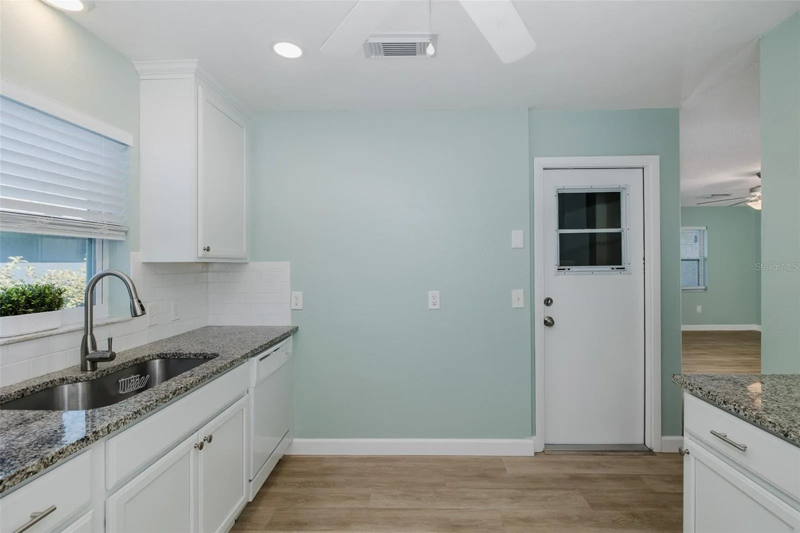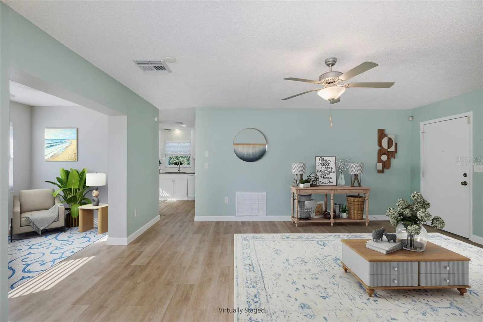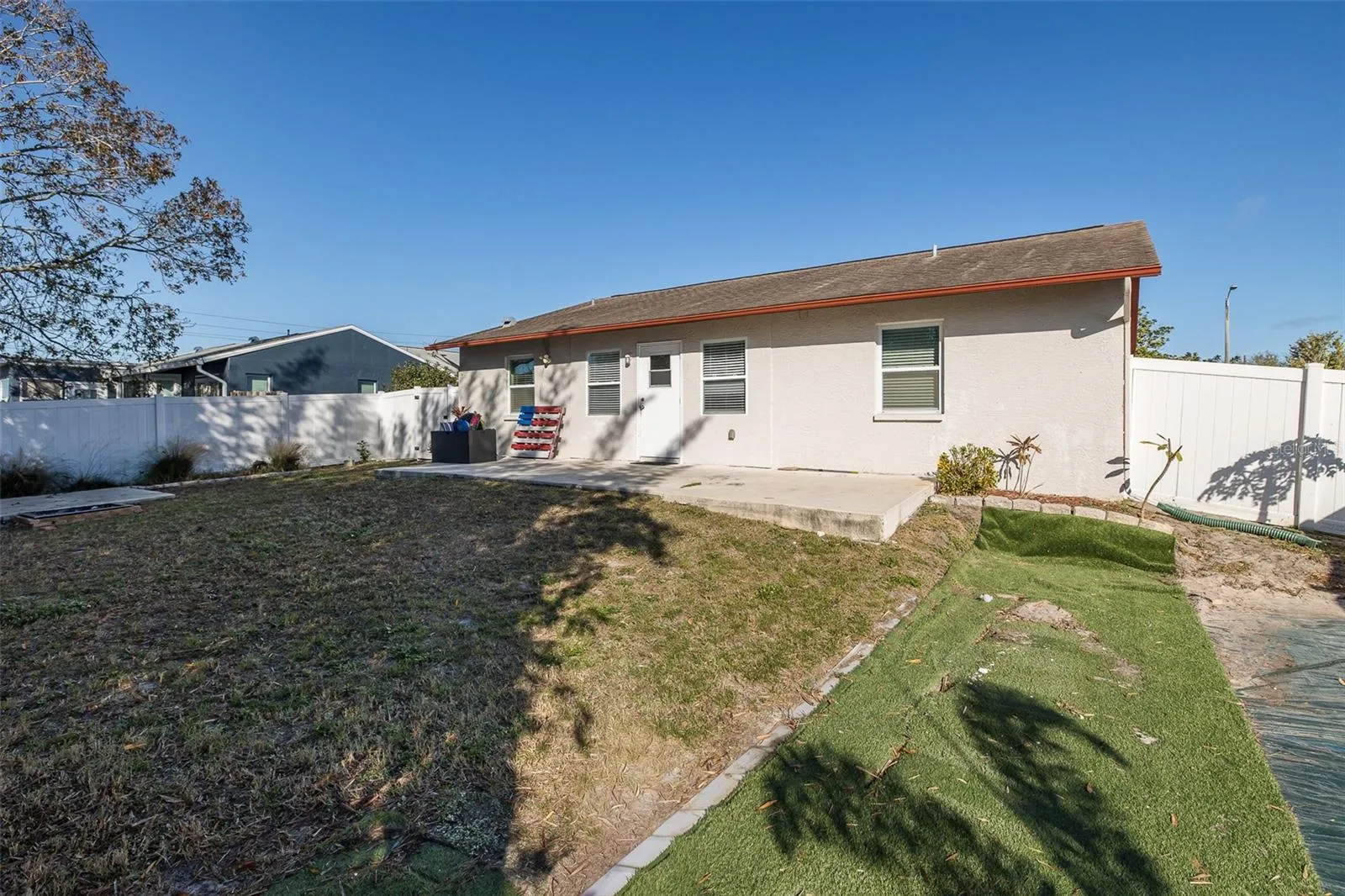 One or more photo(s) has been virtually staged. Welcome to this updated and move-in-ready 2-bedroom, 1-bath home with a 1-car garage. Offering a functional layout and modern finishes throughout. The home sits slightly elevated, providing added peace of mind and enhanced curb appeal. Features a screened-in front porch—perfect for enjoying morning coffee or evening breezes. The bright, open living room features luxury vinyl plank flooring, fresh neutral paint, and ceiling fans, creating a comfortable and inviting space. The updated kitchen includes white cabinetry, granite countertops, tile backsplash, and a complete appliance package, ideal for everyday living or entertaining. Both bedrooms are generously sized with ample natural light, and the renovated bathroom showcases modern tilework, a tub/shower combination, and an updated vanity. A bonus flex space offers the perfect opportunity for a home office, hobby room, or additional seating area. Enjoy outdoor living in the fully fenced backyard, complete with a concrete patio—ideal for grilling, relaxing, or entertaining. Additional highlights include an attached garage with laundry access! Short drive to Fred Howard Beach, Tampa airport, shopping, dining, schools, and major roadways, this home offers comfort, functionality, and value.