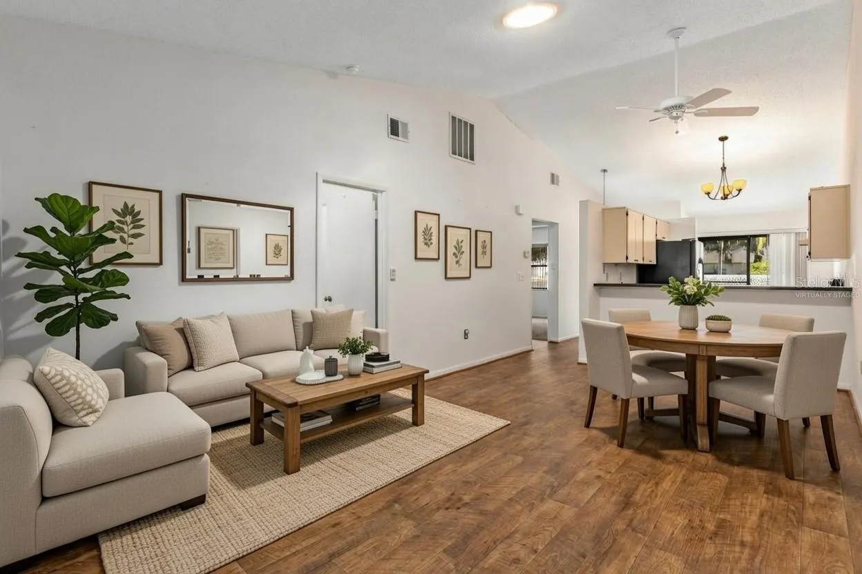 One or more photo(s) has been virtually staged. Welcome to this well-maintained and affordable home nestled in the desirable, deed-restricted community of The Landings at Inverness—just a short walk to historic downtown Inverness and the Withlacoochee Trail. This inviting residence offers the perfect blend of comfort, convenience, and low-maintenance Florida living. Inside, you’ll find a spacious living and dining room combo enhanced by a skylight and sliding glass doors that open to both the front and back porches, filling the home with natural light. The kitchen features newer sleek countertops, newer appliances, a large sink, and a separate breakfast nook—ideal for everyday living. Rough-hewn style laminate flooring adds warmth and durability throughout the common areas. The private primary suite includes an en suite bath with dual sinks and a large walk-in closet, while the second bedroom and bath provide flexibility for guests or a home office. Additional highlights include a Florida room, a screened-in back porch, washer and dryer included, and a fenced-in front patio for added privacy. Enjoy peaceful living with no rear neighbors and a beautiful natural Florida view in the backyard. Residents also have access to community boat docks, perfect for outdoor enthusiasts. An excellent opportunity to enjoy an affordable lifestyle in one of Inverness’ most convenient communities!