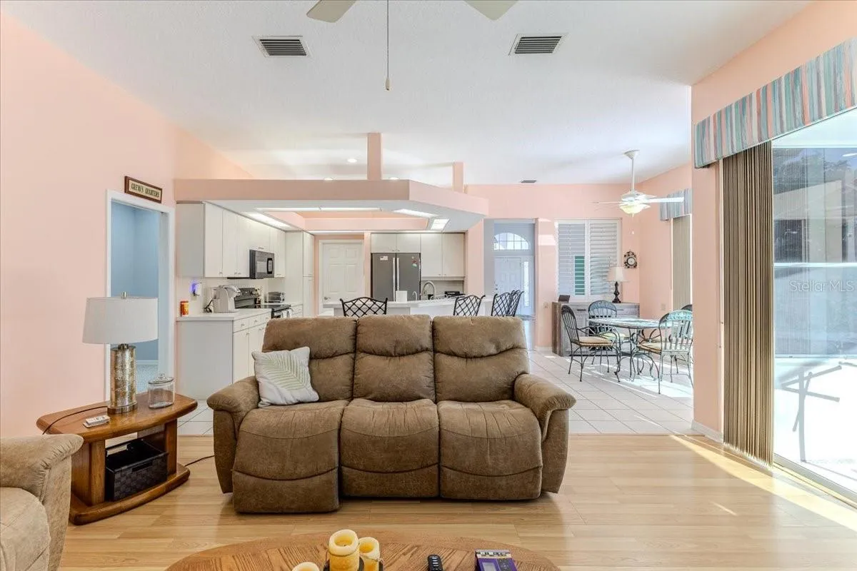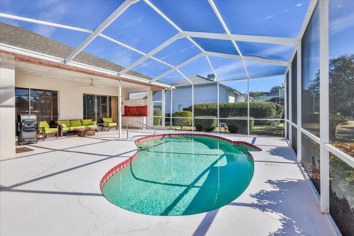Welcome to this beautifully maintained, move-in ready, mostly furnished 2,355-square foot luxury POOL home showcasing a desirable split floor plan with three bedrooms plus a private office/flex space, three bathrooms and a 3-car garage. Ideally positioned along the 3rd fairway of the picturesque Glen Lakes Golf Course. From the moment you enter through the elegant front door, you’re greeted by soaring ceilings and an elegant formal living and dining space designed to impress. A private office/flex room sits just off the entry, offering flexibility for work or leisure or even a 4th bedroom. The expansive owner’s suite provides a peaceful retreat, featuring a generous walk-in closet and a well-appointed ensuite with a garden tub, separate walk-in shower, and private water closet. The heart of the home is the spacious kitchen, which opens seamlessly to the family room highlighted by a propane gas fireplace—perfect for entertaining or relaxed everyday living. A thoughtfully designed guest suite/in-law suite includes its own private bath with walk-in shower that also serves as a convenient pool bath. Two additional bedrooms are generously sized and share a full bathroom. Step outside to the screened lanai, where a custom pool and ample seating space create an inviting setting to unwind while taking in serene golf course views. The oversized three-car garage offers abundant space for vehicles, a golf cart, or a workshop. Notable improvements include an irrigation well, a roof installed in January 2020, hot water heater replaced in December 2012, and HVAC system installed in September 2005. There ae no CDD FEES in the private, guard-gated community of Glen Lakes. Residents who elect an optional social and/or golf membership enjoy an elevated country club lifestyle centered around an award-winning 18-hole golf course. Amenities include an elegant clubhouse with restaurant and 19th hole, banquet and event facilities, a well-appointed fitness center, pickleball and tennis courts, shuffleboard, and a vibrant selection of clubs and social activities. This move-in-ready residence is priced to sell and presents an exceptional opportunity for new owners to personalize while enjoying one of the area’s most sought-after communities. Home is being Sold As-Is With Right to Inspect. Home is NOT in a flood zone.