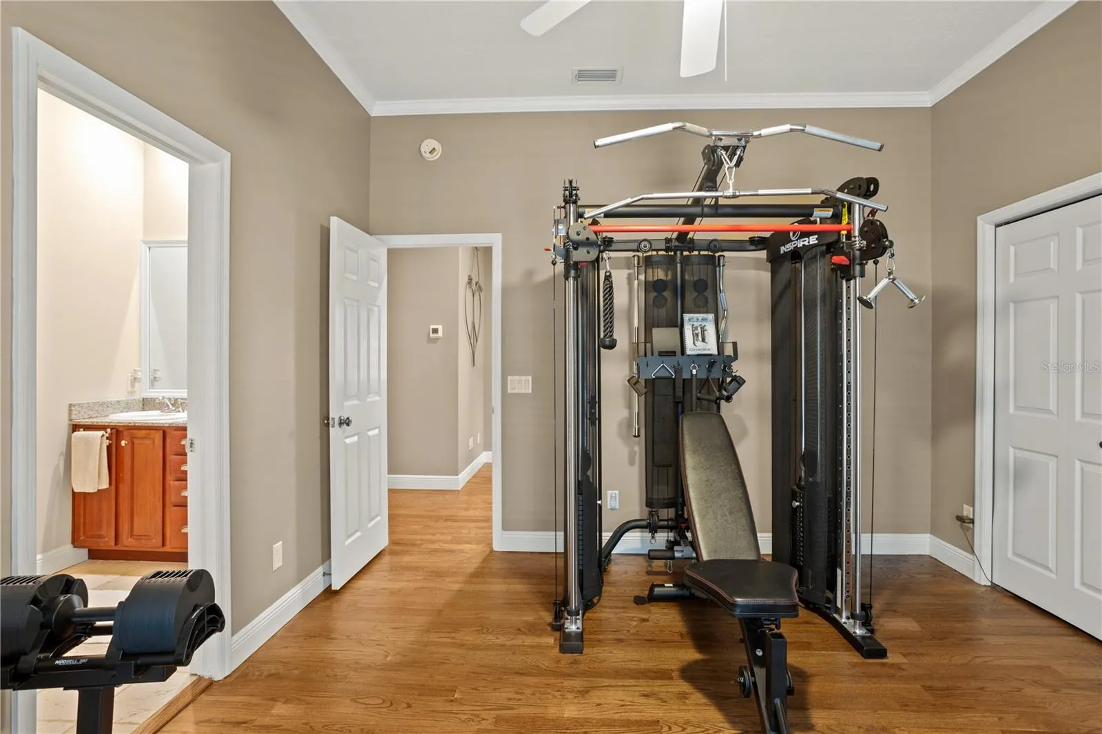 : Ceiling Fans(s), Open Floorplan, PrimaryBedroom Upstairs, High Ceilings, Walk-In Closet(s), Thermostat, Eat-in Kitchen, Solid Wood Cabinets, Crown Molding, Stone Counters, Wet Bar