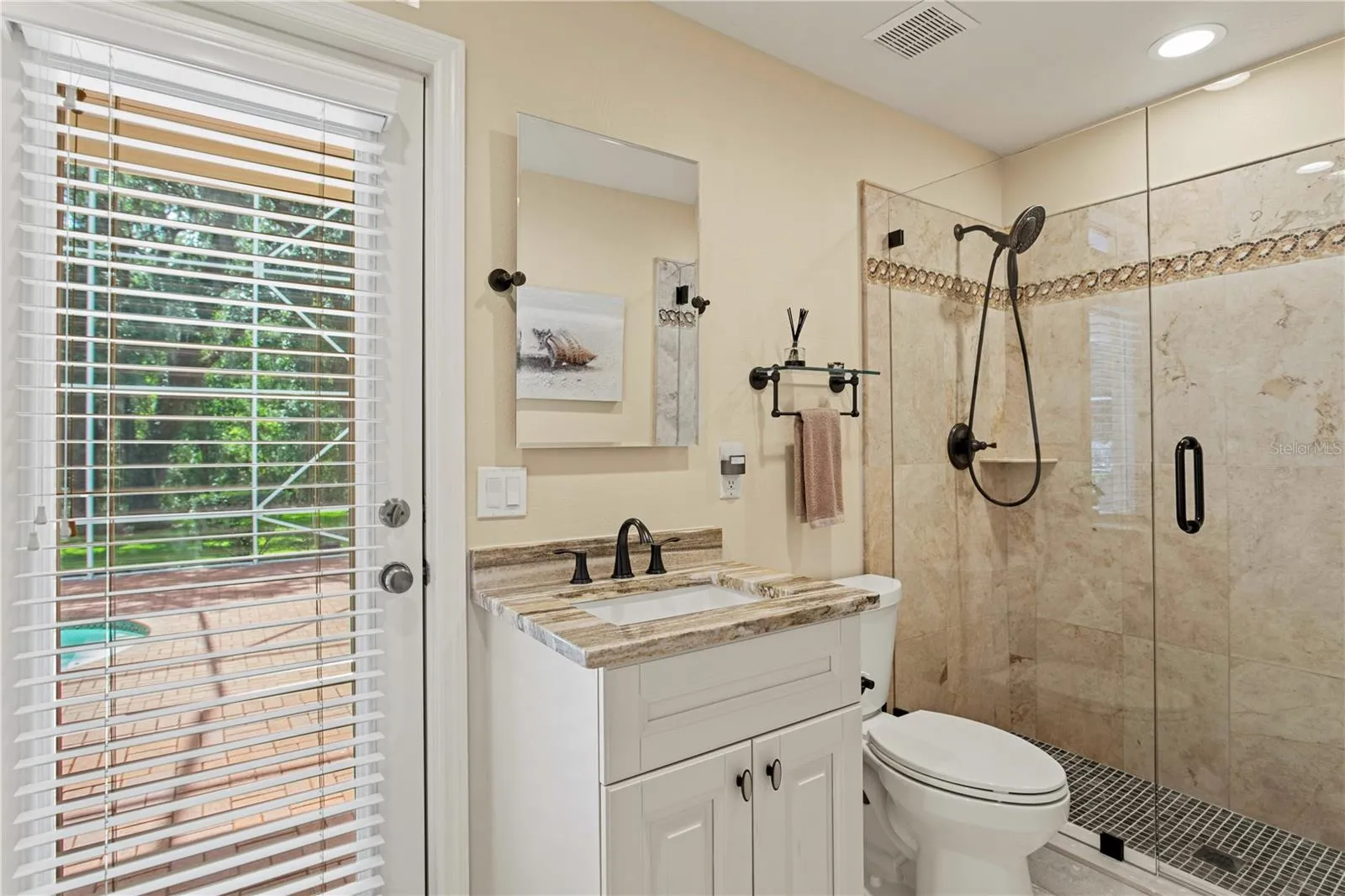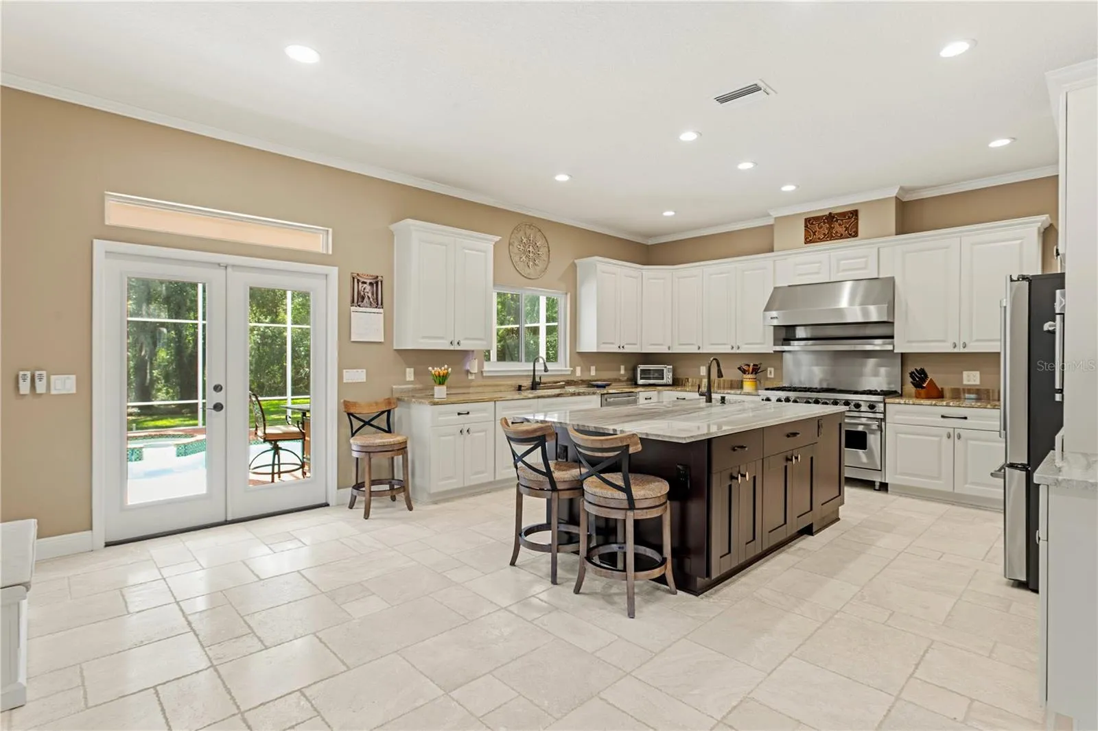 Why settle for a newer home with builder-grade finishes when you can own a timeless estate that feels like new—fully updated, thoughtfully designed, and built to last? Tucked away on a generous corner lot in the exclusive FishHawk Trails Reserve, this beautifully remodeled residence blends classic Southern charm with the comfort and convenience of major modern upgrades. Surrounded by wooded conservation, the home offers rare privacy and picturesque views, creating a tranquil retreat just minutes from top-rated schools, trails, and community amenities. Extensive updates bring peace of mind, including a new roof (2019), new A/C with blue light filtration (2020), both water heaters replaced (2023), and a new pool filter, pump, and salt cell (2021). Even the primary suite features its own dedicated water heater. Inside, rich redwood floors, tumbled travertine, and abundant natural light highlight the home’s inviting character. The heart of the home is a showstopping chef’s kitchen—completely remodeled with creamy 42” wood cabinets, a contrasting espresso island, and stunning Antique Wood quartzite that continues throughout the wet bar and laundry. GE Café appliances, a premium refrigerator and dishwasher, and a professional-grade Viking range with six burners, grill, dual ovens, and commercial-style hood complete the space. The main level offers versatility and comfort with a private office, updated pool bath with marble shower, and a guest or in-law suite with its own separate entrance—perfect for multi-generational living or a home-based business. A stylish wet bar connects the formal living and family rooms, ideal for entertaining. Multiple French doors lead to a double-level screened lanai with glistening pool, elevated spa, and serene outdoor living surrounded by lush greenery and total privacy. Upstairs, the primary suite offers a peaceful escape with French doors that open to a full-length balcony—perfect for sipping coffee and watching deer wander through the backyard. The spa-like en-suite has been completely redesigned with a freestanding soaking tub, a luxurious marble shower, dual vanities, and two large walk-in closets. Three additional bedrooms complete the second level: a Jack-and-Jill suite with shared bath and balcony access, a private en-suite bedroom, and a spacious bonus room ideal for a playroom, media space, or additional office. This exceptional home offers the charm and elegance of an established estate with the convenience of modern living. With no detail overlooked, it’s a rare opportunity to enjoy the character of an older home that lives and feels brand new. Copy and paste this link to tour the home virtually: my.matterport.com/show/?m=FQUhizVcHGq