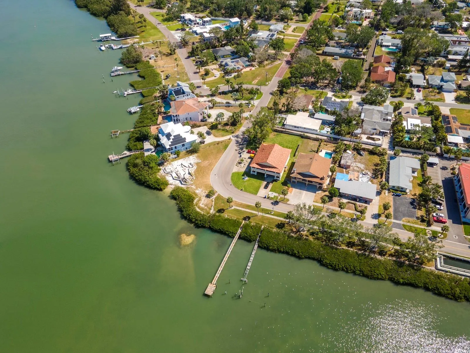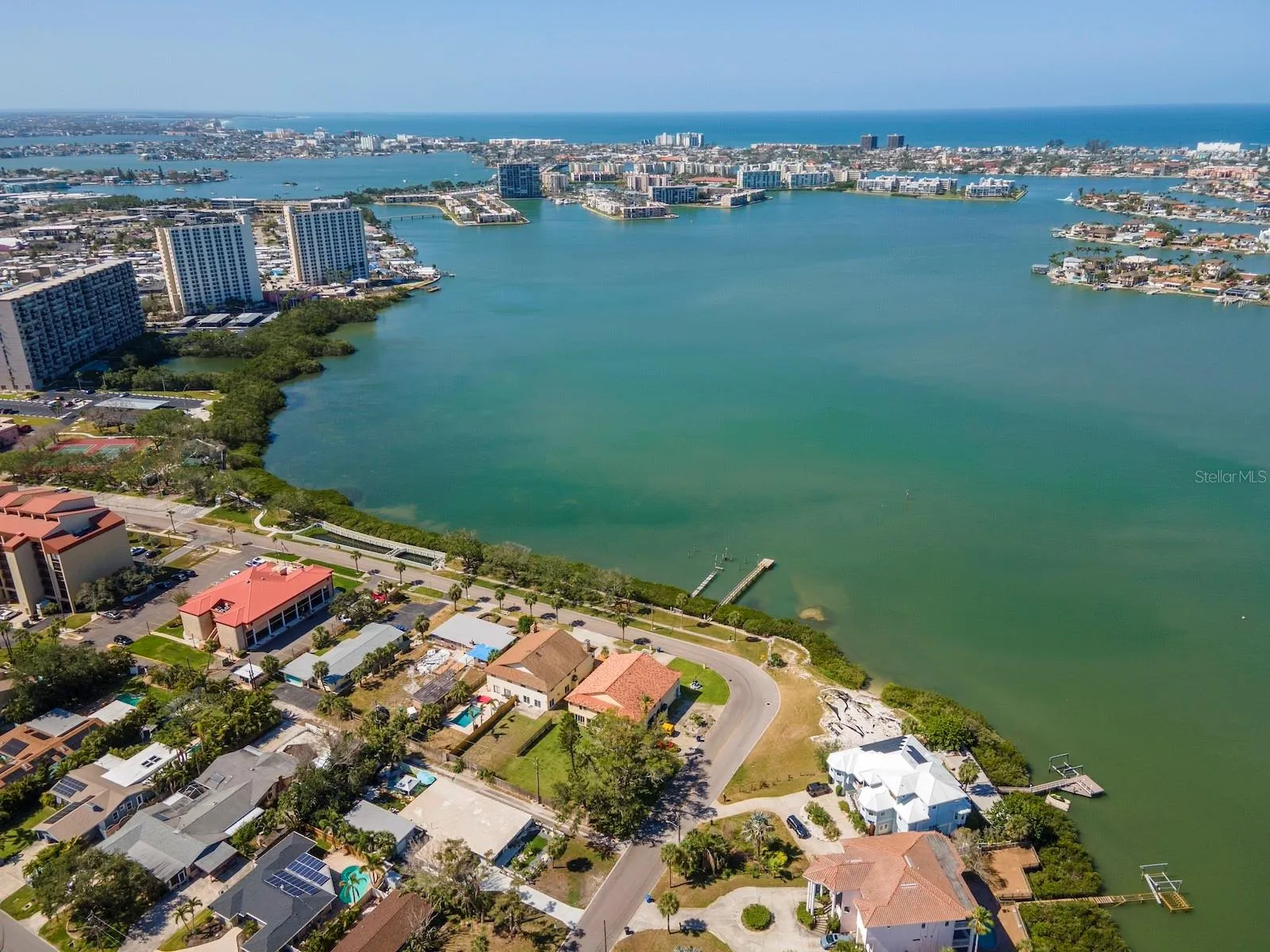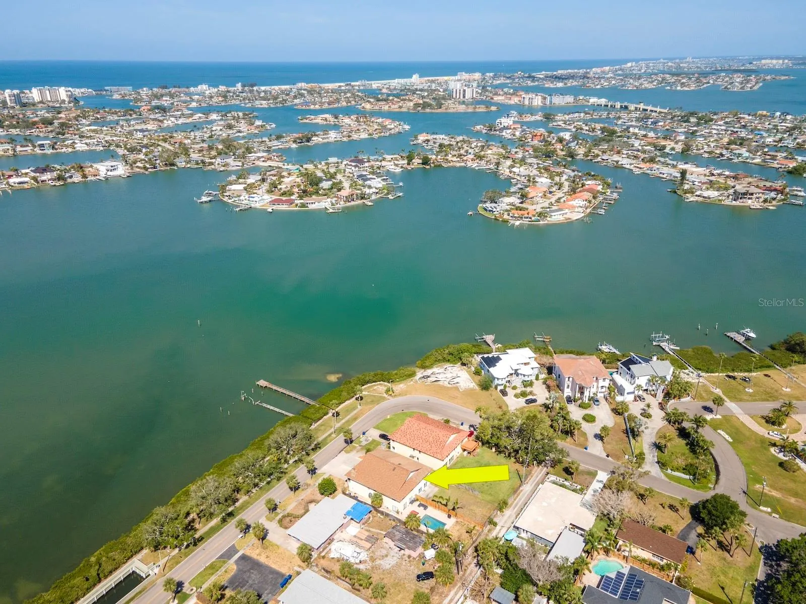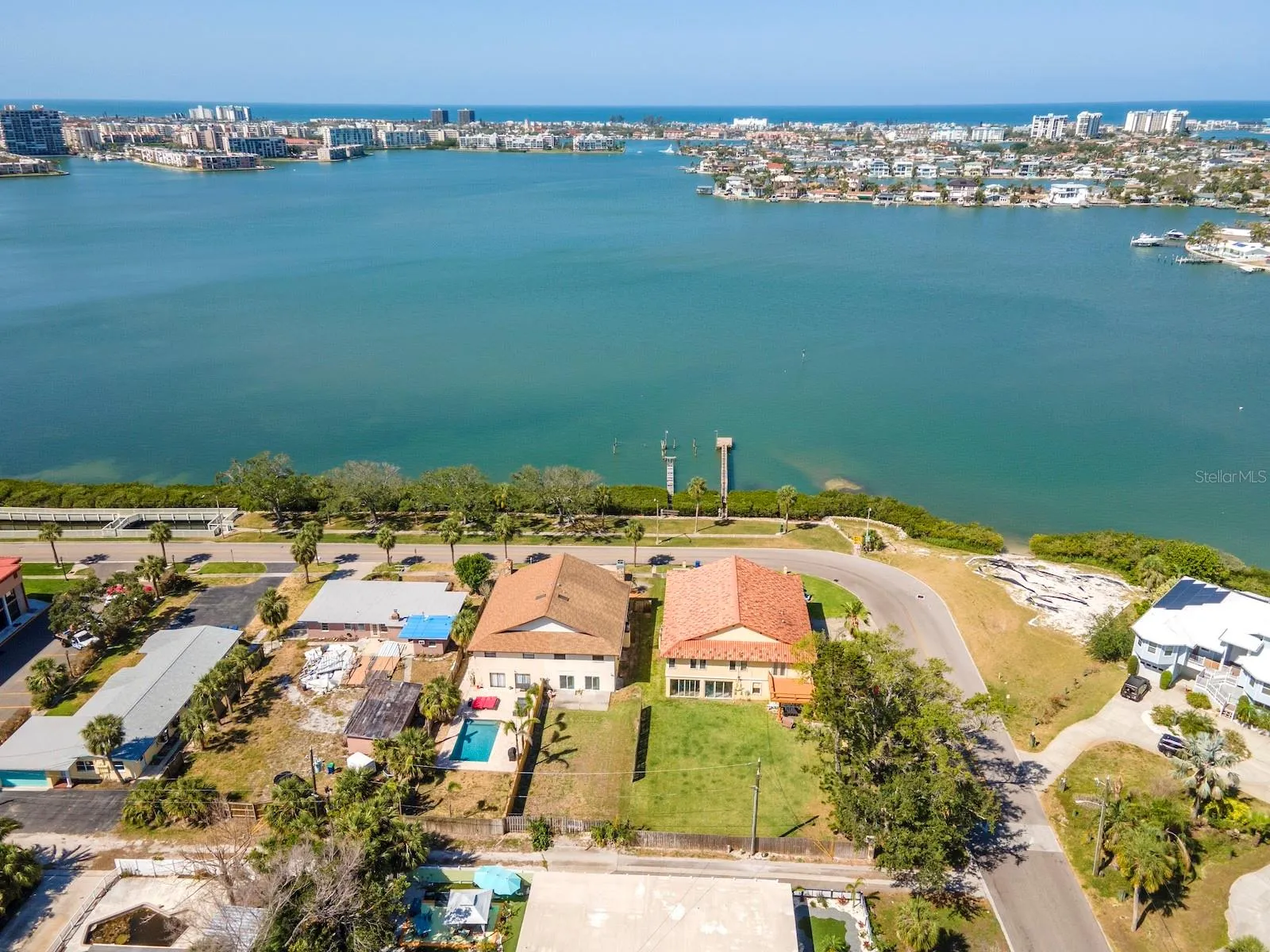 No HOA fees! This unique property has a deeded easement for access to Boca Ciega Bay, where you can Build and Maintain a dock. Seller has an assumable flood insurance policy for under $1150 annually. Enjoy beautiful water views of Boca Ciega Bay from this 3 bedroom, 2 bathroom townhome. Home is listed well below the appraised value determined in April 2025. Instant Equity when you purchase. Great investment property! As you approach the home you see a long balcony, perfect for sipping your morning coffee or a happy hour cocktail with stunning sunsets and Dolphins swimming by. Located in the highly sought after area of Old Pasadena, this open concept home flows effortlessly to the large dining room with a breakfast bar at the kitchen. The large master bedroom with an en suite bathroom boasts a large functional spa tub, separate shower, skylight and vaulted ceilings. Laundry hookups are located in the garage and in the 3rd bedroom closet, if you prefer your laundry upstairs. Behind the garage is a 30 ft by 26 ft enclosed room with 4 new hurricane resistant sliding glass doors for natural light and weather protection. The backyard has a large concrete pad, ready for grilling and outdoor furniture. The fence is to be painted soon. There is alley access with a double gate to the backyard for easy ingress/egress. Plenty of room for a pool and still have backyard space. Water heater 2024, new garage door, new front double doors, A/C replaced in 2020, new washer and dryer, new garage refrigerator. Roof can be replaced before closing with acceptable purchase contract. A short stroll will take you to the waterfront Bayview Park, with tennis courts and a playground for all to enjoy. Just a few blocks to multiple shopping and dining options. Ask for information regarding an FHA 302 K construction loan to update this property and roll the cost into your mortgage payment.