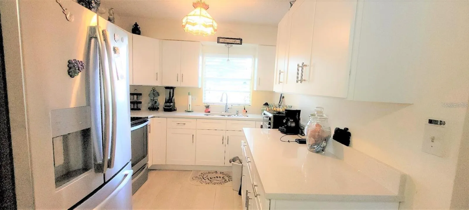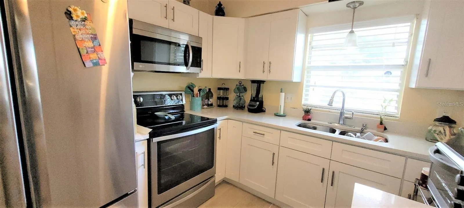 ALL THE COMFORTS OF HOME and no work to do when you own this easy-care Condominium! This lovely end unit condo at the 55+ Villa Villar Community has been beautifully renovated! The Remodeled U-Shaped Kitchen is bright & cheerful featuring gleaming Quartz Counters & stainless steel appliances. Spacious living room / dining area opens up to a small tiled Florida Room and back patio area. You will enjoy the outside without the yard work with the greenspace surrounding this unit, yet still have perimater beds to enjoy some gardening! Large bedrooms, 2 bathrooms, laundry room & extra closet space. You won’t need to sweat the big stuff with this home, because it had a New HVAC installed in 2021 and New Low-e Impact Windows & Sliding Glass Door installed in 2023. The HOA maintains the roof & grounds and Water & Sewer and Trash Removal are included. Conveniently located by Earl Brown Park you can enjoy a walk by the ponds & fountains, have a picnic lunch, feed the ducks, enjoy a concert or take advantage of the exercise equipment, tennis or basketball courts. Just minutes from Historic Downtown DeLand you will enjoy numerous shops, restaurants & special community events or see a show at the Historic Athens Theater. DON’T DELAY – SCHEDULE YOUR APPOINTMENT TO SEE THIS SUN-SATIONAL HOME!