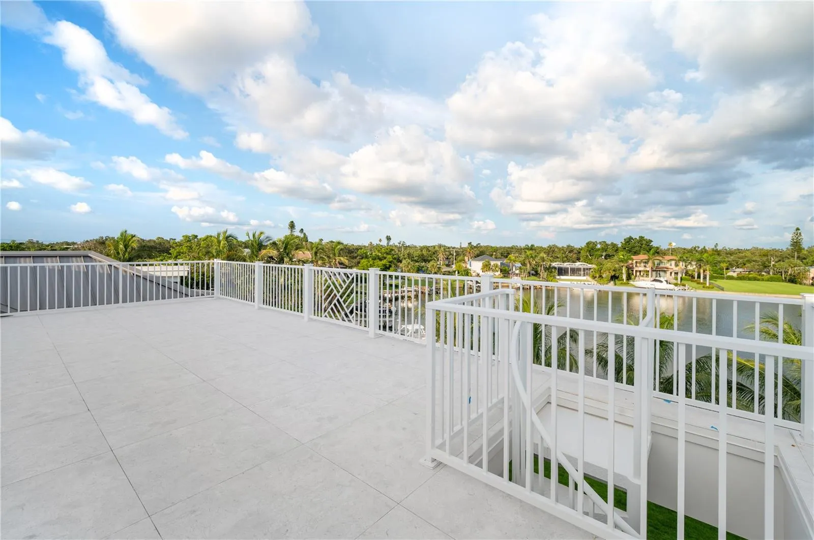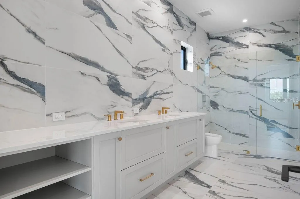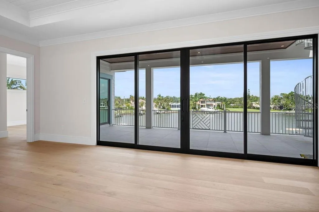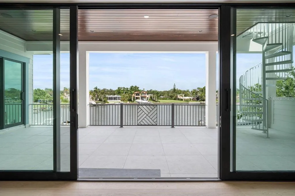 Designed with meticulous attention to detail, the home features an expansive, light-filled open floor plan. It includes five spacious bedrooms, each with its own walk-in closet, five full baths, and two half baths. Two oversized lanais and a four-car garage ensure seamless indoor-outdoor living, while a third-level rooftop terrace provides panoramic views of Sarasota Bay.